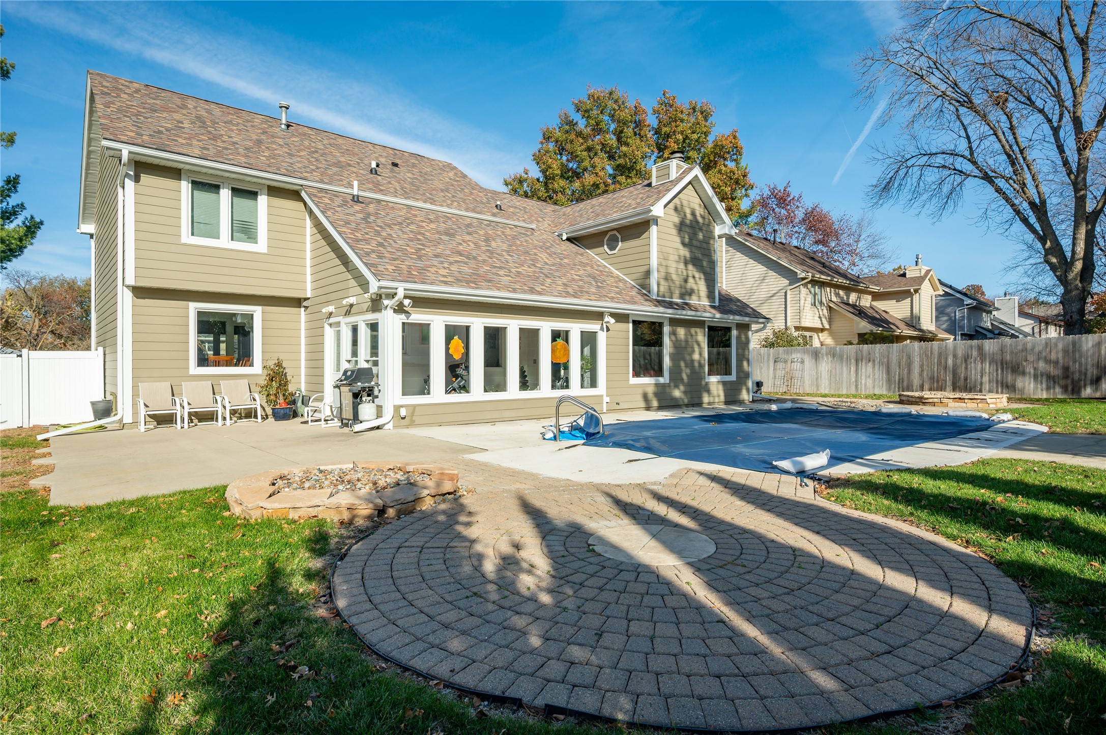 Well-maintained 4-bedroom, 3.5-bath home located in a sought-after Clive neighborhood within the West Des Moines school district. Conveniently close to shopping, restaurants, parks, and entertainment with easy interstate access. The backyard is an entertainer's dream featuring an inground saltwater pool with updated equipment and newer concrete, perfect for gatherings or quiet relaxation. The main level includes a spacious living room, formal dining room, family room, and a 3-season sunroom overlooking the pool. Upstairs offers four large bedrooms, each with a walk-in closet, plus second-floor laundry. All bathrooms have been extensively updated. The finished lower level provides additional living space with a rec room, 3/4 bath, and generous storage. Recent updates include newer roof, flooring, paint, lighting, and bathrooms. This home has been thoughtfully updated throughout come see all it has to offer!