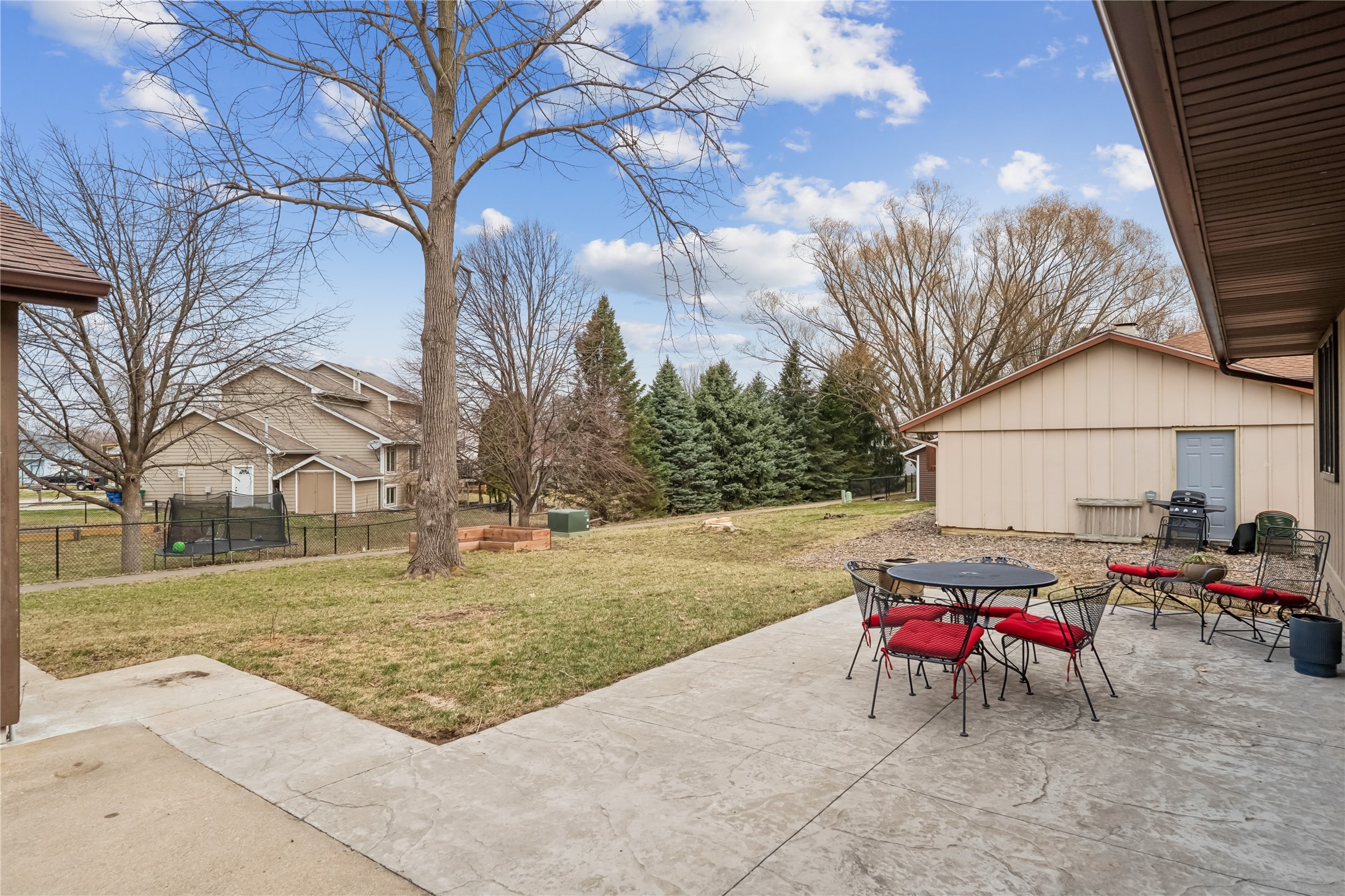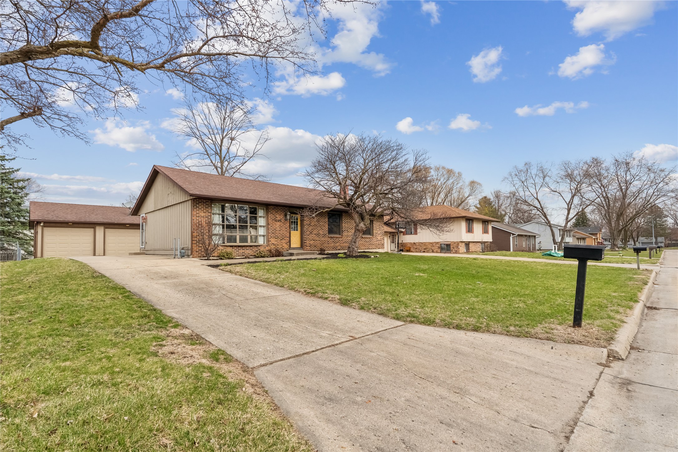 Welcome to this charming 1970s brick ranch in the heart of Ankeny backing directly to the High Trestle Trail, great for biking, walking, and enjoying the outdoors right from your backyard. This home offers a functional layout with 3 bedrooms and 1.5 bathrooms on the main level, including a spacious primary suite with it's own ensuite bath. Cherry hardwood floors run throughout much of the main level, with durable LVP in the kitchen, dining area, and primary bedroom, plus a nicely sized dining space for gatherings. The finished basement adds extra versatility with a 4th non-conforming bedroom featuring its own ensuite bathroom, a cozy brick wood-burning fireplace, and additional living space for a rec room, gym, or office. Step outside to a stamped concrete patio overlooking the backyard and trail access beyond. The oversized 2-car detached garage includes electric, and a reverse osmosis water system is also in place. Schedule your showing today!