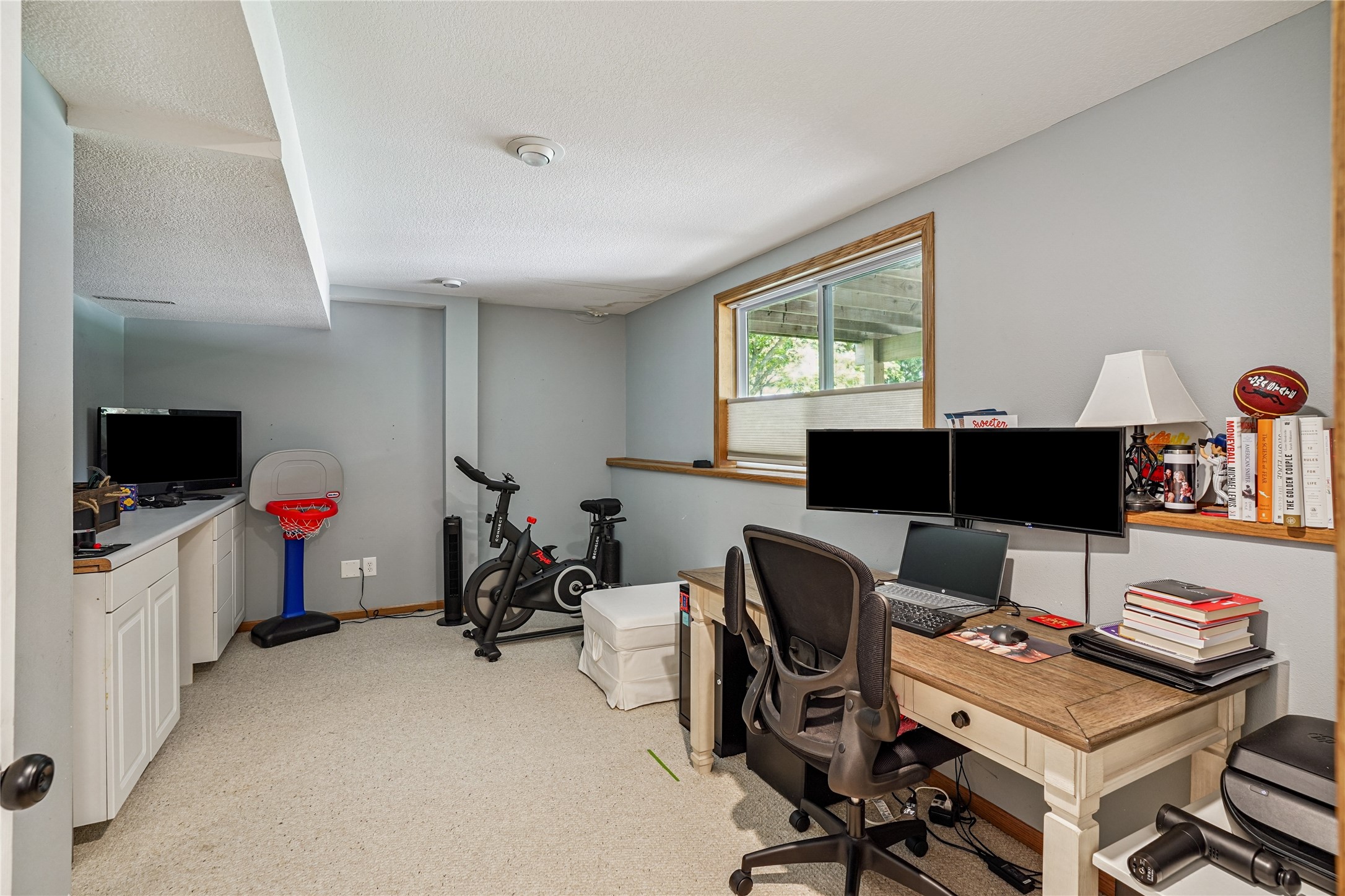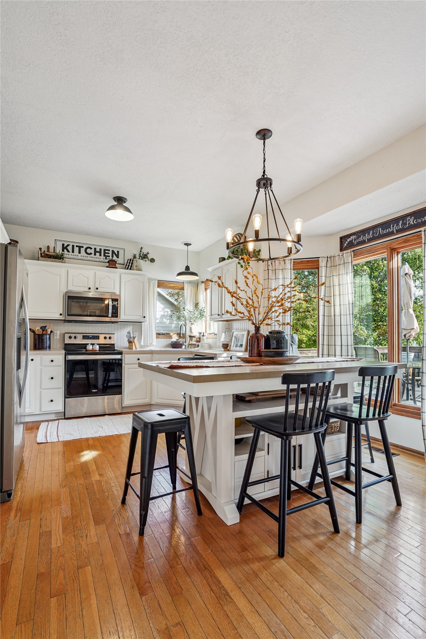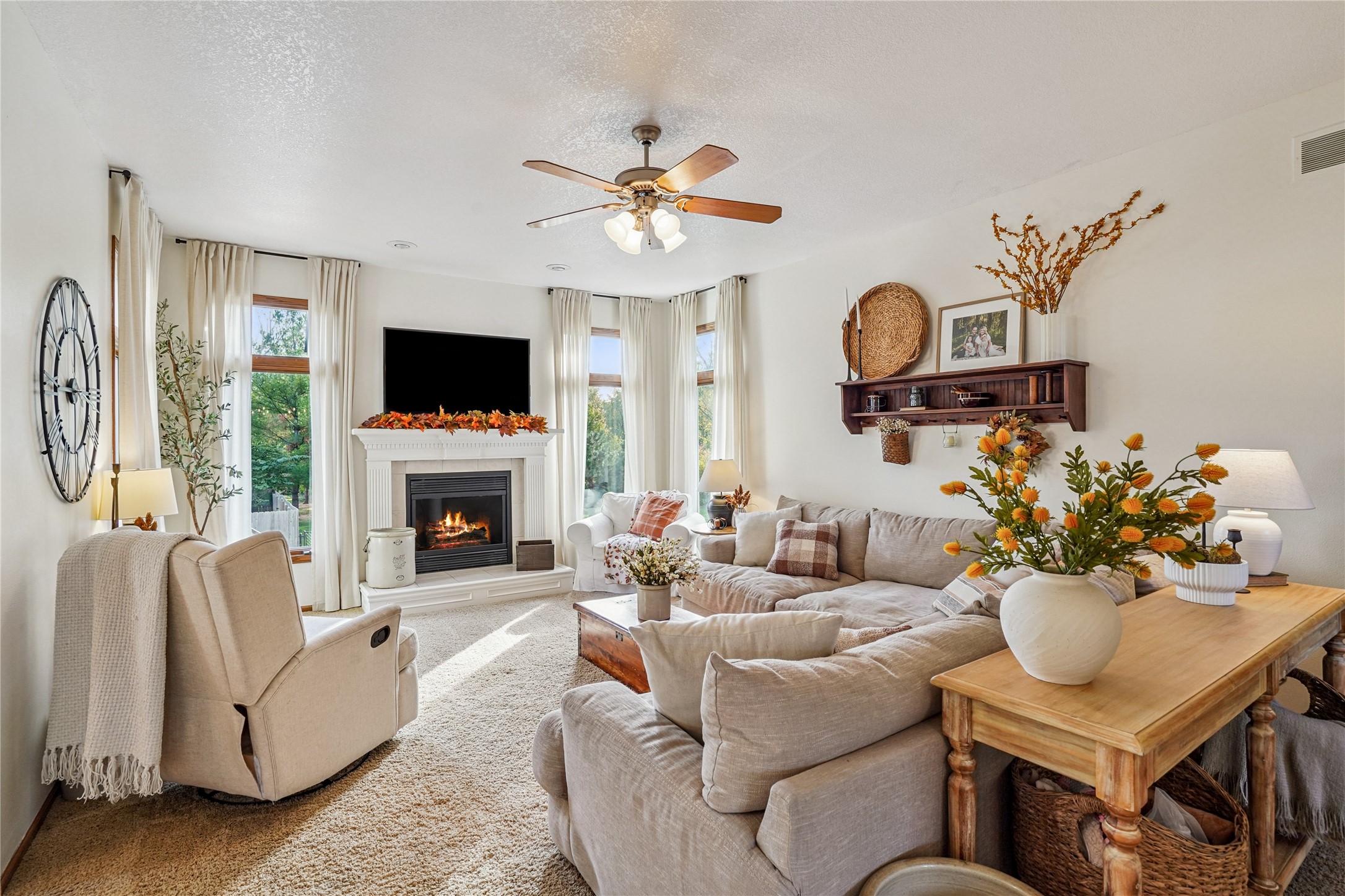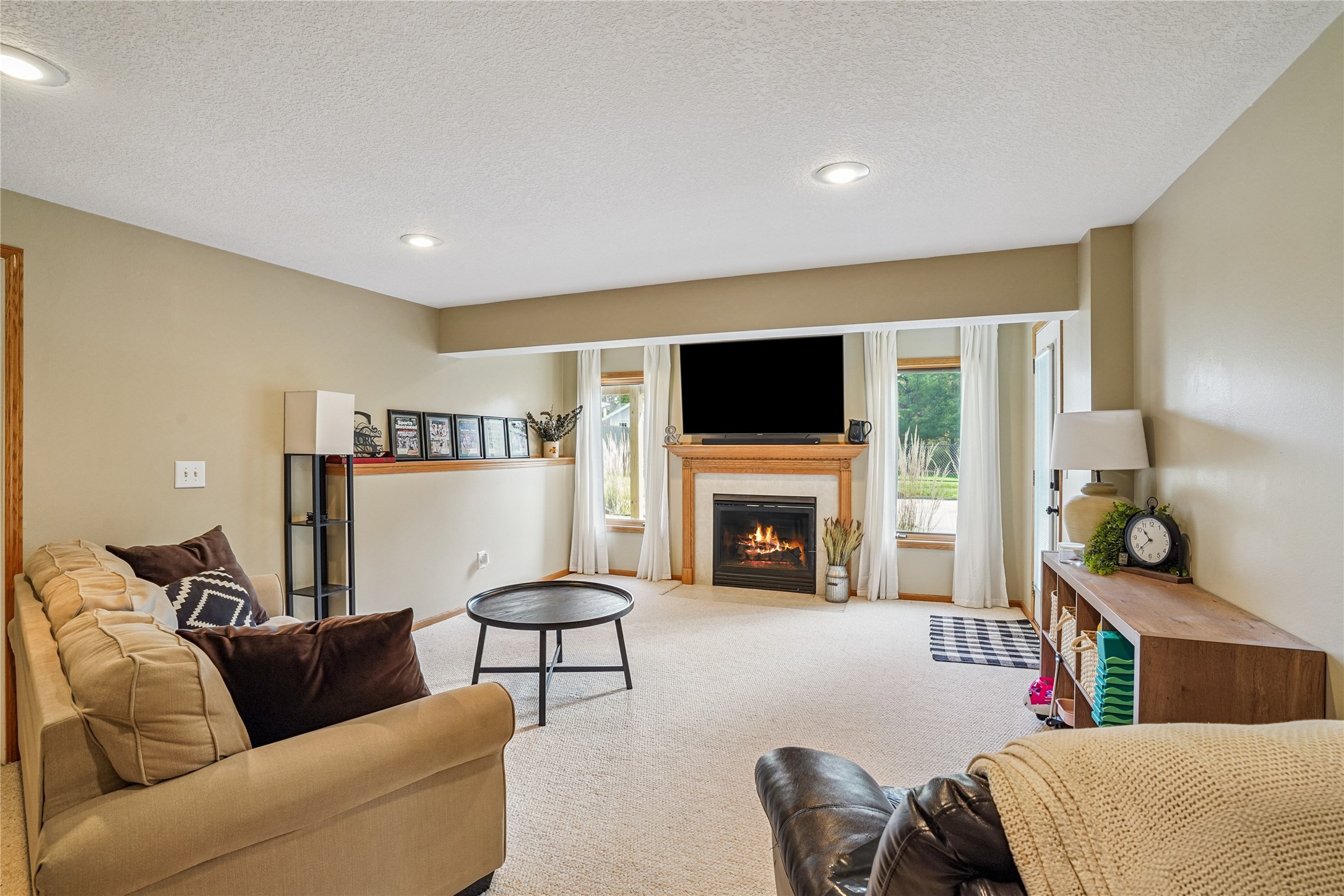 Inside, the refreshed kitchen features a freestanding island that stays with the home, along with updated light fixtures, new door hardware, and fresh paint throughout. Both gas fireplaces were serviced and cleaned last year, and a radon mitigation system (2021) provides added peace of mind.