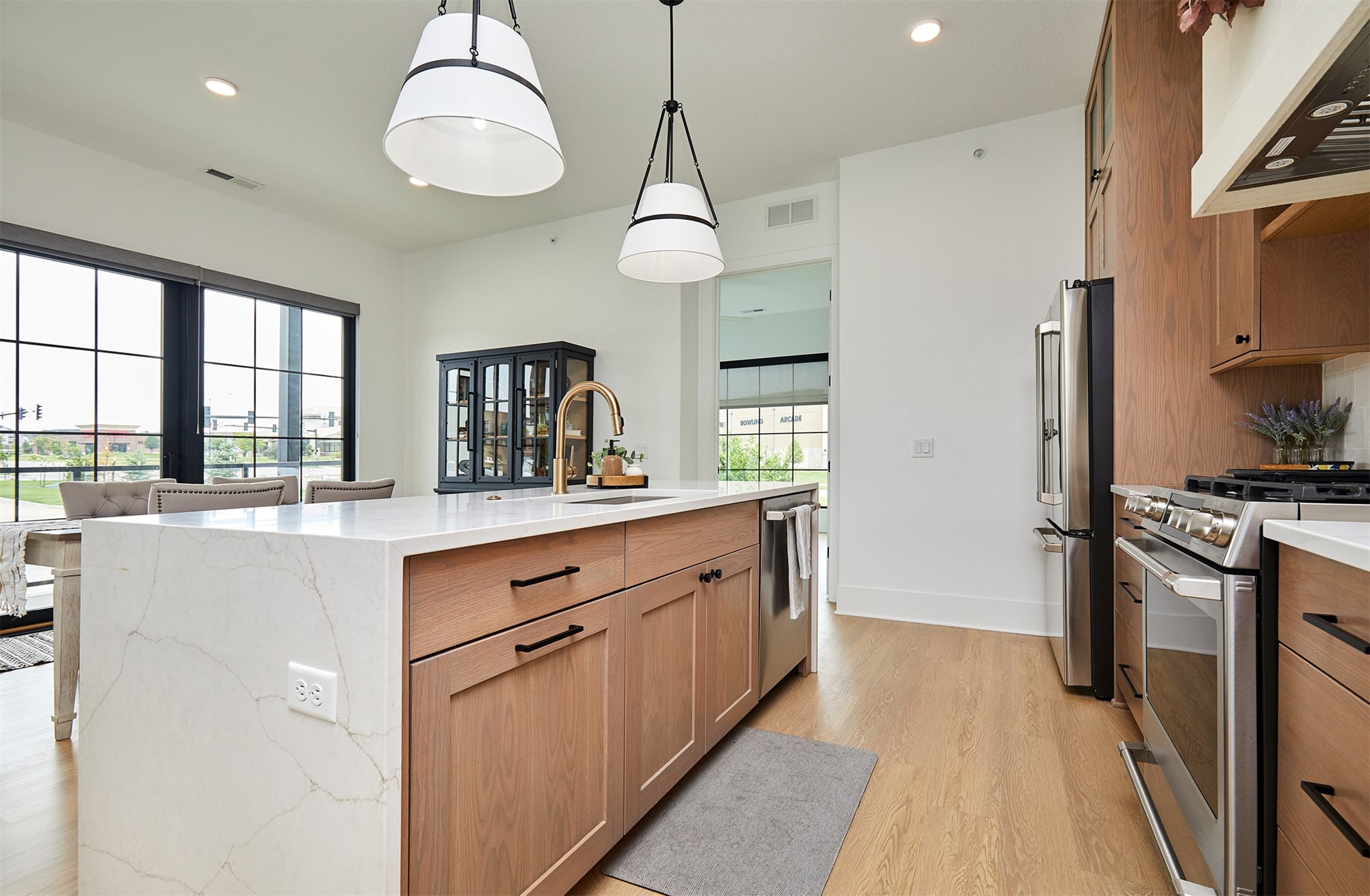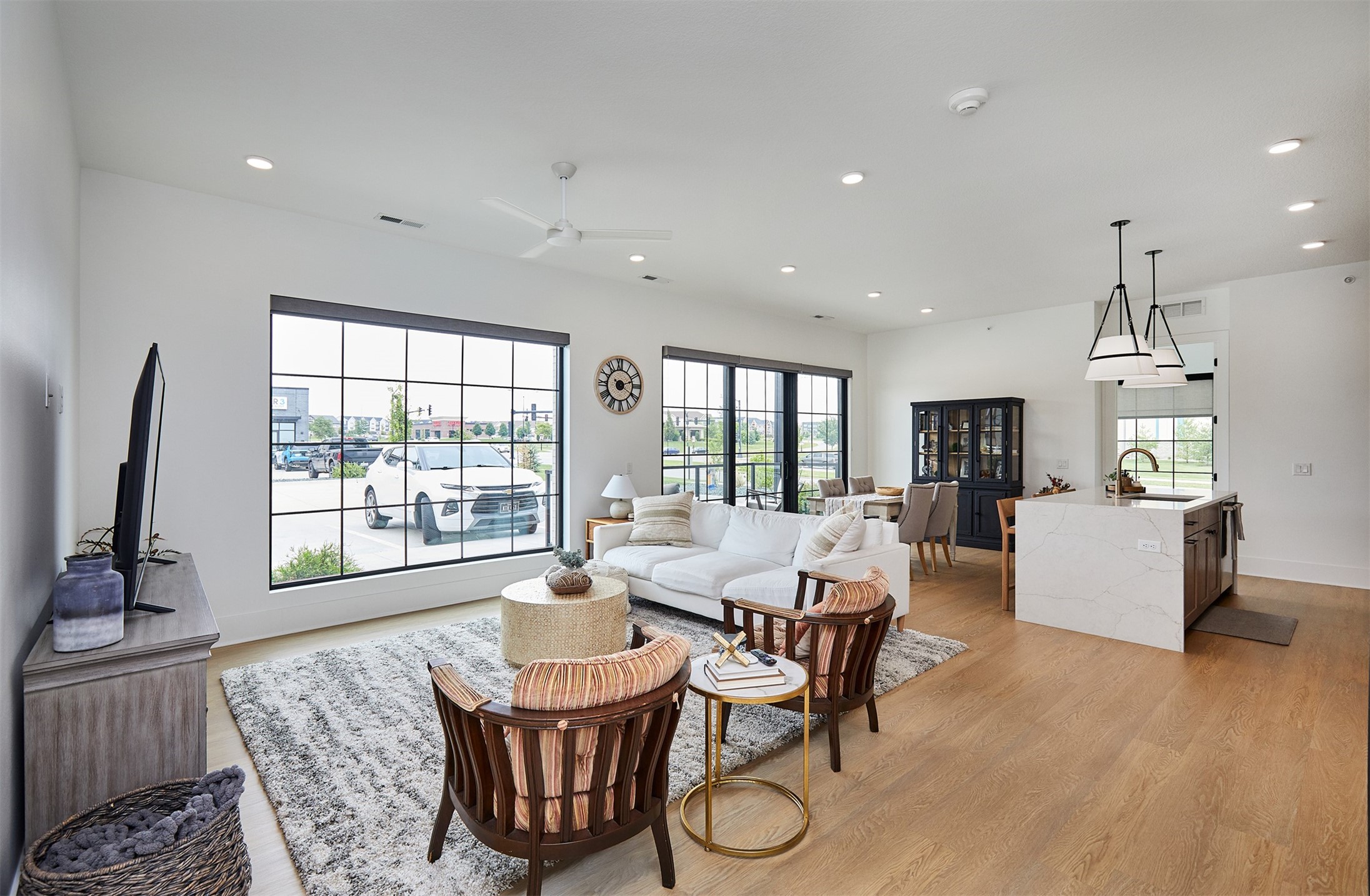 This sought-after corner unit features 2 beds, 2 baths, and a versatile office/flex rm. The spacious open-concept layout is ideal for both everyday living & entertaining. Soaring 10' ceilings, 8' doors, & expansive Pella windows flood the home w/ natural light.