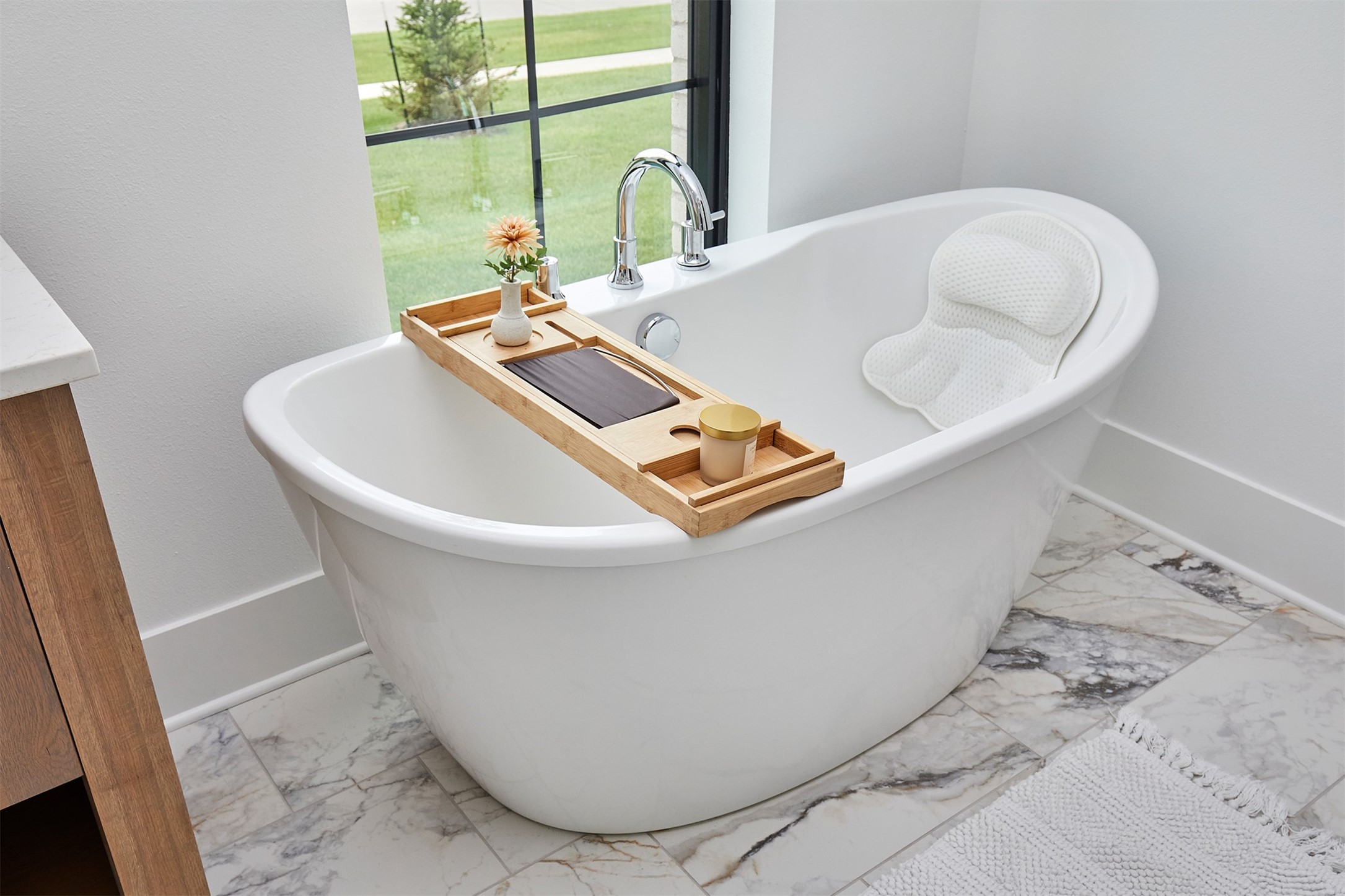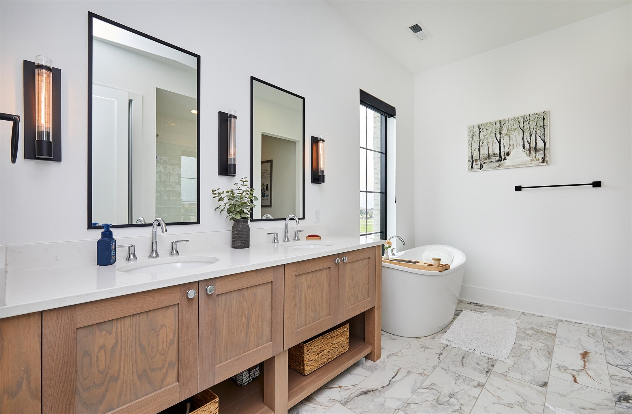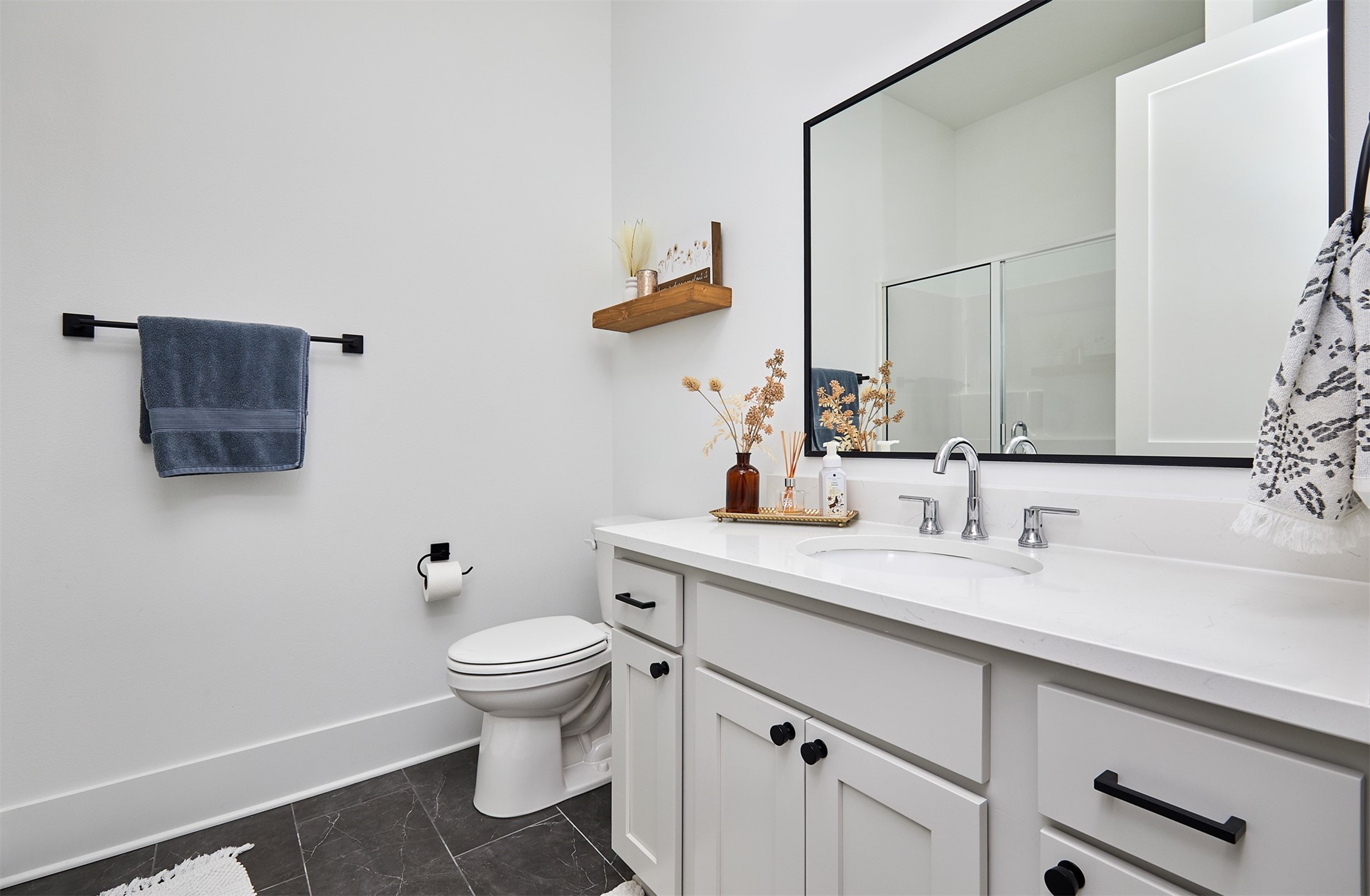 The owner's suite is a true retreat, featuring a spa-inspired tile shower, large soaker tub, & spacious walk-in closet. The shaded blinds throughout filter light while preserving privacy--so you can enjoy the view without being seen from outside.