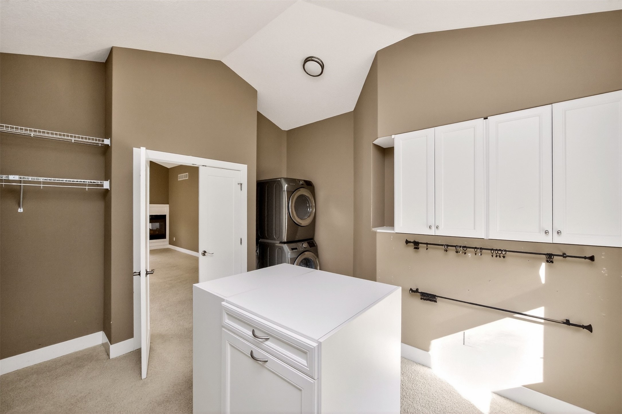 The primary suite is a private retreat loaded with natural light, a spa-like bath featuring tile shower, freestanding soaking tub, fireplace wall, dual vanities, and an oversized walk-in closet with center island and secondary laundry. Two additional bedrooms upstairs share a Jack-and-Jill bath. The main level includes a second laundry and half bath.