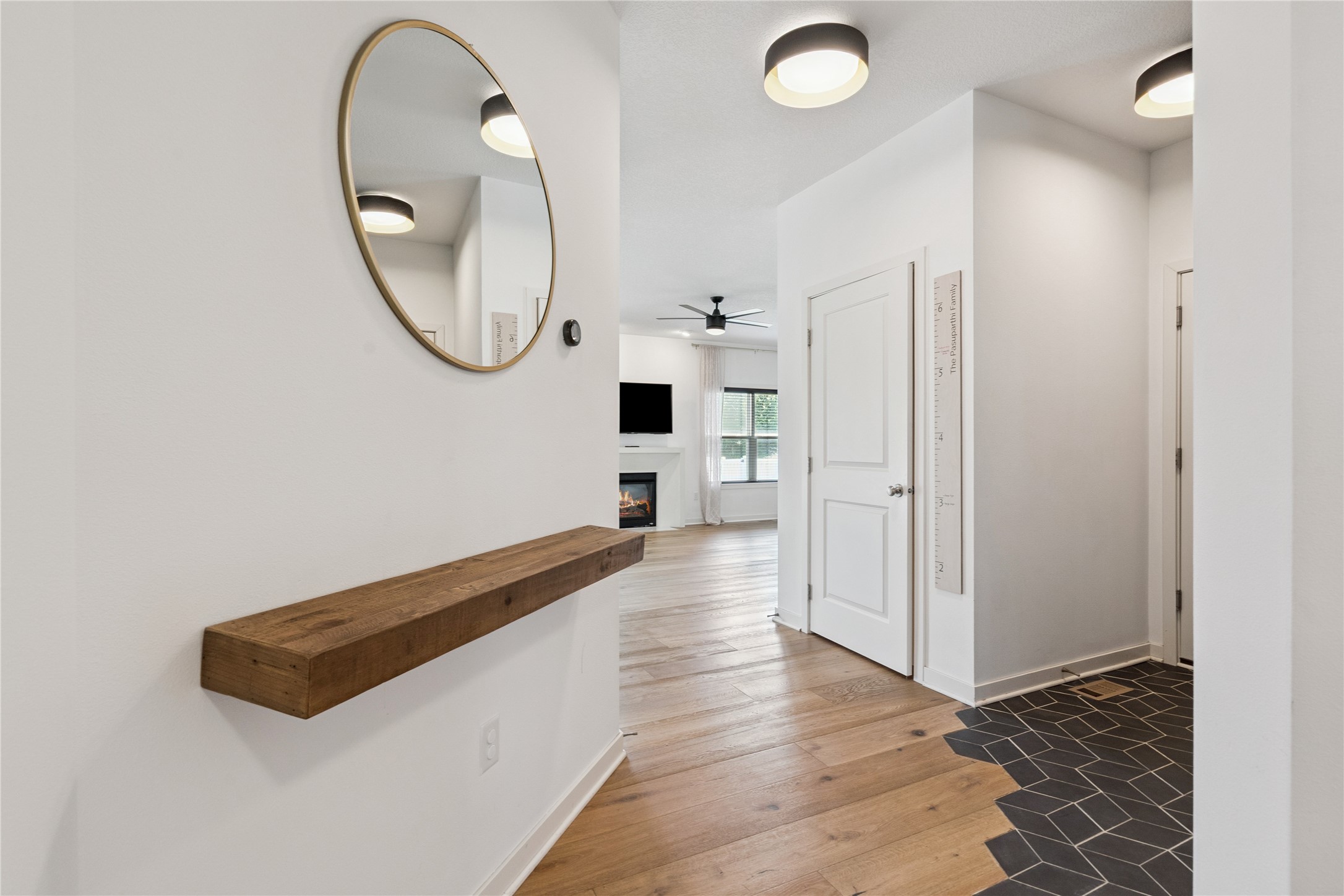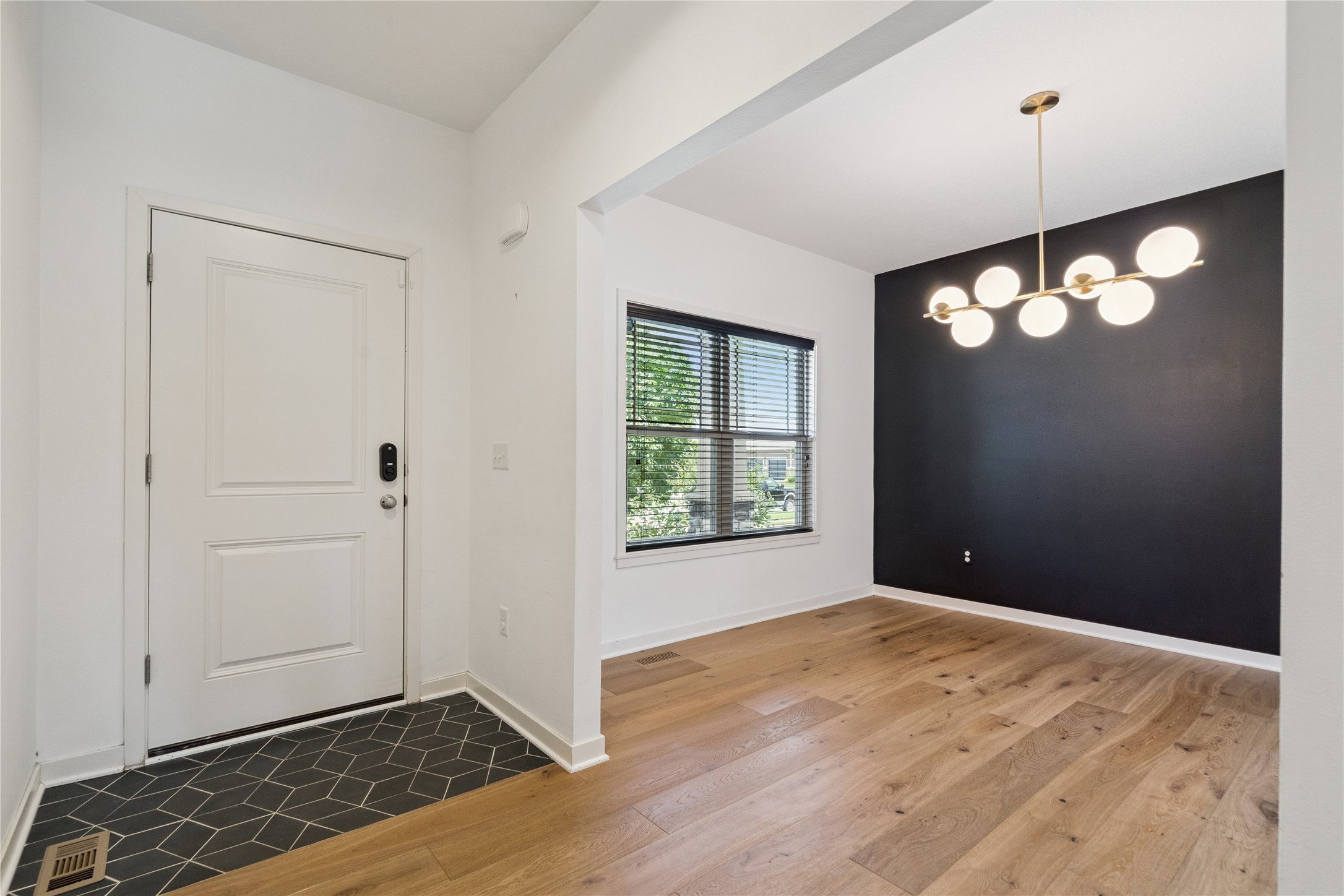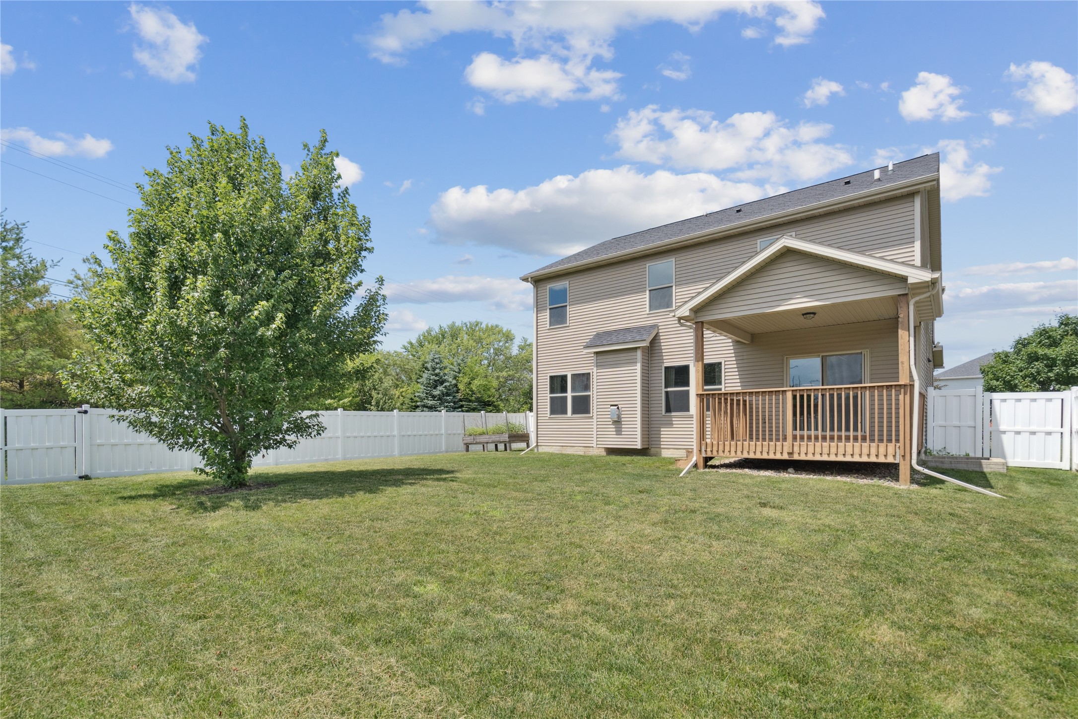 Step into Modern Elegance! This stunning two-story home is a masterpiece of thoughtful updates and timeless design. The completely renovated main level boasts white oak engineered hardwood and stylish hex tile flooring. Anchoring the living space is a custom limestone fireplace surround, complemented by built-in speakers for a seamless entertainment experience. A chic, updated half bath features a smart toilet for modern convenience! The spacious kitchen impresses with stainless steel appliances, espresso cabinets, granite countertops, a gas stove, and a pantry for ample storage. The versatile dining room doubles as an office or flex space, perfect for your needs. Upstairs, discover 4 generously sized bedrooms, including a luxurious primary suite with a soaking tub, a tile shower, and a large walk-in closet. The unfinished lower level is a blank canvas with an egress window and a bathroom stub, ready for your personal touch. Enjoy peace of mind with a whole-house water filter, a smart keypad and thermostat, and a new AC unit installed in 2020. Outdoor features include a covered deck, a vinyl privacy fence, and overhead garage shelving for additional storage. This home blends comfort, style, and functionality--schedule your private tour today!