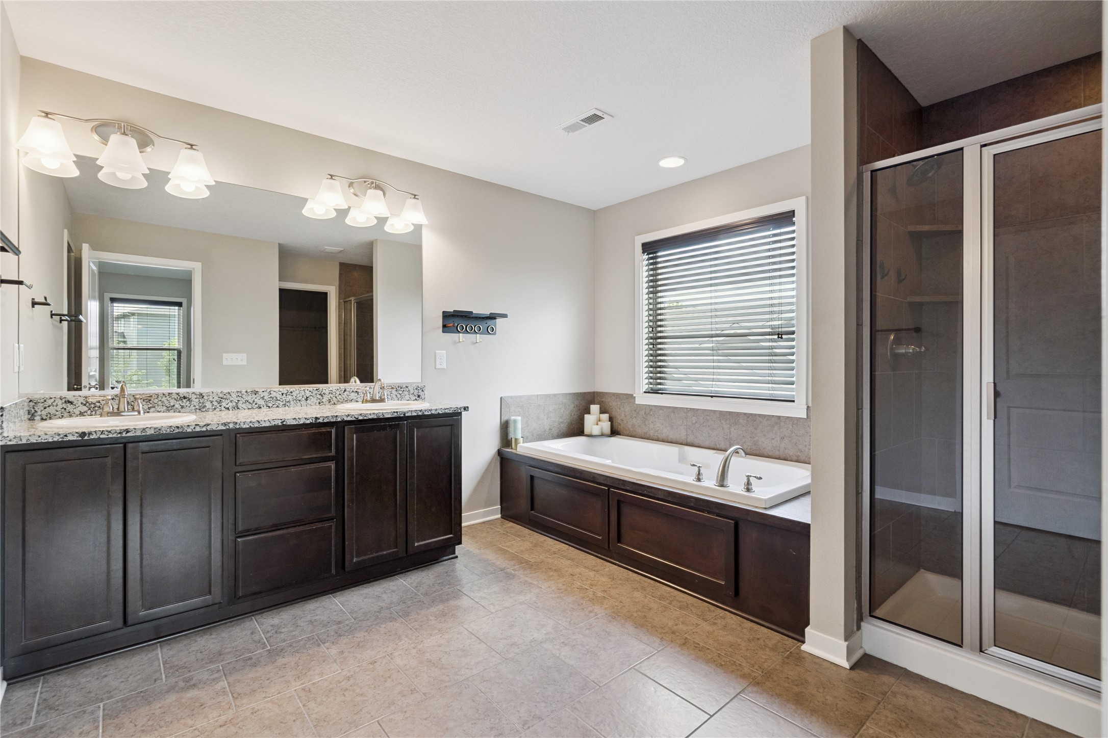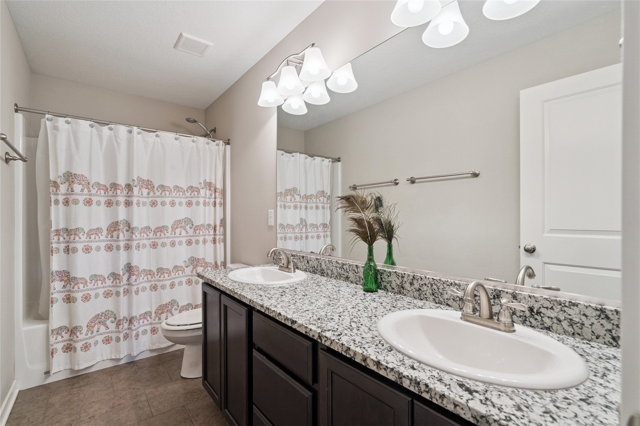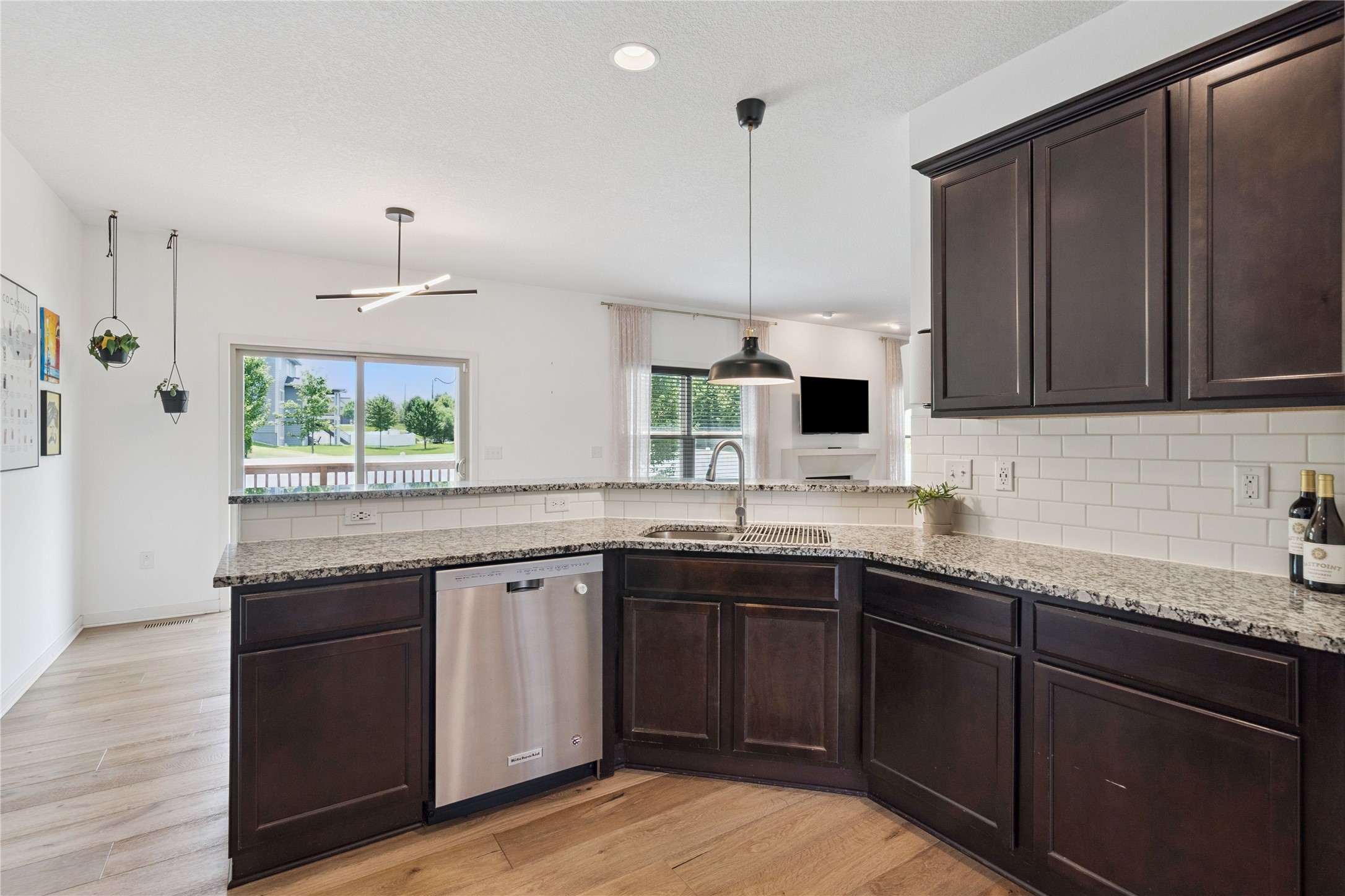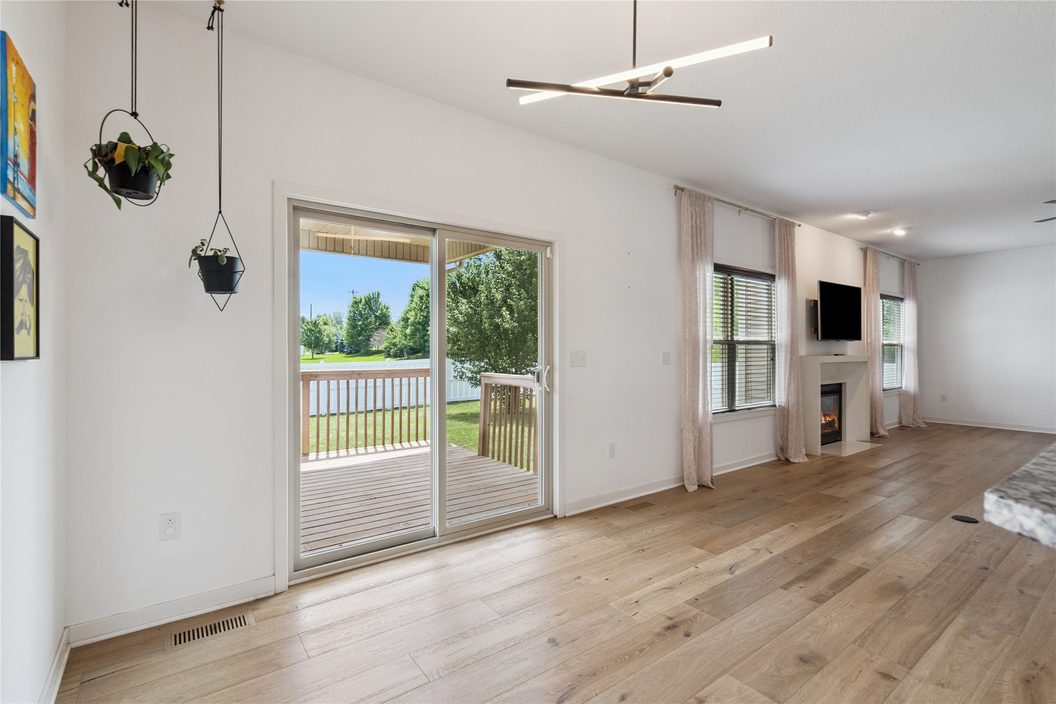 Step into Modern Elegance! This stunning two-story home is a masterpiece of thoughtful updates and timeless design. The completely renovated main level boasts white oak engineered hardwood and stylish hex tile flooring. Anchoring the living space is a custom limestone fireplace surround, complemented by built-in speakers for a seamless entertainment experience. A chic, updated half bath features a smart toilet for modern convenience! The spacious kitchen impresses with stainless steel appliances, espresso cabinets, granite countertops, a gas stove, and a pantry for ample storage. The versatile dining room doubles as an office or flex space, perfect for your needs. Upstairs, discover 4 generously sized bedrooms, including a luxurious primary suite with a soaking tub, a tile shower, and a large walk-in closet. The unfinished lower level is a blank canvas with an egress window and a bathroom stub, ready for your personal touch. Enjoy peace of mind with a whole-house water filter, a smart keypad and thermostat, and a new AC unit installed in 2020. Outdoor features include a covered deck, a vinyl privacy fence, and overhead garage shelving for additional storage. This home blends comfort, style, and functionality--schedule your private tour today!