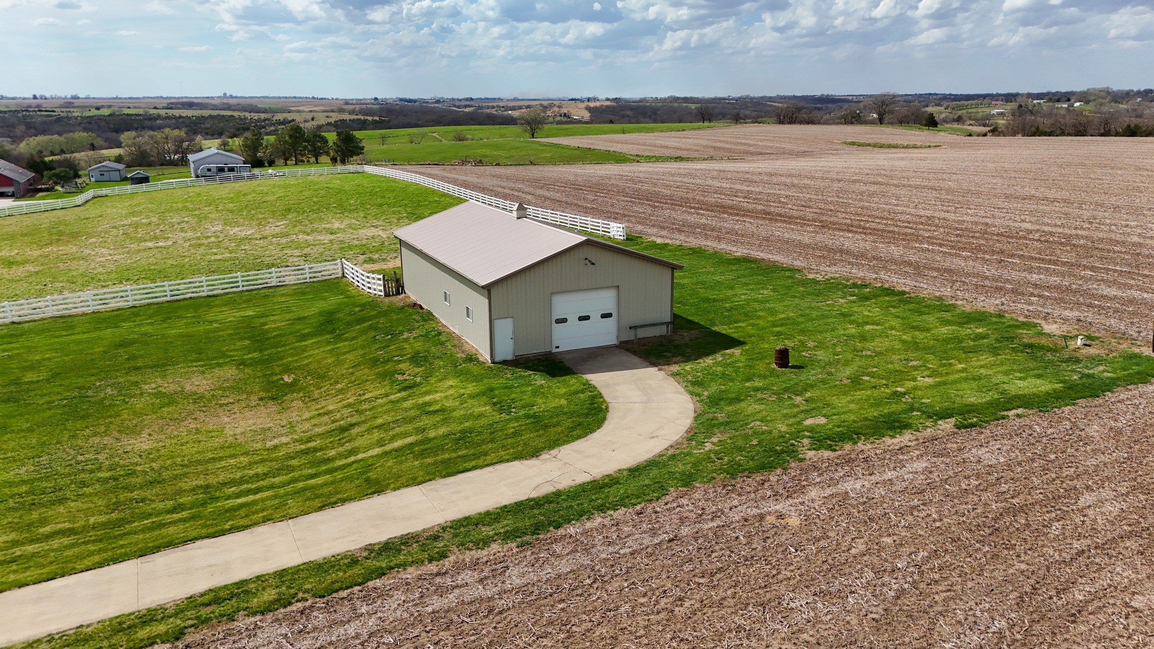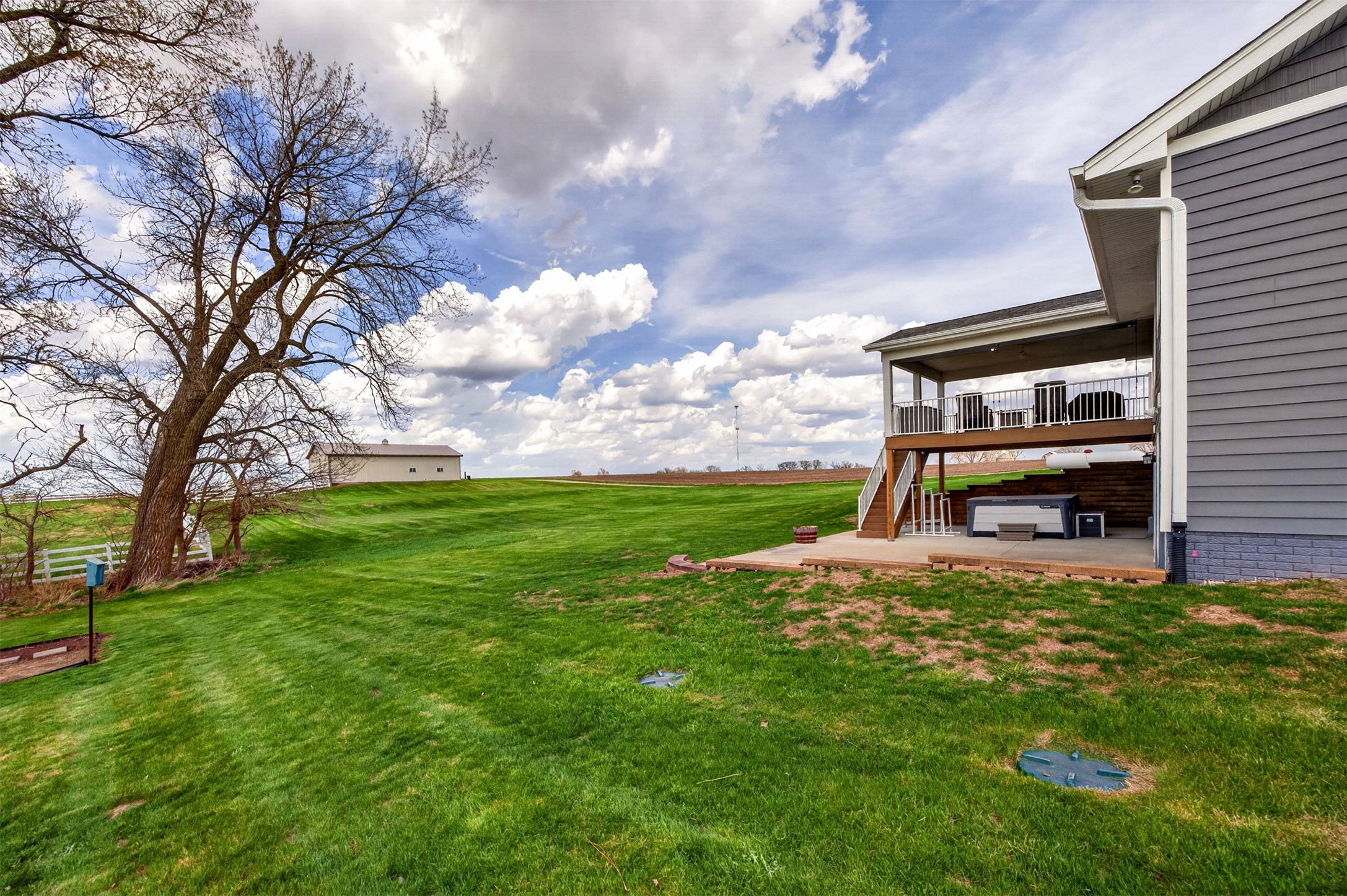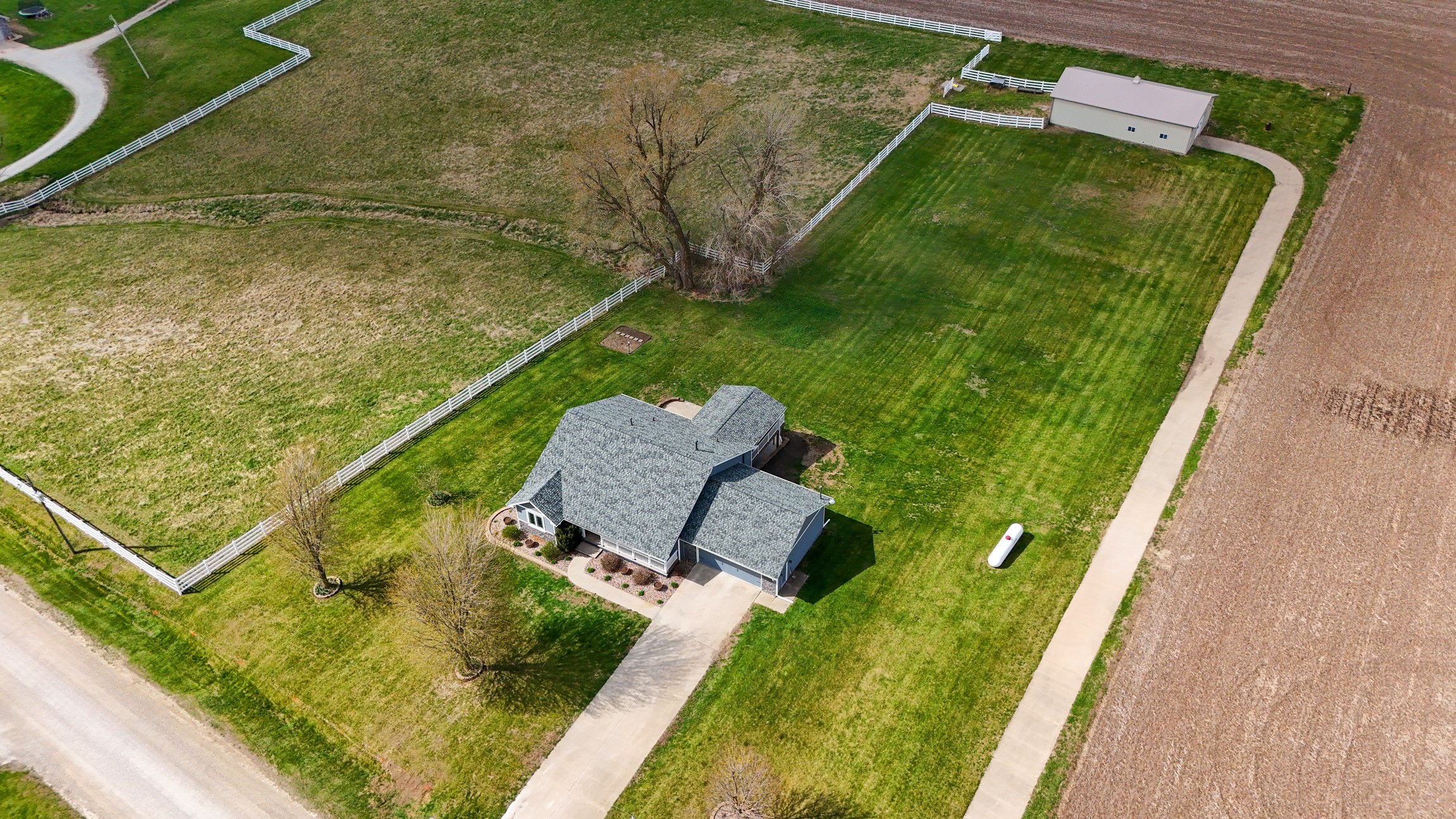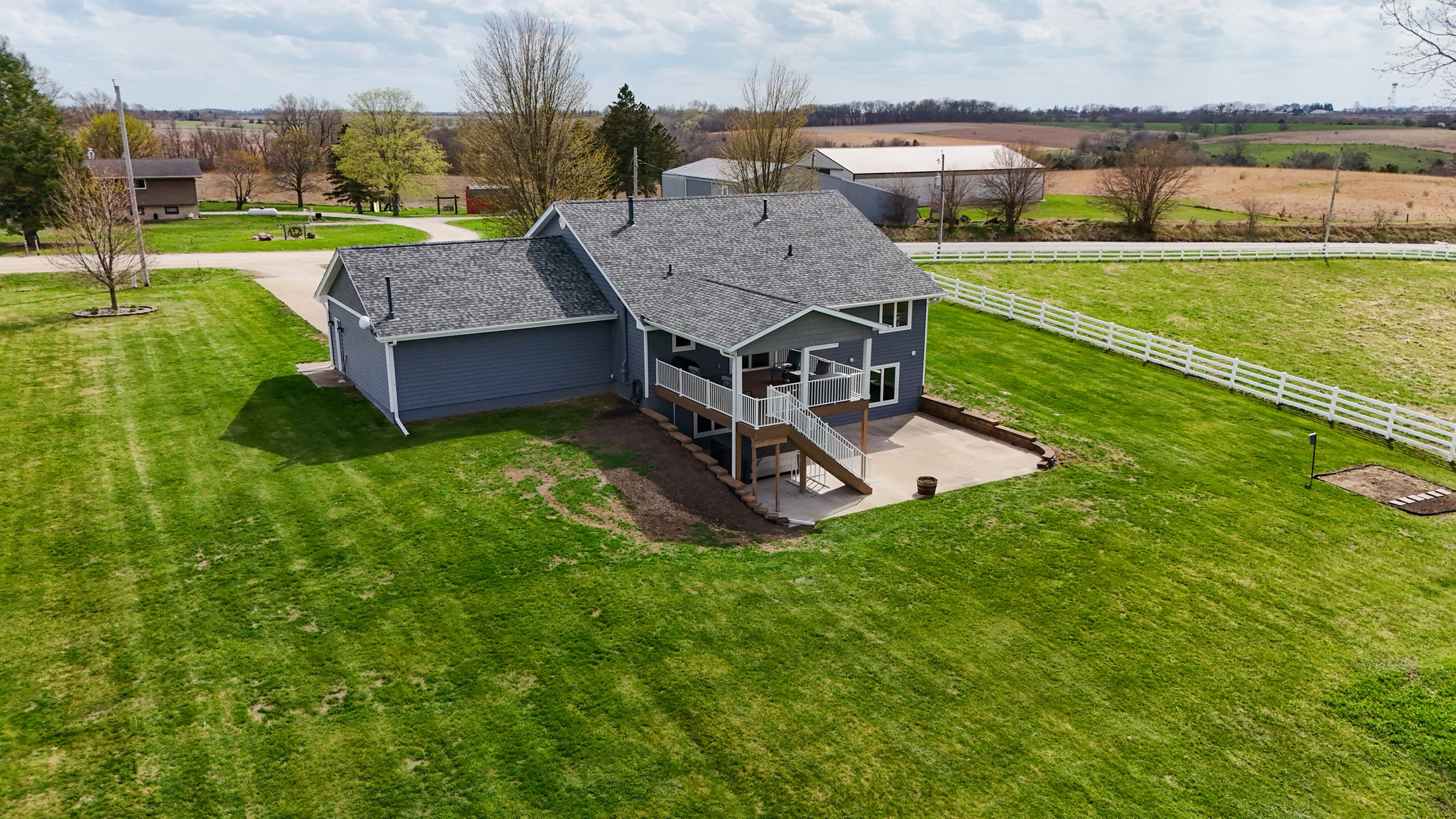 Set on five private acres just outside the metro, this updated ranch delivers the space, freedom, and lifestyle that's increasingly hard to find - without sacrificing convenience to Des Moines. A true outdoor oasis to enjoy the peacefulness of the country - Evenings begin on the 18x18 covered composite deck with sun shade, where sweeping sunset views stretch across your fenced pasture, and end around the expansive patio or in the included hot tub. A 56x32 outbuilding with concrete drive, slab floor, electric and water - plus four horse stalls - opens the door to hobbies, animals, or serious workspace. Inside, the main level offers easy, everyday living with three bedrooms, two full baths, and laundry all on one floor. Updates include LVP flooring and stainless steel appliances, blending modern comfort with a functional layout. The walkout lower level, completely finished in 2021, extends the home with a spacious family room, wet bar with refrigerator, two additional bedrooms, a 3/4 bath, 1/2 bath, plus dedicated rec space and a home gym. Major improvements provide peace of mind: new stone and siding (2020), windows (2020), roof and gutters (2021), water softener and whole-home filtration, and radon mitigation already in place. With room to roam, entertain, and unwind, yet close to the Des Moines metro, this is acreage living, elevated.