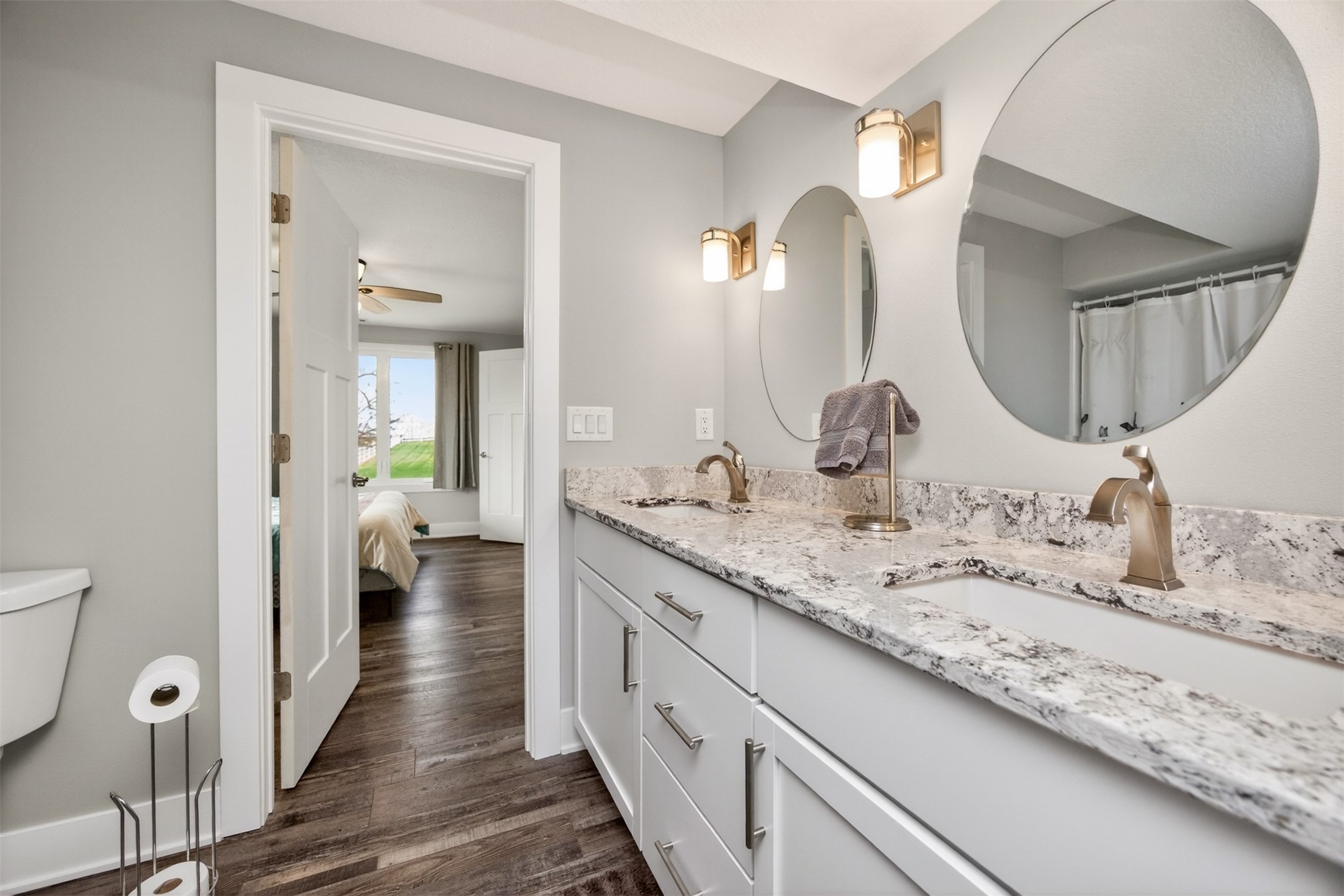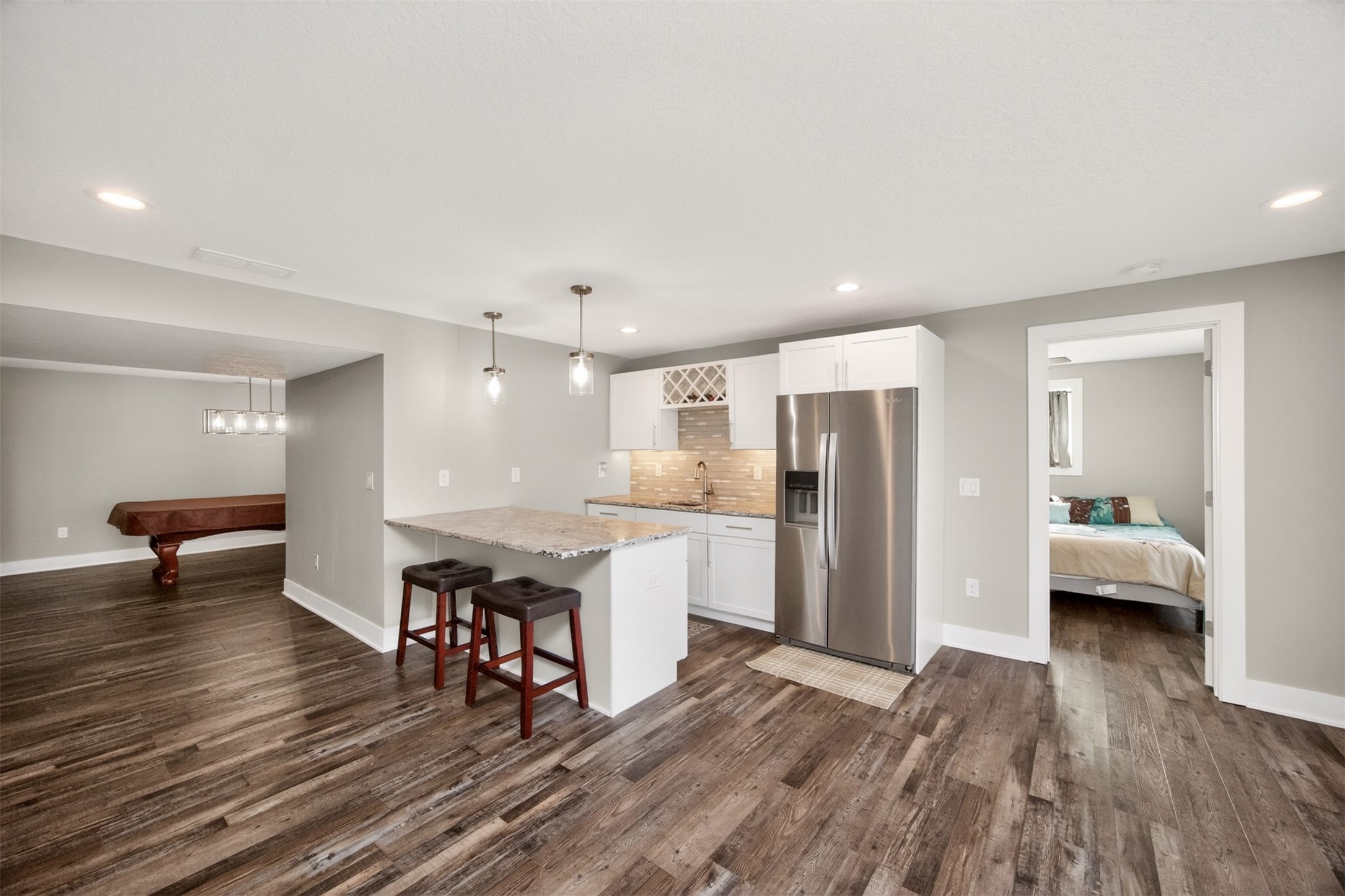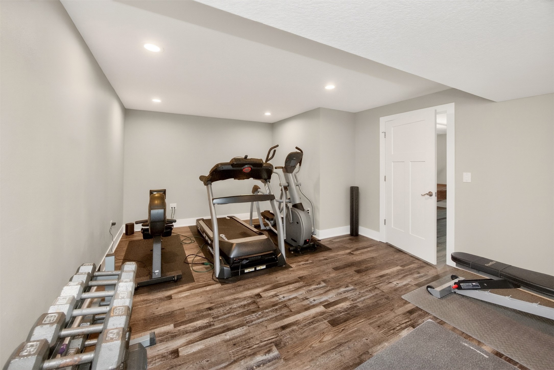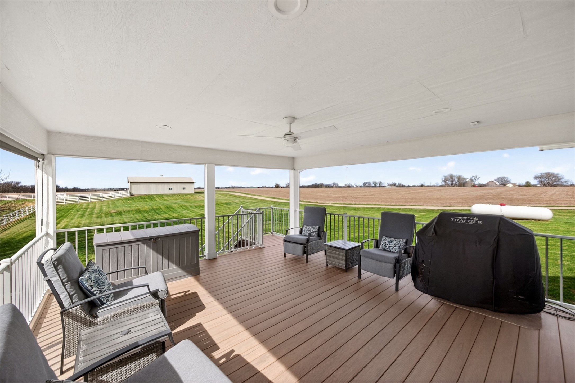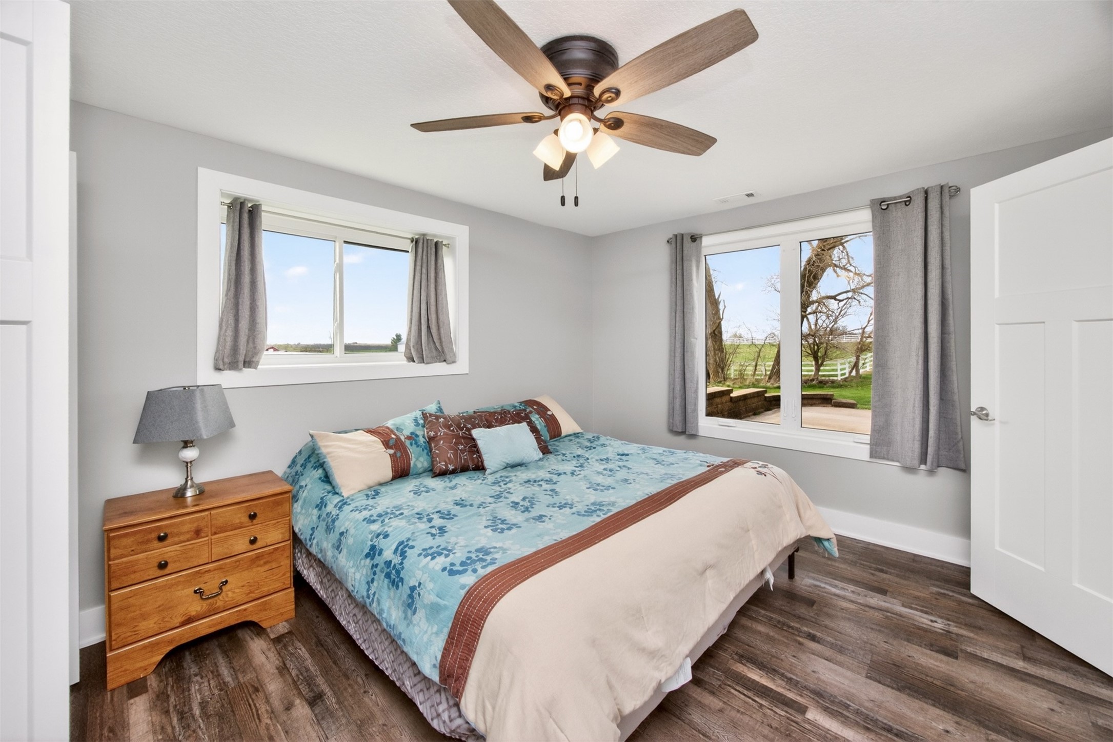 Set on five private acres just outside the metro, this updated ranch delivers the space, freedom, and lifestyle that's increasingly hard to find - without sacrificing convenience to Des Moines. A true outdoor oasis to enjoy the peacefulness of the country - Evenings begin on the 18x18 covered composite deck with sun shade, where sweeping sunset views stretch across your fenced pasture, and end around the expansive patio or in the included hot tub. A 56x32 outbuilding with concrete drive, slab floor, electric and water - plus four horse stalls - opens the door to hobbies, animals, or serious workspace. Inside, the main level offers easy, everyday living with three bedrooms, two full baths, and laundry all on one floor. Updates include LVP flooring and stainless steel appliances, blending modern comfort with a functional layout. The walkout lower level, completely finished in 2021, extends the home with a spacious family room, wet bar with refrigerator, two additional bedrooms, a 3/4 bath, 1/2 bath, plus dedicated rec space and a home gym. Major improvements provide peace of mind: new stone and siding (2020), windows (2020), roof and gutters (2021), water softener and whole-home filtration, and radon mitigation already in place. With room to roam, entertain, and unwind, yet close to the Des Moines metro, this is acreage living, elevated.