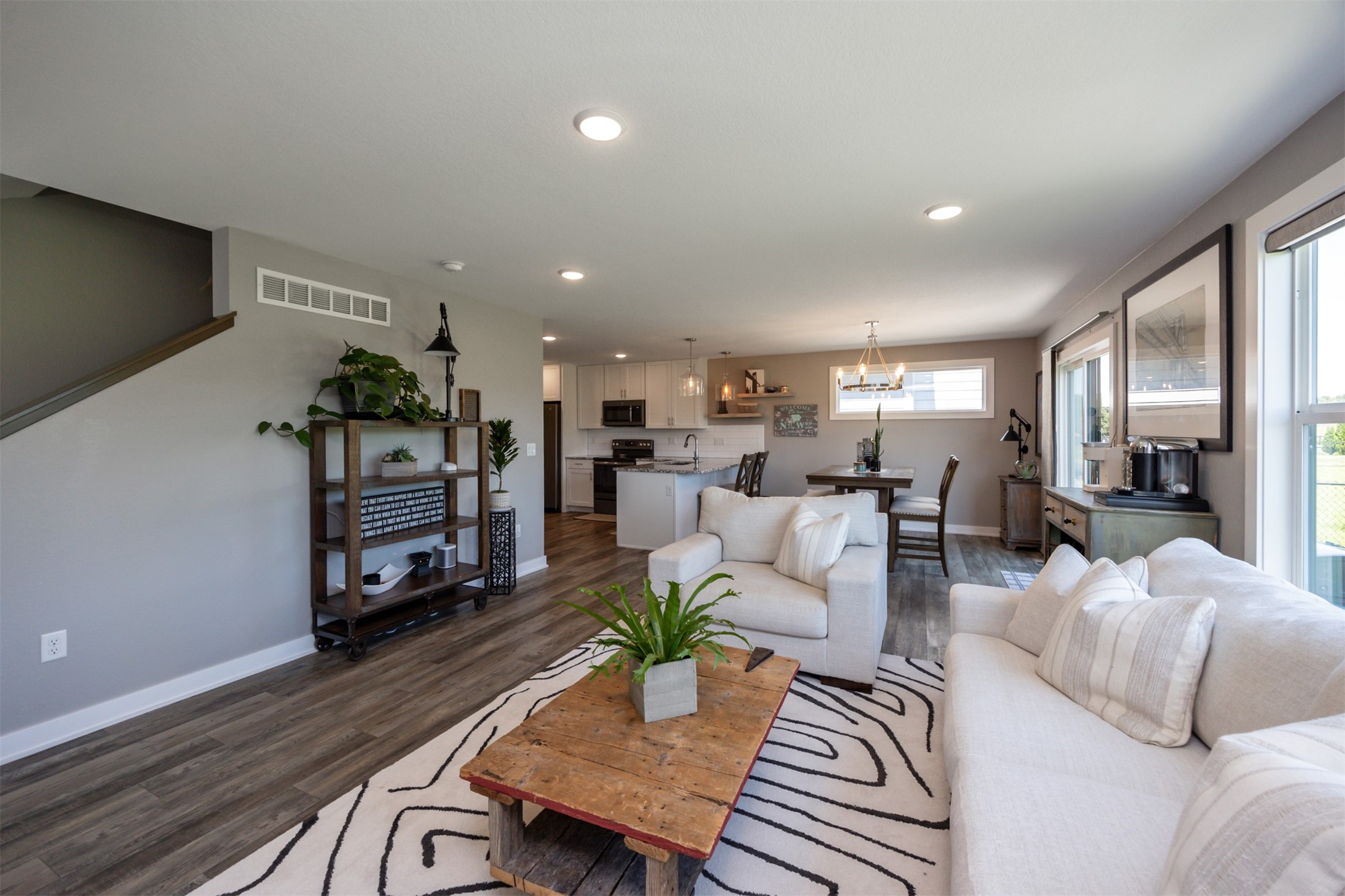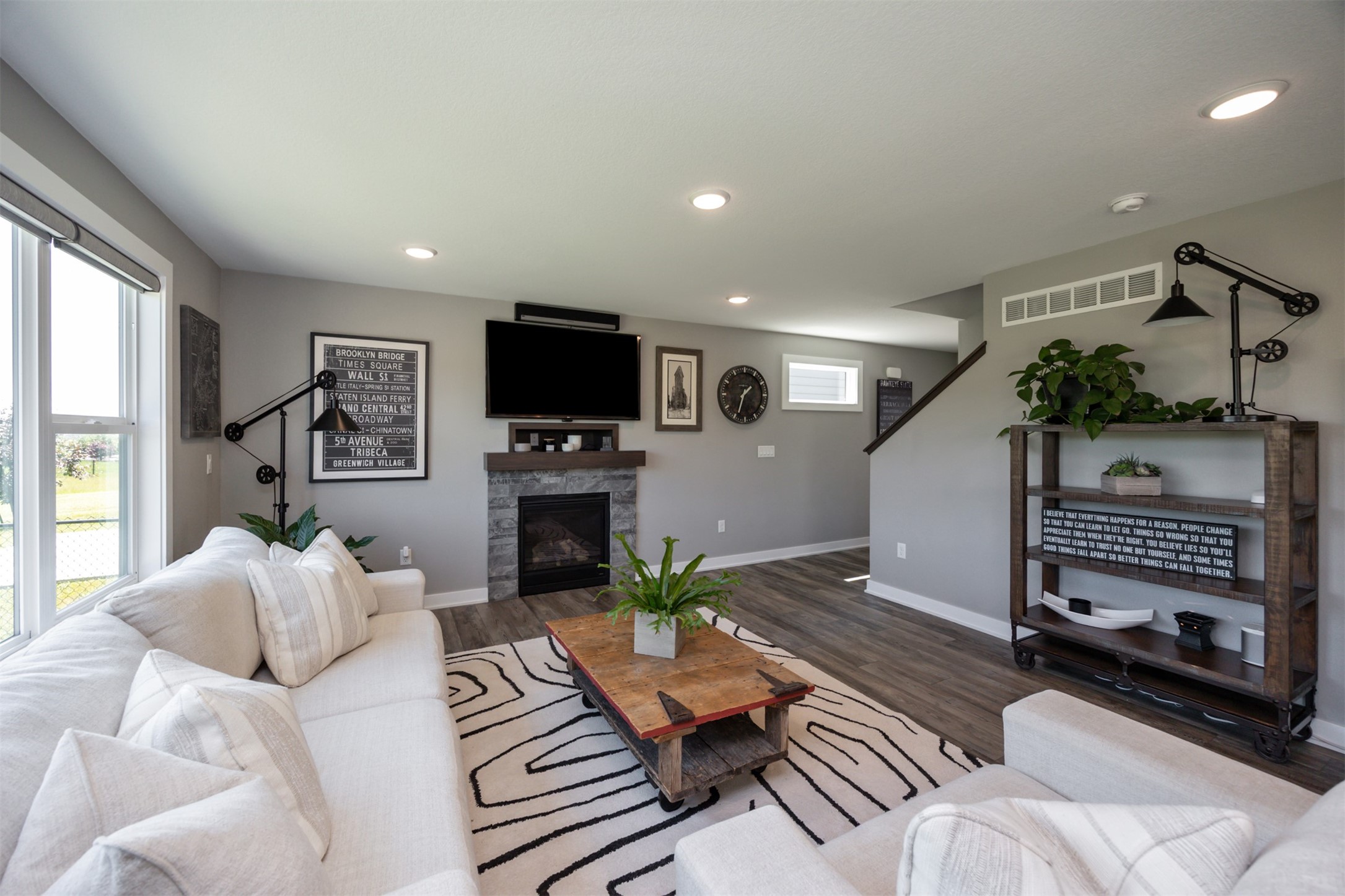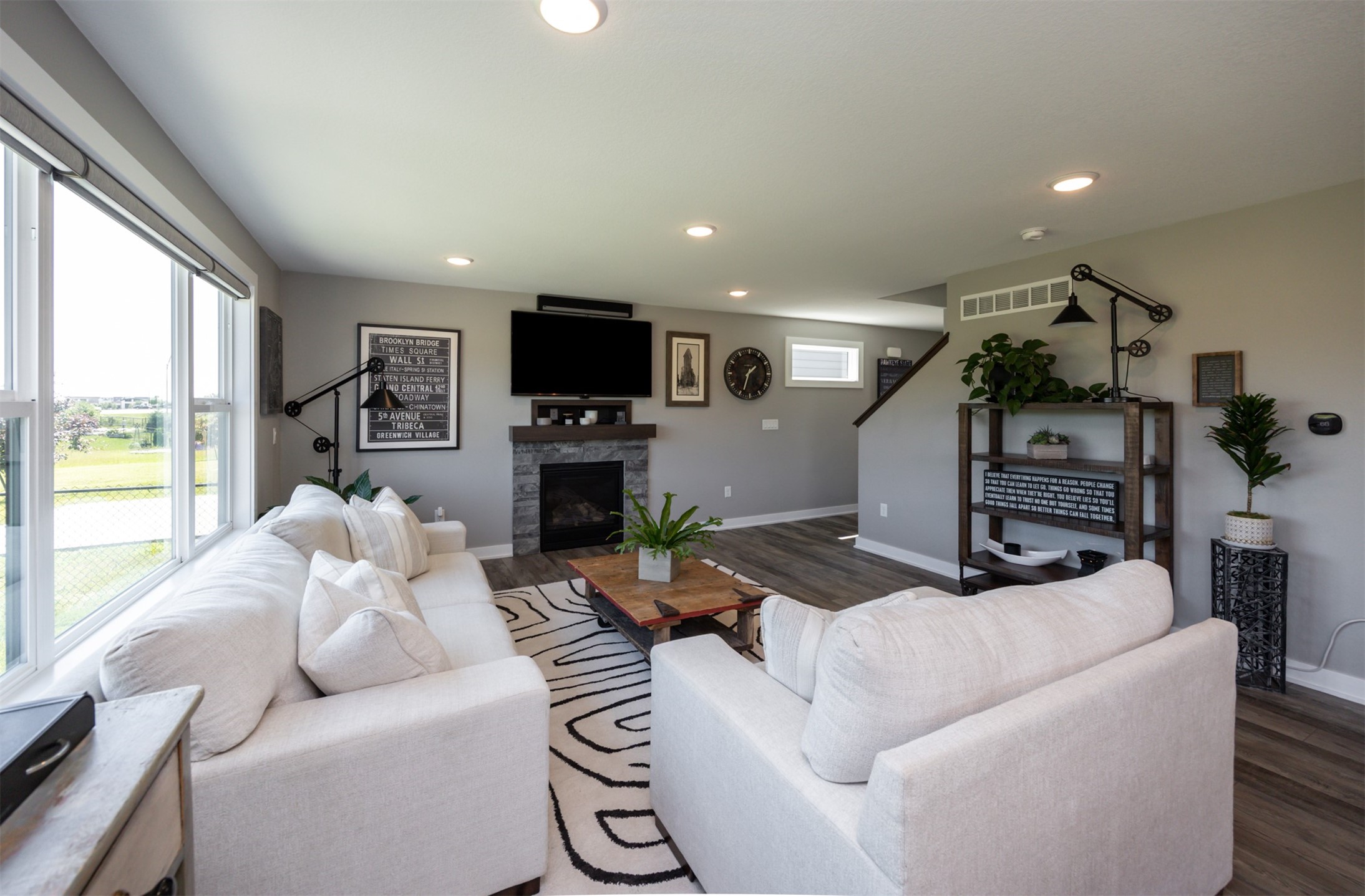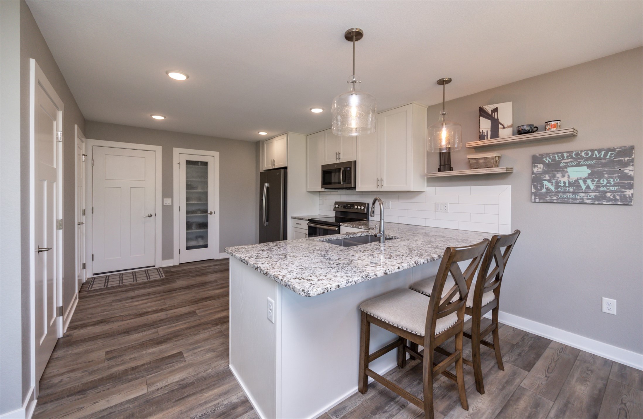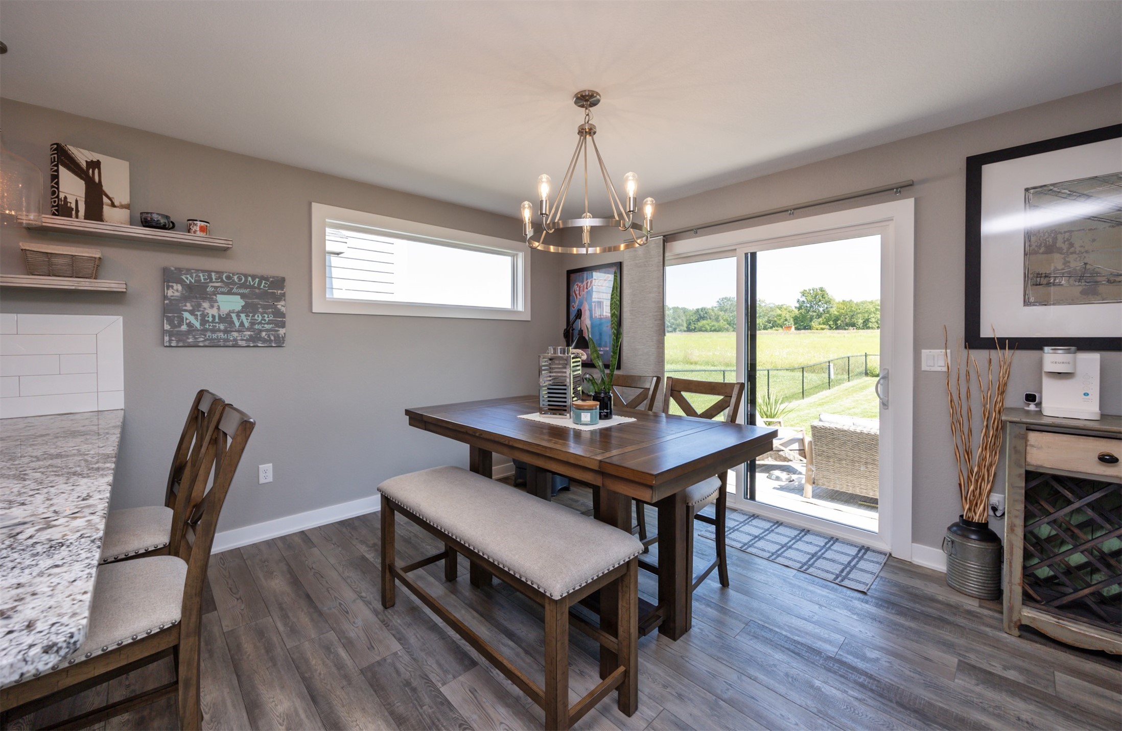 Welcome to this charming, move-in ready two-story in Grimes! Step inside to an inviting, light-filled main level featuring easy-care LVP flooring, a half bath and a gas fireplace with stone surround. The living room flows seamlessly into the dining area and stylish kitchen, complete with two pantries, granite countertops, tile backsplash, stainless appliances, and soft-close cabinetry--perfect for everyday living and entertaining! Upstairs, you'll find a primary suite with a walk-in closet and en-suite bath. Two additional bedrooms, a full bath, and convenient laundry complete the second floor. The finished lower level offers flexible living space with 9" ceilings, a full bath, and storage space! Outside, enjoy a fully fenced backyard with a patio that provides the perfect spot for morning coffee or evening gatherings with no backyard neighbors! Built with energy-saving upgrades like foam insulation and LED lighting. The insulated garage has epoxy flooring that adds both durability and style! Located just steps from Heritage Elementary, close to parks, trails, shopping, dining and Highway 141 for an easy commute!