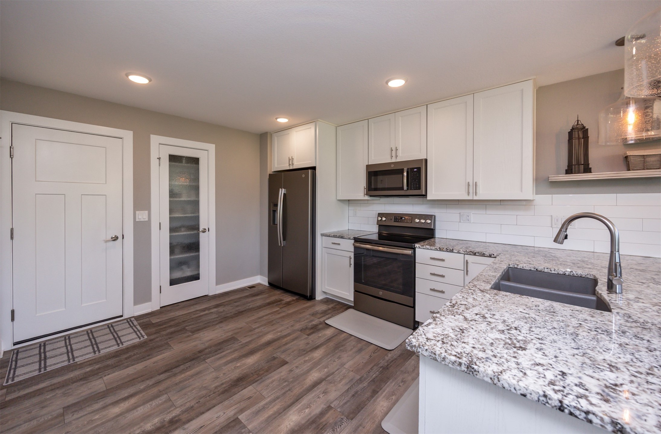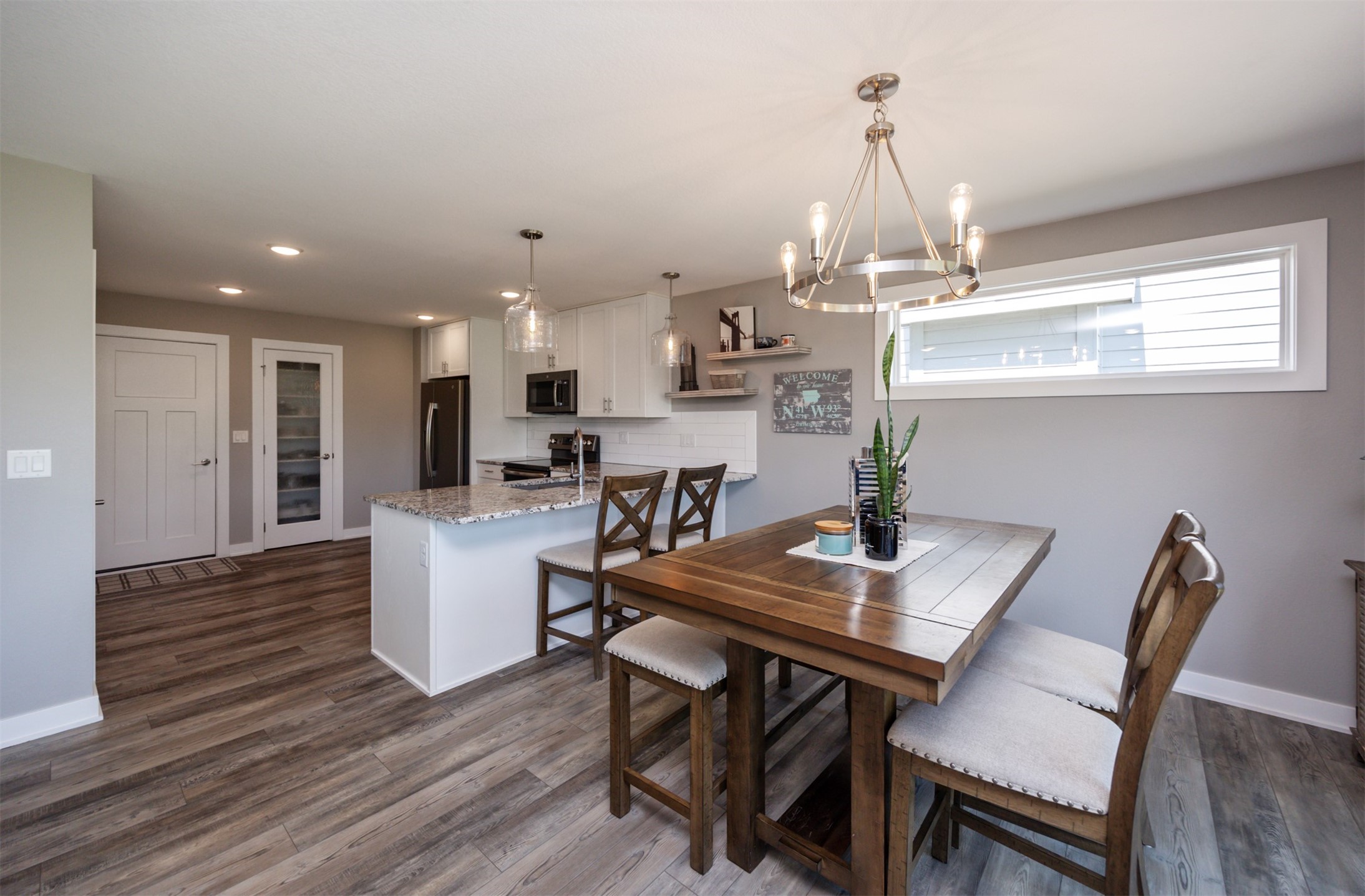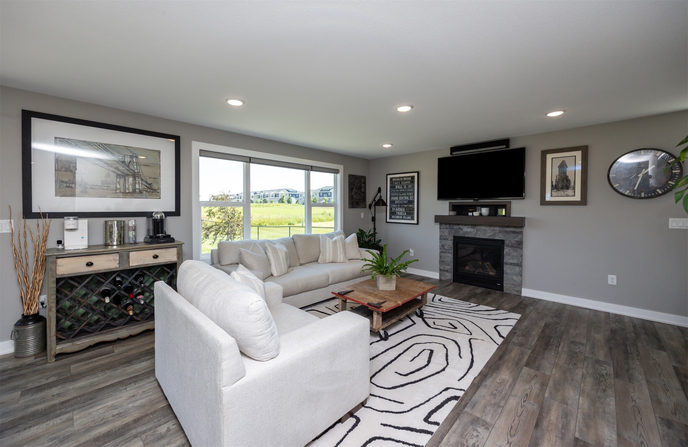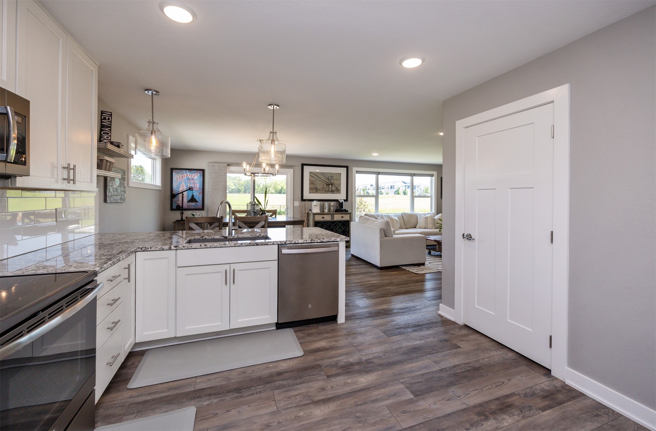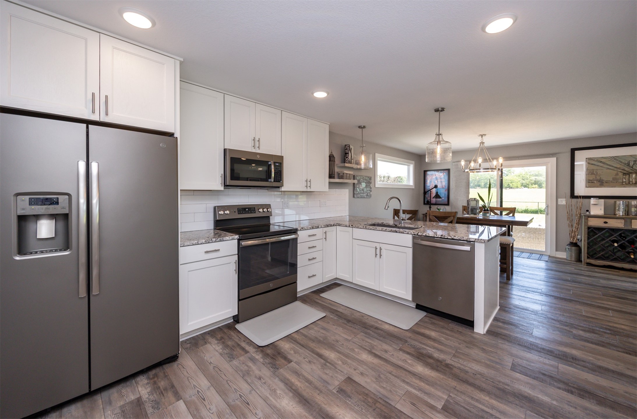 Welcome to this charming, move-in ready two-story in Grimes! Step inside to an inviting, light-filled main level featuring easy-care LVP flooring, a half bath and a gas fireplace with stone surround. The living room flows seamlessly into the dining area and stylish kitchen, complete with two pantries, granite countertops, tile backsplash, stainless appliances, and soft-close cabinetry--perfect for everyday living and entertaining! Upstairs, you'll find a primary suite with a walk-in closet and en-suite bath. Two additional bedrooms, a full bath, and convenient laundry complete the second floor. The finished lower level offers flexible living space with 9" ceilings, a full bath, and storage space! Outside, enjoy a fully fenced backyard with a patio that provides the perfect spot for morning coffee or evening gatherings with no backyard neighbors! Built with energy-saving upgrades like foam insulation and LED lighting. The insulated garage has epoxy flooring that adds both durability and style! Located just steps from Heritage Elementary, close to parks, trails, shopping, dining and Highway 141 for an easy commute!