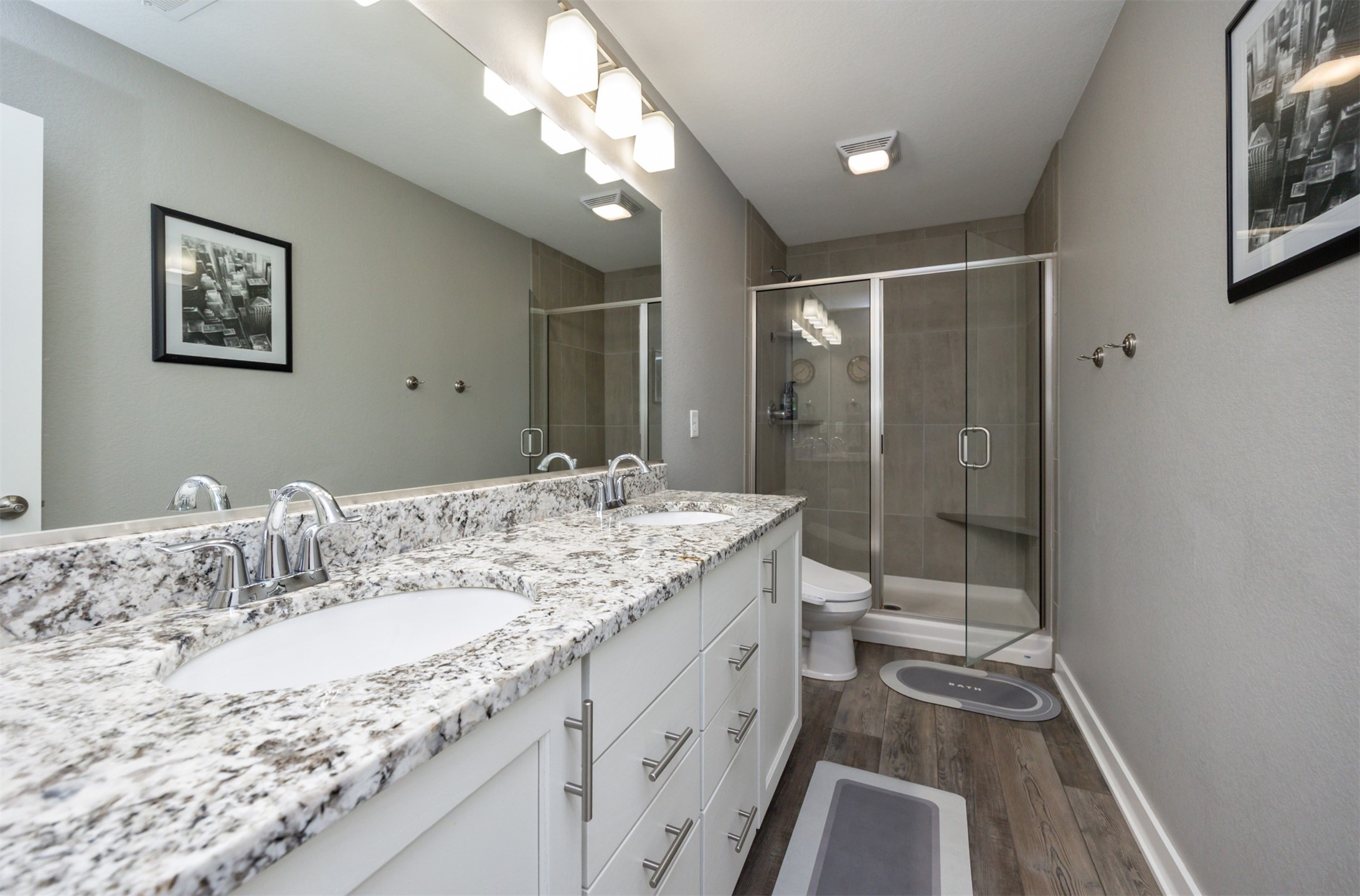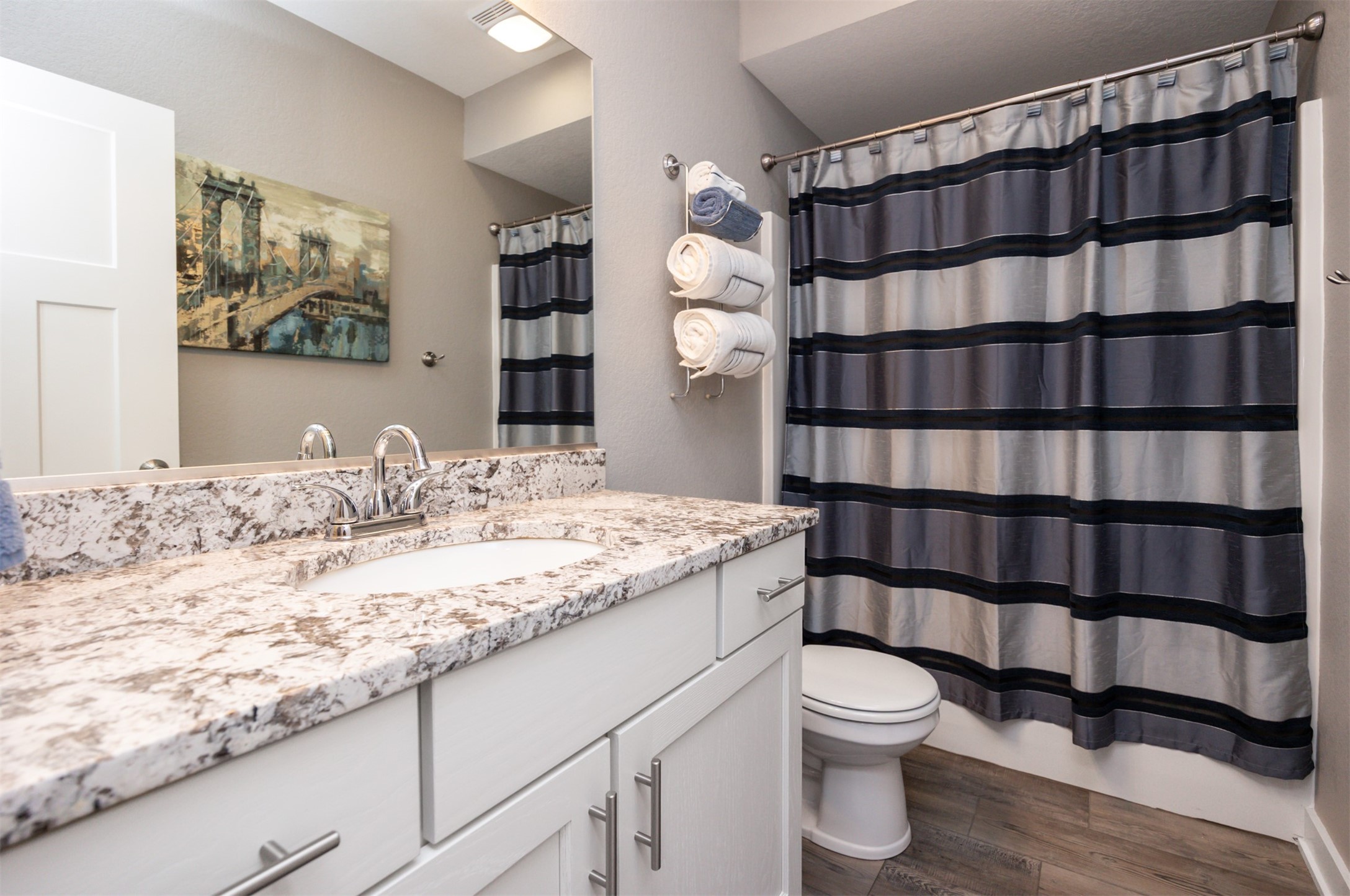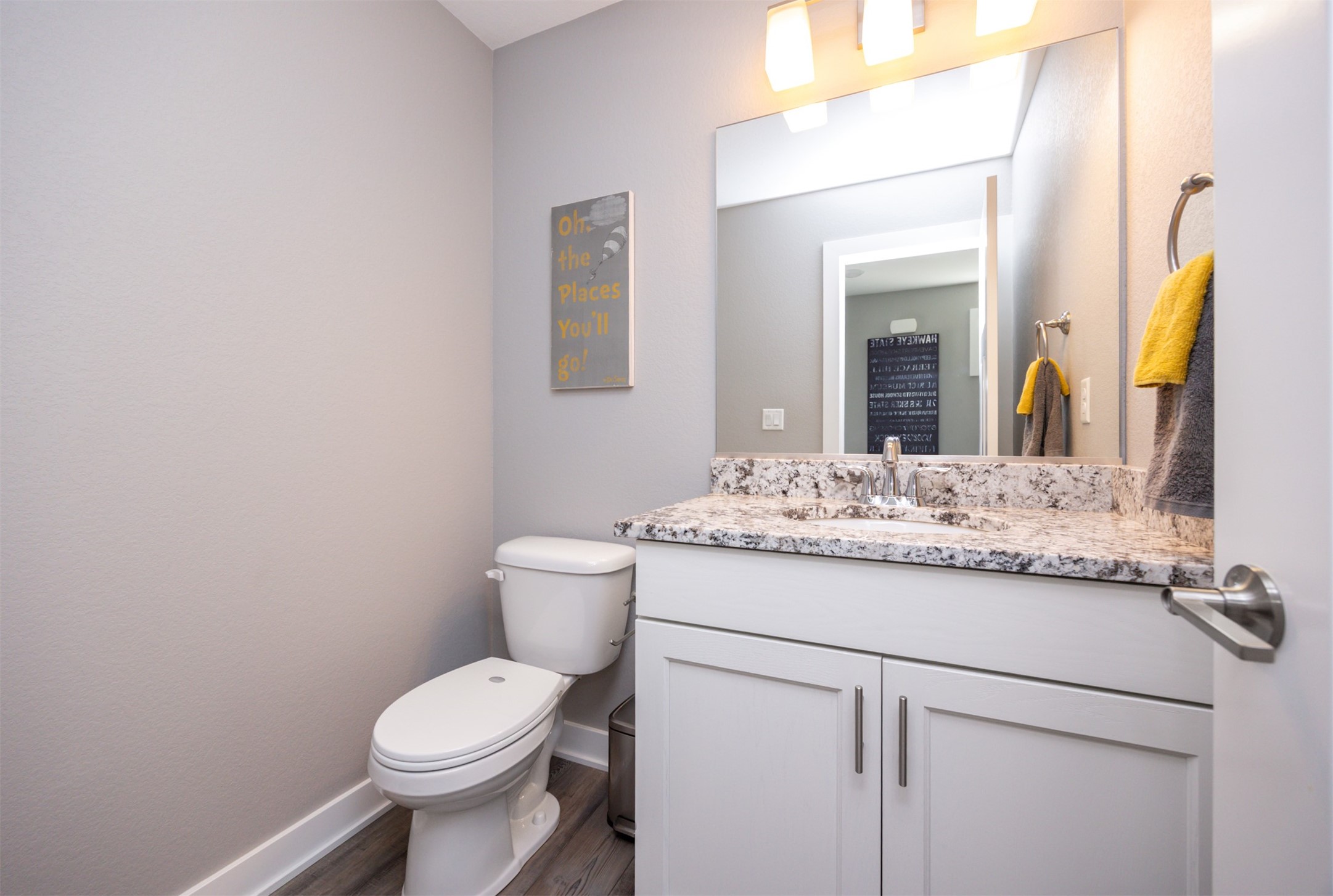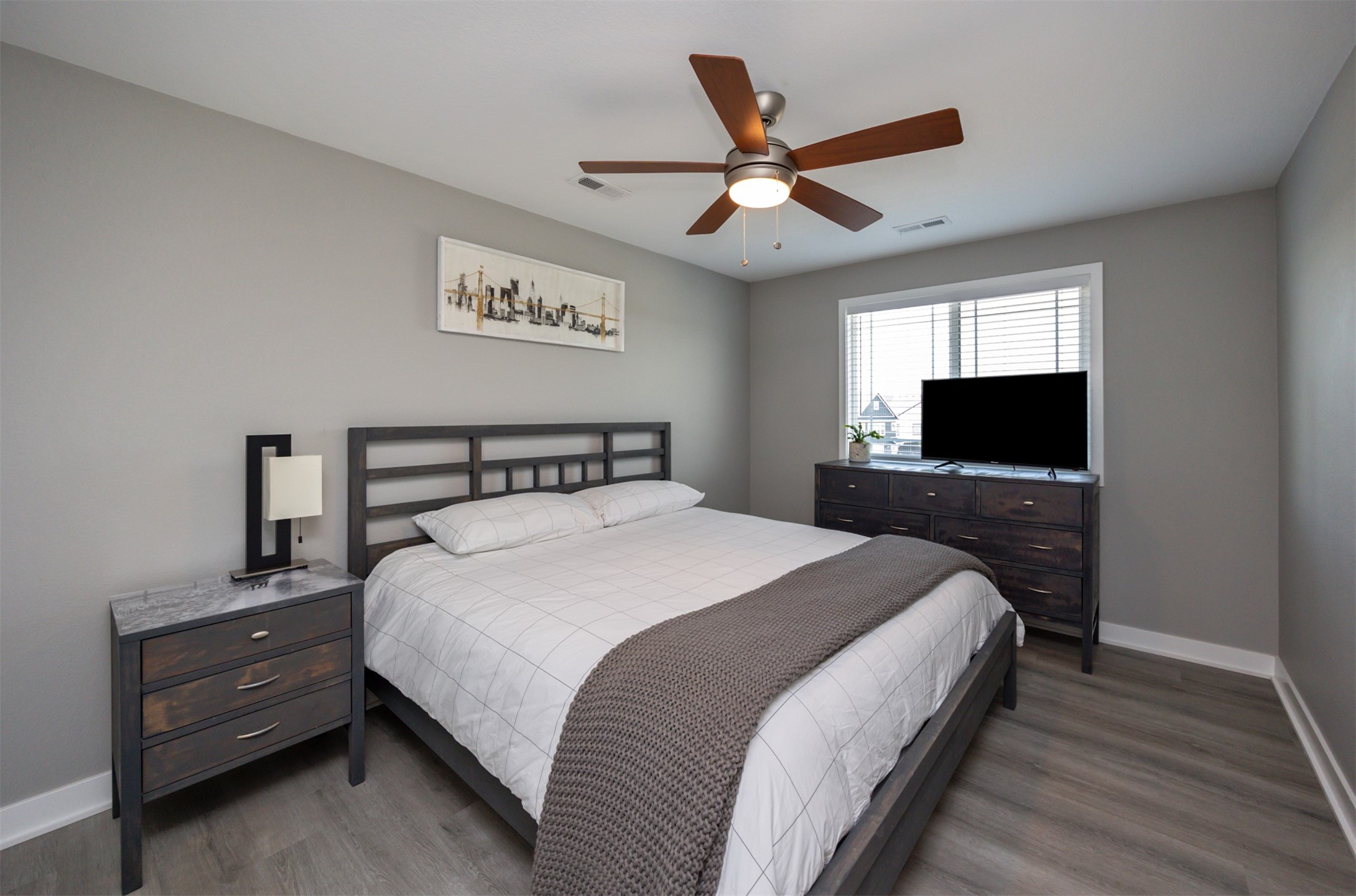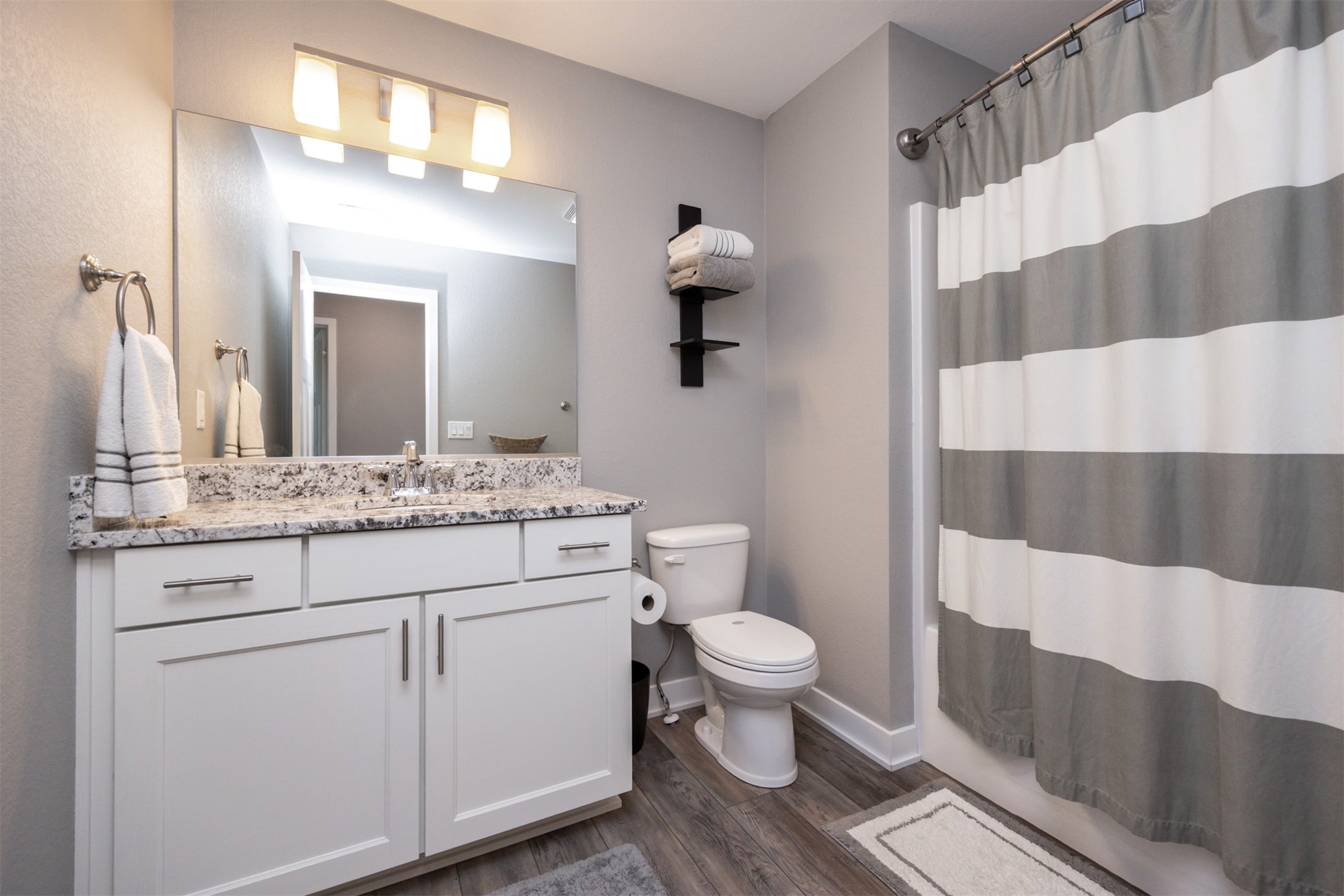Welcome to this charming, move-in ready two-story in Grimes! Step inside to an inviting, light-filled main level featuring easy-care LVP flooring, a half bath and a gas fireplace with stone surround. The living room flows seamlessly into the dining area and stylish kitchen, complete with two pantries, granite countertops, tile backsplash, stainless appliances, and soft-close cabinetry--perfect for everyday living and entertaining! Upstairs, you'll find a primary suite with a walk-in closet and en-suite bath. Two additional bedrooms, a full bath, and convenient laundry complete the second floor. The finished lower level offers flexible living space with 9" ceilings, a full bath, and storage space! Outside, enjoy a fully fenced backyard with a patio that provides the perfect spot for morning coffee or evening gatherings with no backyard neighbors! Built with energy-saving upgrades like foam insulation and LED lighting. The insulated garage has epoxy flooring that adds both durability and style! Located just steps from Heritage Elementary, close to parks, trails, shopping, dining and Highway 141 for an easy commute!