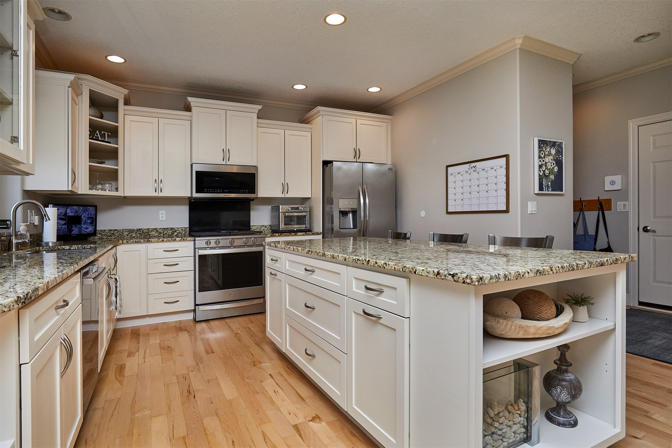 Meticulously maintained, spacious two-story home located close proximately to parks, trails, and access to the interstate. Open main floor that has a formal dining room off the entryway that flows into the living room and kitchen. Lots of natural light and storage with built-in cabinets next to the fireplace. Mudroom and first-floor laundry off of the garage entrance. Upstairs, each bedroom has its own bathroom! The large primary suite has its own ensuite with a large tub and walk-in shower. Great extra flex room on the second floor as well! Down to the finished lower level, you have a second living area, bedroom, flex room, and bathroom. New maintenance-free composite deck is perfect for a relaxing summer night. Heated 3rd car garage/workshop also 240v car charging hookup in garage. 2 zone HVAC system. Don't miss out on this great home, schedule a showing today! All information obtained from Seller and public records.
