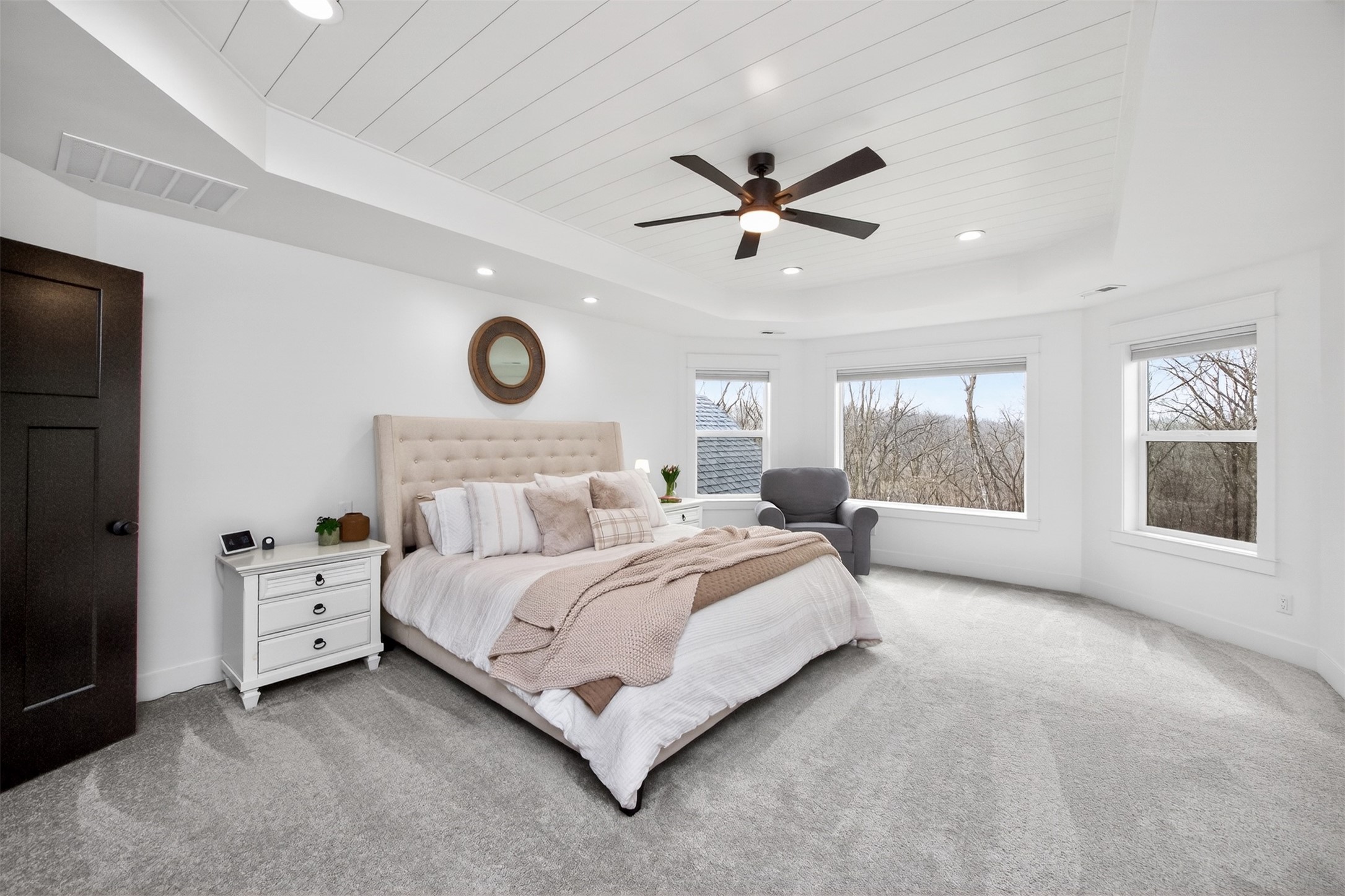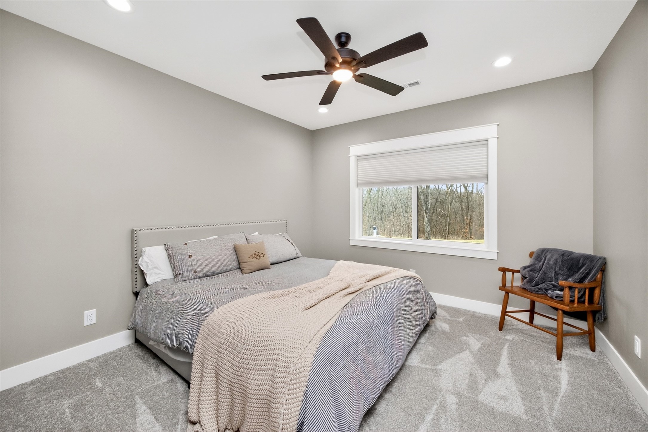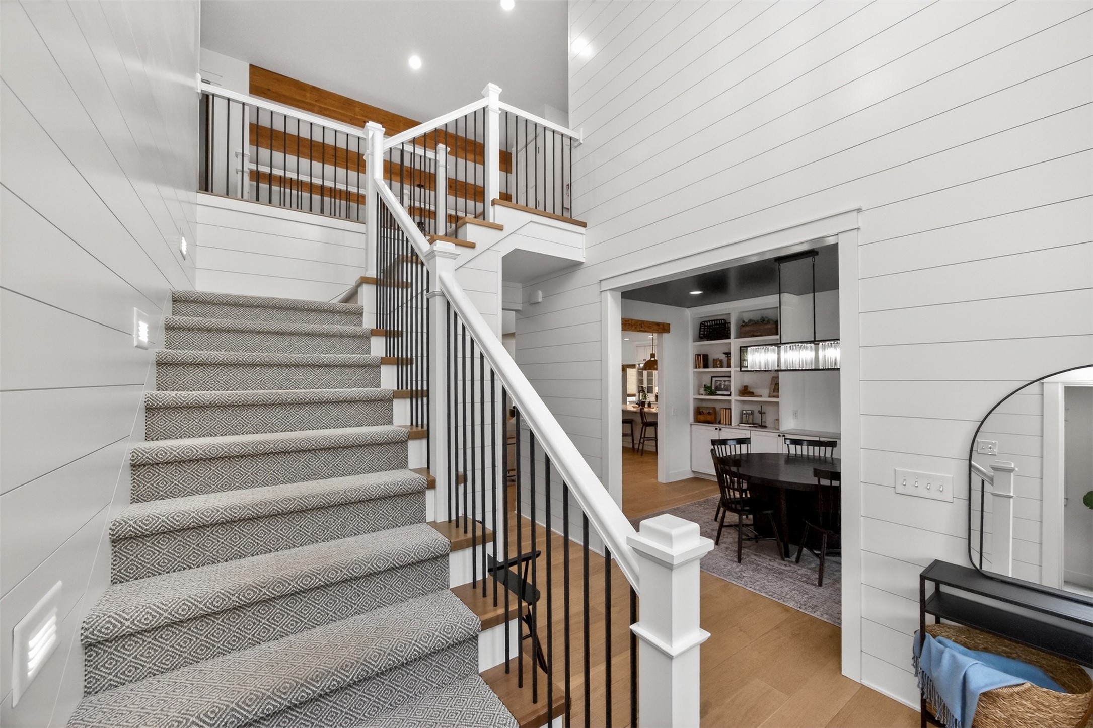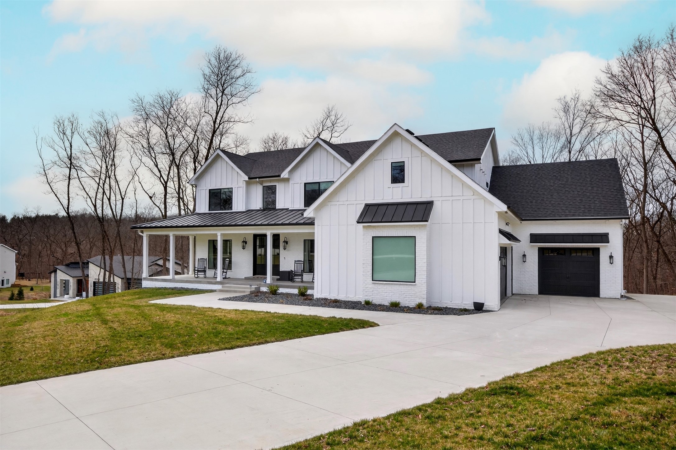 Exceptional Design, Unmatched Detail - Immaculate 6 bed, 5 bath custom 2-story in River Woods, located in the highly sought-after Van Meter school district with easy access to WDM and Waukee amenities. This thoughtfully designed home showcases white oak engineered hardwood floors, soaring 20 ft ceilings, shiplap accents, and locally sourced wood beams. The main level offers a private office/den, bonus bedroom/flex space, 3/4 bath, and a welcoming family room that opens to a stunning kitchen with stainless steel appliances, quartz counters, oversized island, under-cabinet lighting, and a walk-in pantry with grocery door. A cozy sitting area with a pocket bar and beverage fridge adds the perfect touch. Dining is an event with the statement ceiling and custom built-ins! Enjoy the screened porch year-round with infrared heaters and peaceful views. Upstairs features a spacious primary suite with a cozy sitting area, soaking tub, heated tiled shower, dual walk-in closets, and convenient laundry plus 3 add'l bedrooms, including a Jack & Jill bath and an ensuite 3/4 bath. A catwalk overlooks the main level. The walkout lower level provides additional living space, a bedroom, full bath, and abundant storage w/ storm shelter space. The heated garage is oversized for all needs and hobbies! Situated on 2.13 flat acres with mature trees, a wraparound porch, and patio--this home blends privacy, luxury, comfort, and function in a serene setting.