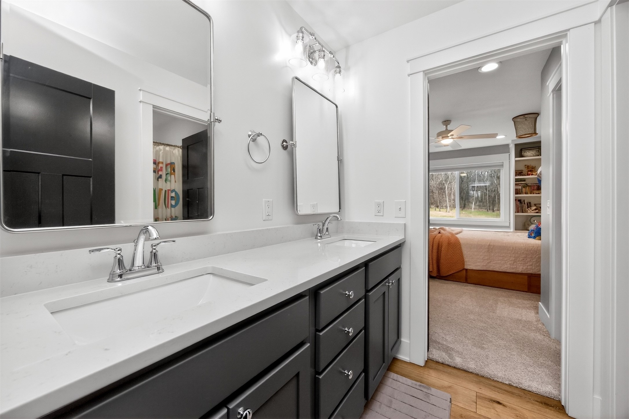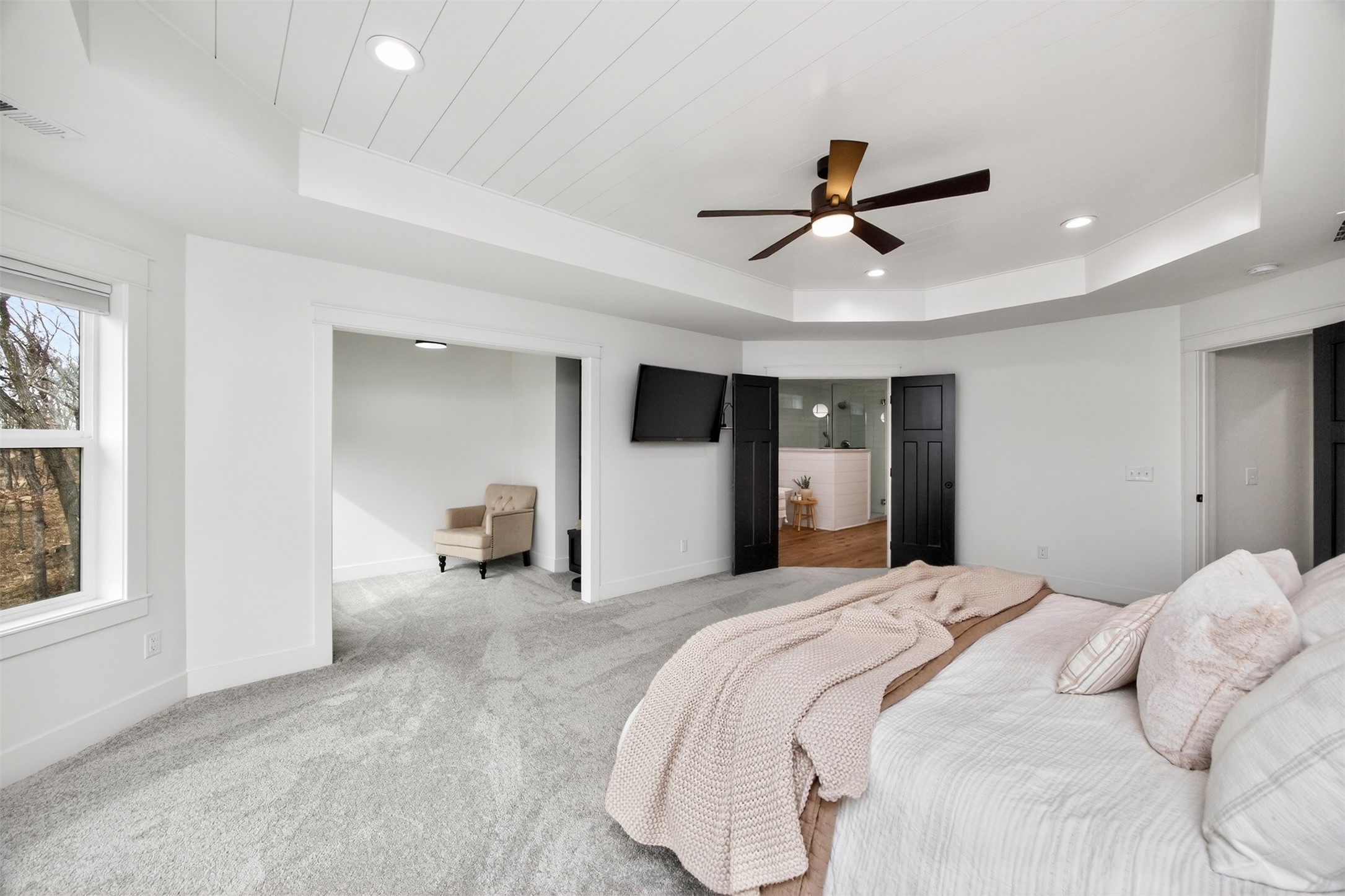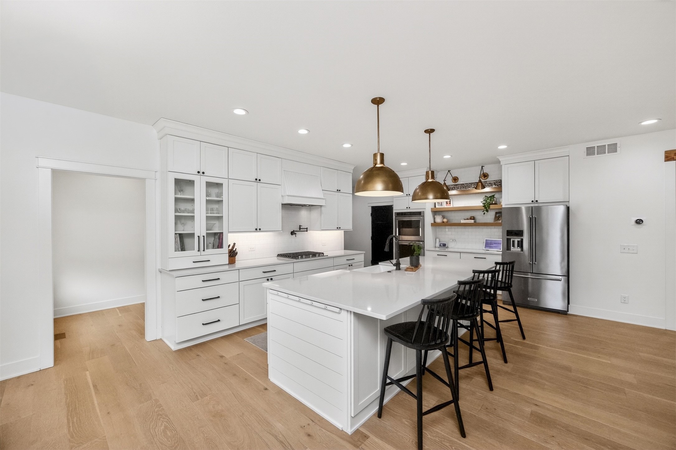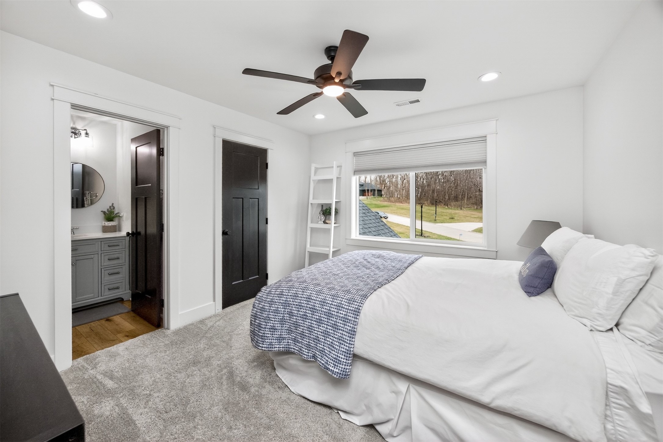 Exceptional Design, Unmatched Detail - Immaculate 6 bed, 5 bath custom 2-story in River Woods, located in the highly sought-after Van Meter school district with easy access to WDM and Waukee amenities. This thoughtfully designed home showcases white oak engineered hardwood floors, soaring 20 ft ceilings, shiplap accents, and locally sourced wood beams. The main level offers a private office/den, bonus bedroom/flex space, 3/4 bath, and a welcoming family room that opens to a stunning kitchen with stainless steel appliances, quartz counters, oversized island, under-cabinet lighting, and a walk-in pantry with grocery door. A cozy sitting area with a pocket bar and beverage fridge adds the perfect touch. Dining is an event with the statement ceiling and custom built-ins! Enjoy the screened porch year-round with infrared heaters and peaceful views. Upstairs features a spacious primary suite with a cozy sitting area, soaking tub, heated tiled shower, dual walk-in closets, and convenient laundry plus 3 add'l bedrooms, including a Jack & Jill bath and an ensuite 3/4 bath. A catwalk overlooks the main level. The walkout lower level provides additional living space, a bedroom, full bath, and abundant storage w/ storm shelter space. The heated garage is oversized for all needs and hobbies! Situated on 2.13 flat acres with mature trees, a wraparound porch, and patio--this home blends privacy, luxury, comfort, and function in a serene setting.