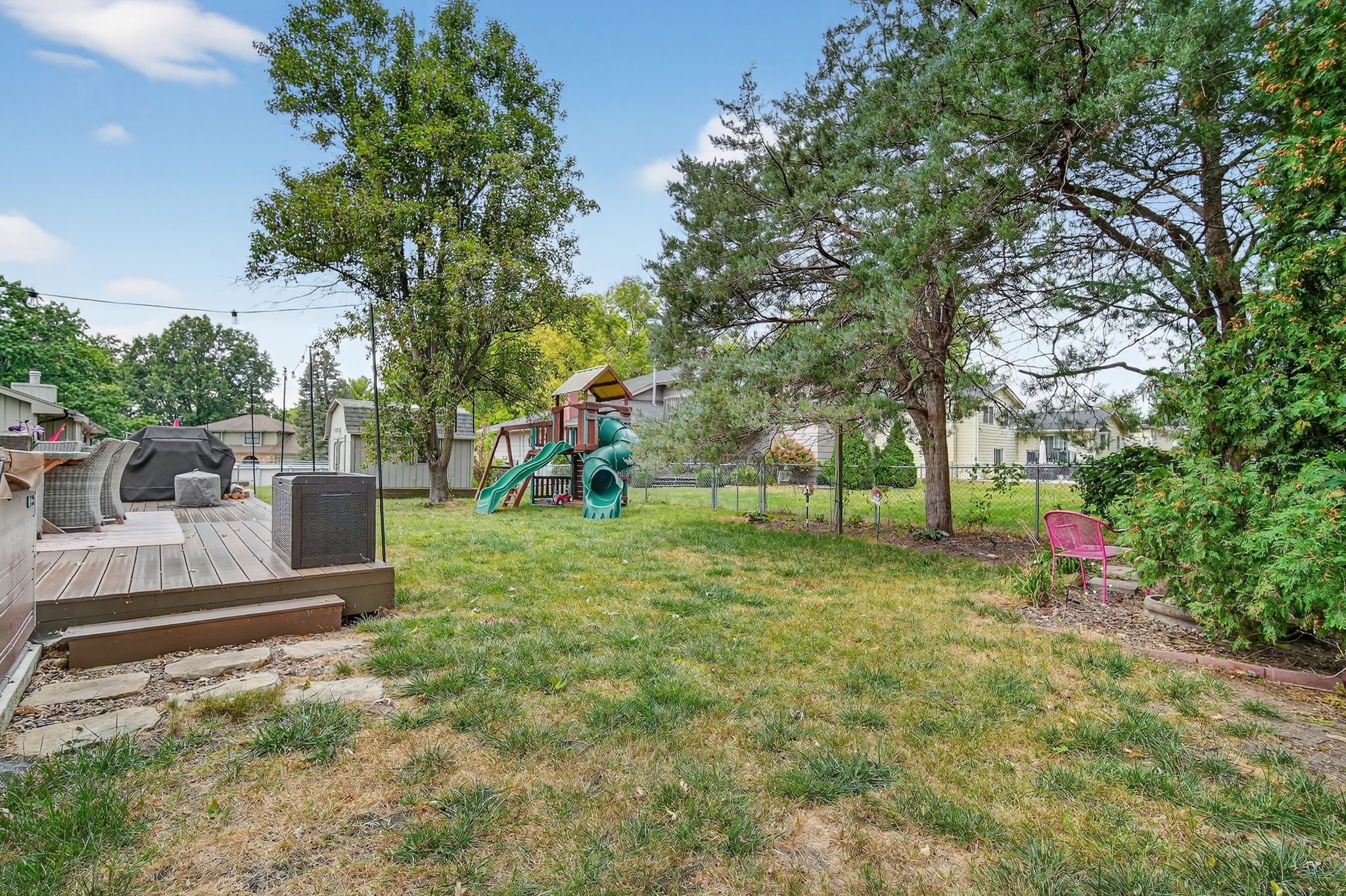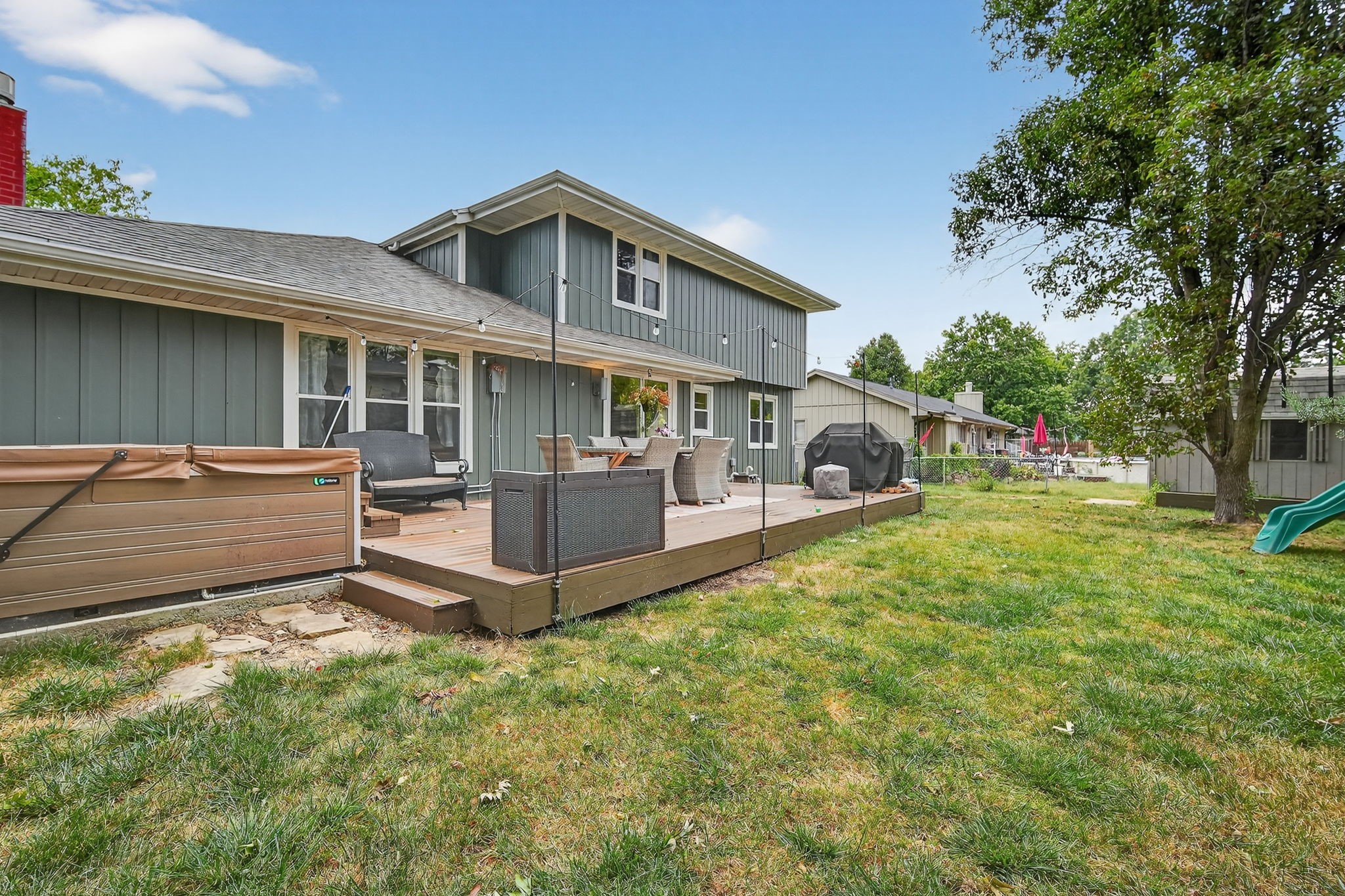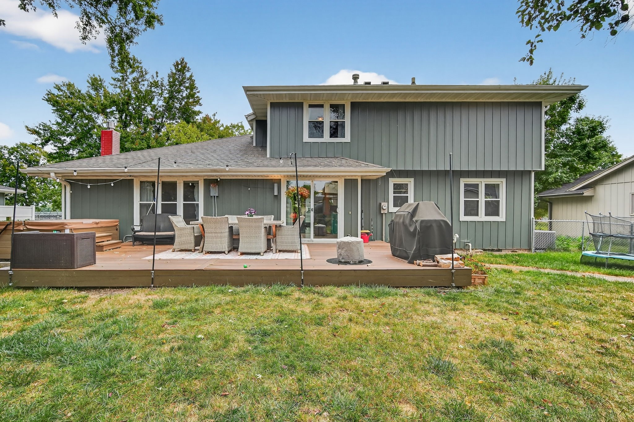Looking for a quick commute, close to schools, shopping and more? Check out this completely remodeled, two story conveniently located across from Valley High School! This 3 bedroom, 3 bath home has all the amenities and updates including; Engineered hardwood floors on the main level. The updated Kitchen has been recently renovated with quartz counters, stainless steel appliances and ample storage space. The eat-in kitchen overlooks a fully fenced backyard, the living room has a cozy feel with custom shelving, & gas fireplace. Upstairs the three bedrooms & two updated bathrooms are sure to check all the must haves on your list! The Main ensuite has a tile walk-in shower and custom closet shelving. The basement features living space & bonus room/office, as well as large storage area. Additional updates include; new sump pump with backup battery, leaf guard gutters, steel siding (2025), AC (2021), Water Heater, Wood Alternative Decking (2023), Permanent programmable holiday lights on front of house (2023), New roof (2022), Salt cartridge hot tub (2022), Washer/dryer (2020), Radon Mitigation System.
