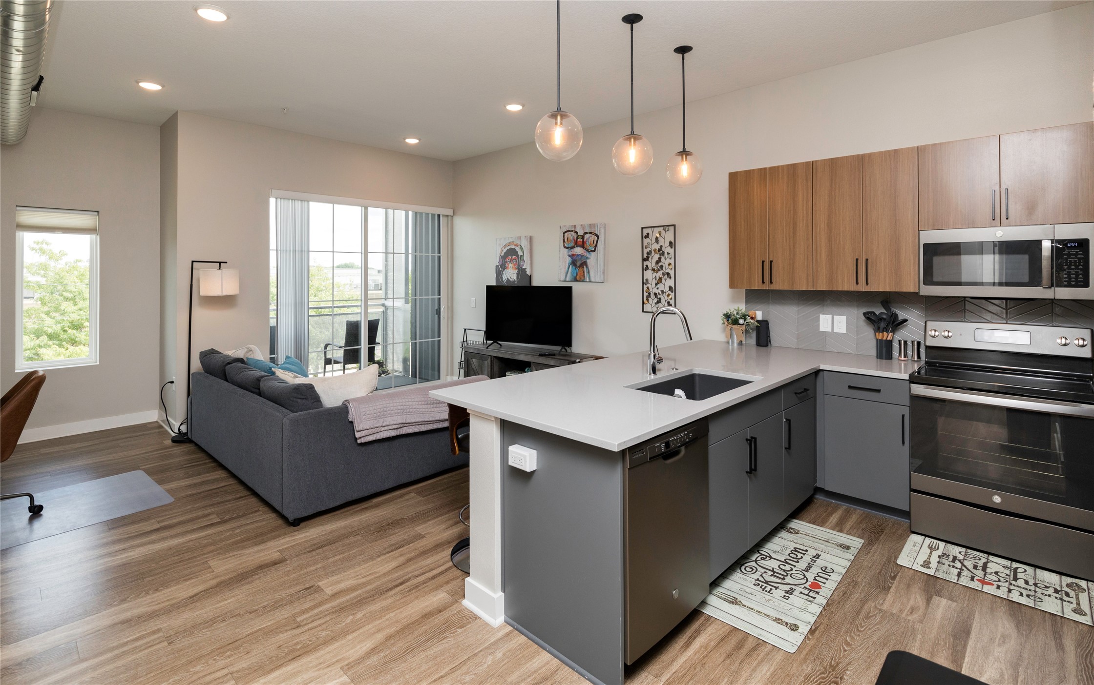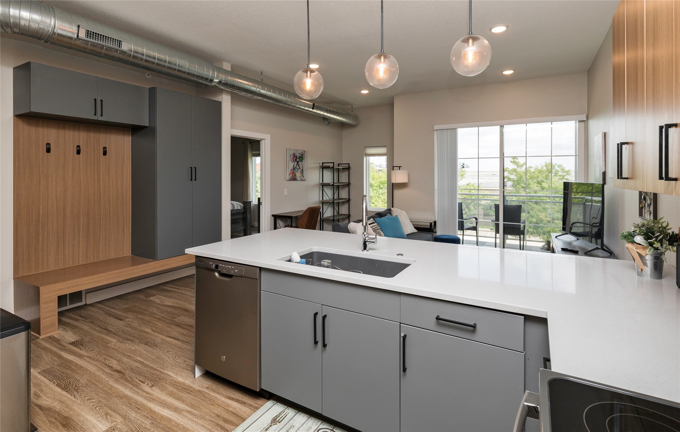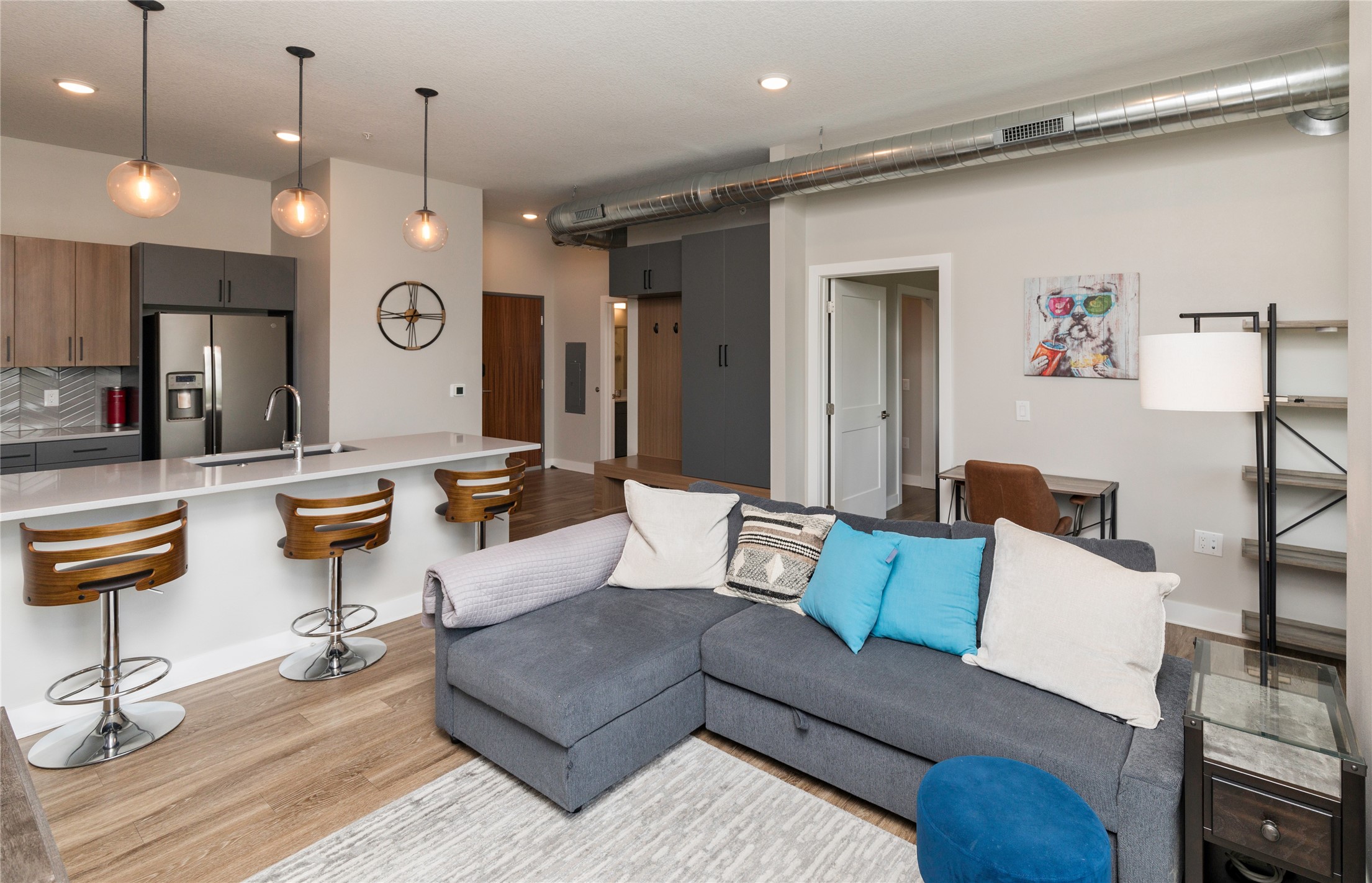 Enjoy modern, high-end amenities at the Edison Condominiums! This community's location is key when it comes to enjoying downtown living, specifically because of its prime location and proximity to everything you love! Tax abatement remains ($ HUGE SAVINGS $), low HOA dues, reserved parking spot, window coverings, tiled shower with glass door, extra closet shelving = all included! The kitchen w/ quartz countertops, tile backsplash, and stainless steel appliances has a peninsula accommodating barstools and opens to the living room with slider to private balcony - which makes this the perfect spot to entertain. The unit also includes LVP flooring, abundant storage space, in-unit washer/dryer, and a walk-in closet. The Edison is walkable to Downtown, Gray's Lake, Principal Park & more, with access to bike trails. Check out this incredible, like-new condo today!