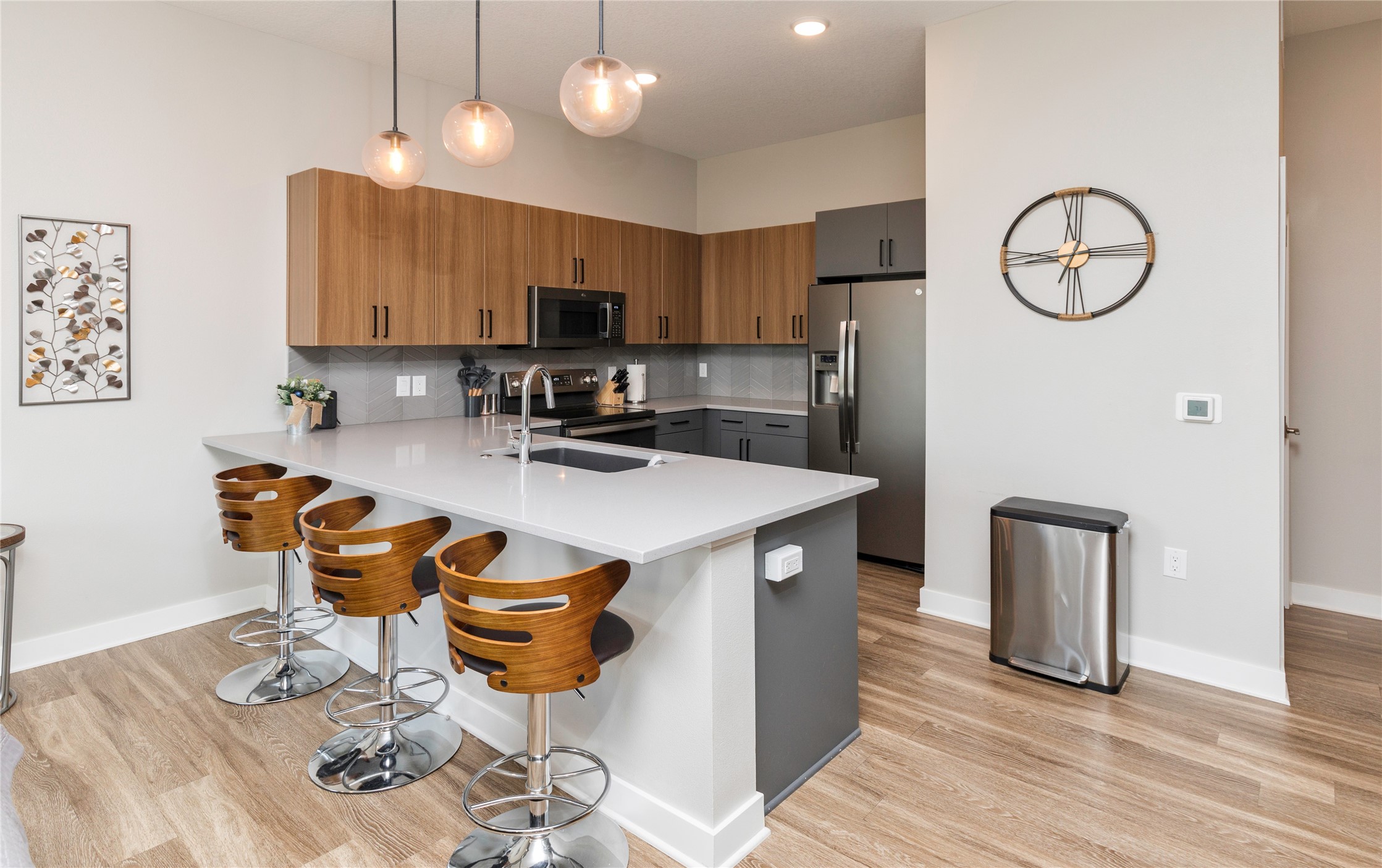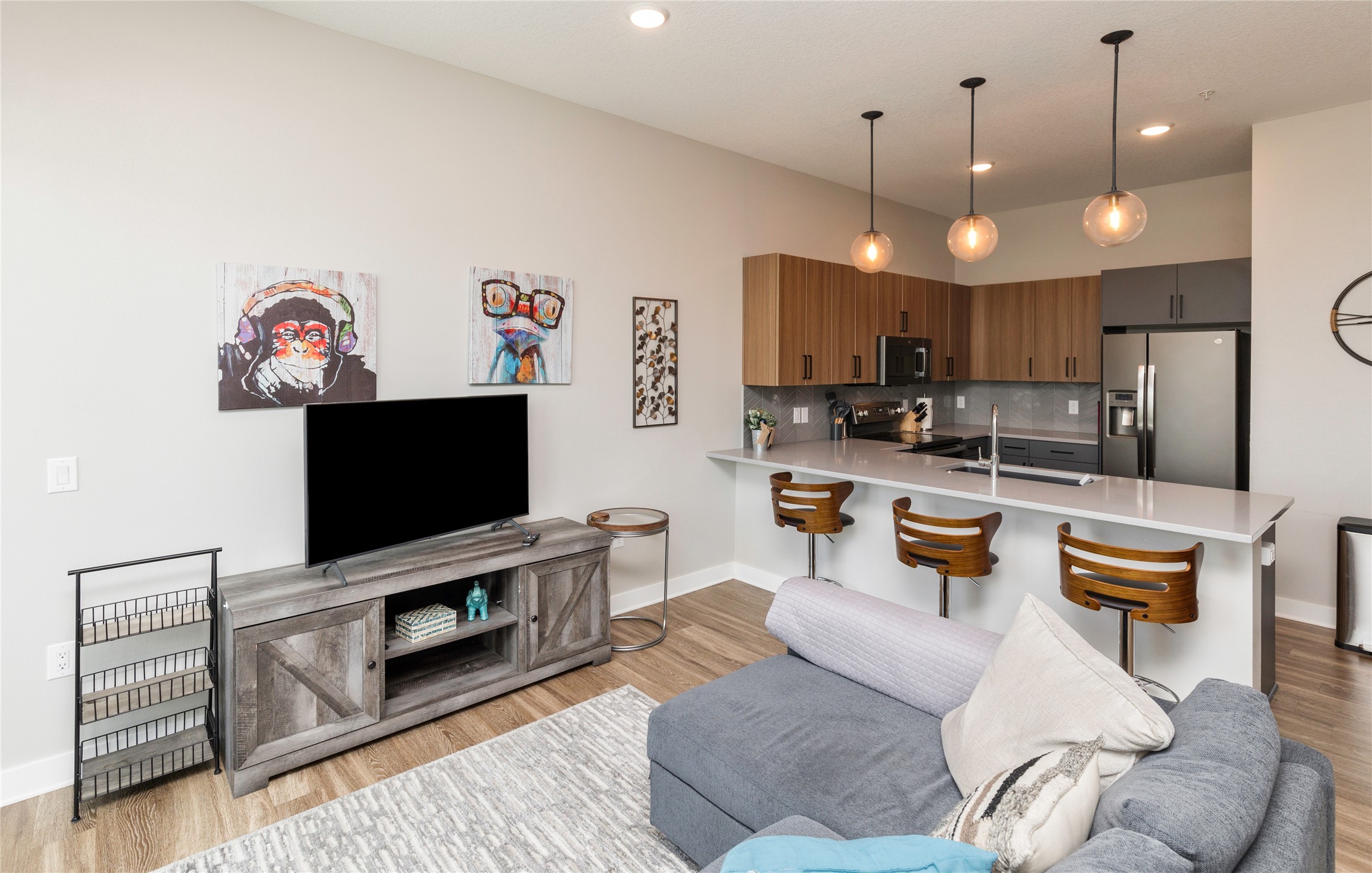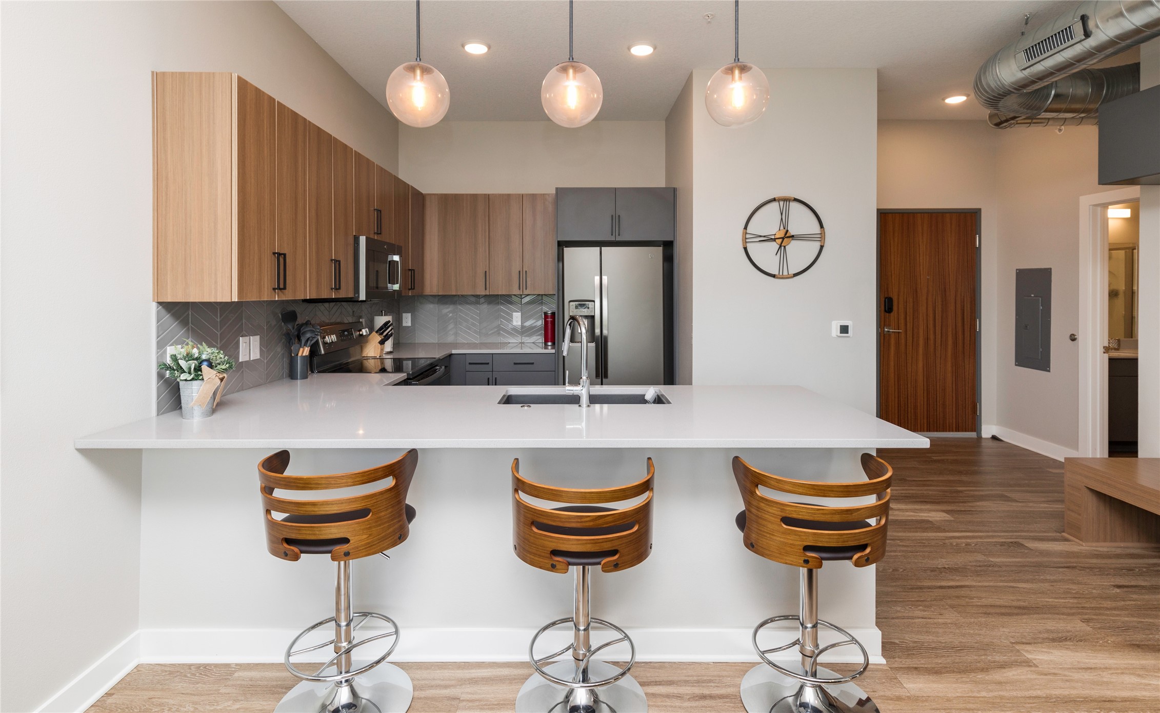 Enjoy modern, high-end amenities at the Edison Condominiums! This community's location is key when it comes to enjoying downtown living, specifically because of its prime location and proximity to everything you love! Tax abatement remains ($ HUGE SAVINGS $), low HOA dues, reserved parking spot, window coverings, tiled shower with glass door, extra closet shelving = all included! The kitchen w/ quartz countertops, tile backsplash, and stainless steel appliances has a peninsula accommodating barstools and opens to the living room with slider to private balcony - which makes this the perfect spot to entertain. The unit also includes LVP flooring, abundant storage space, in-unit washer/dryer, and a walk-in closet. The Edison is walkable to Downtown, Gray's Lake, Principal Park & more, with access to bike trails. Check out this incredible, like-new condo today!