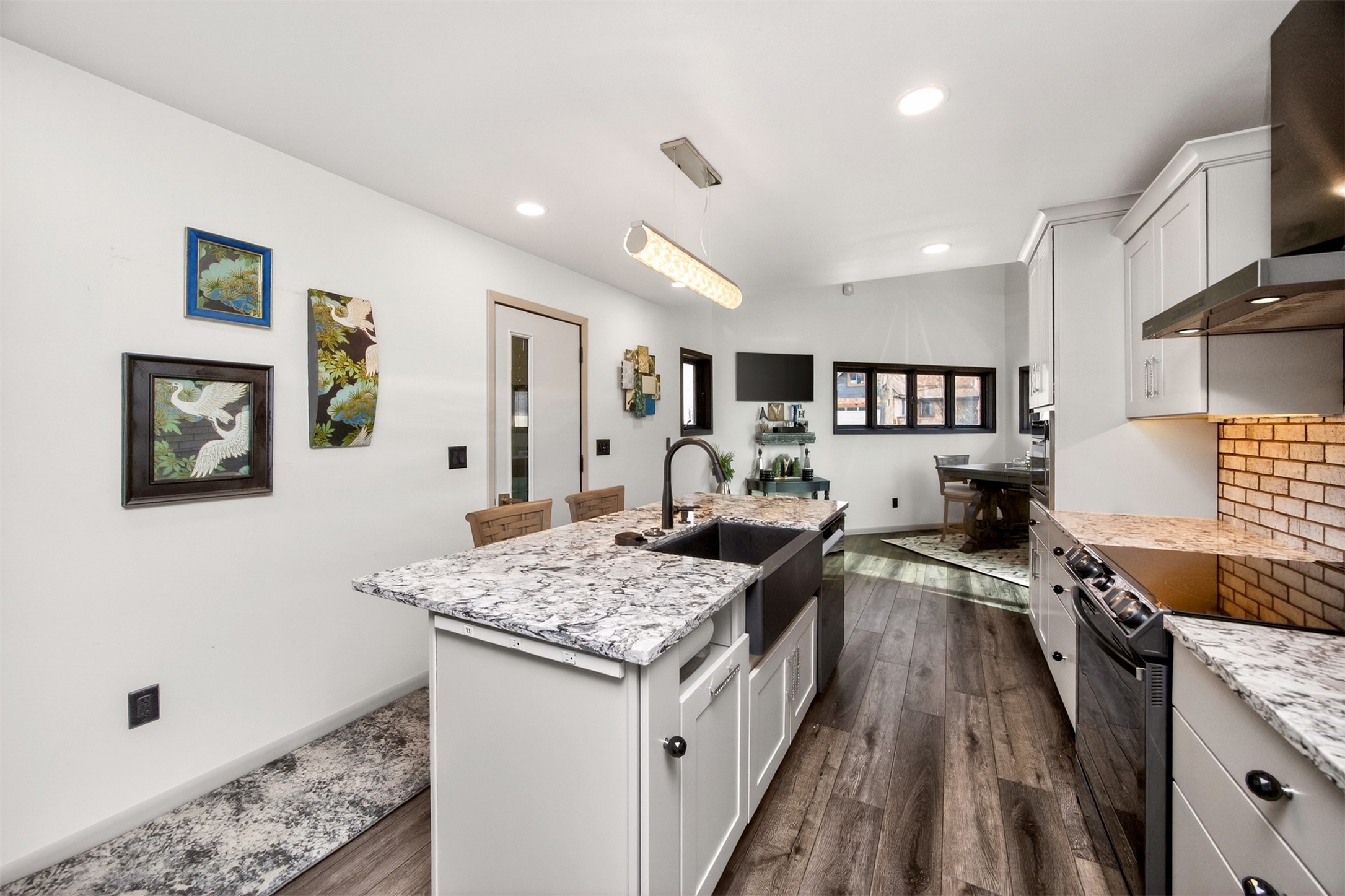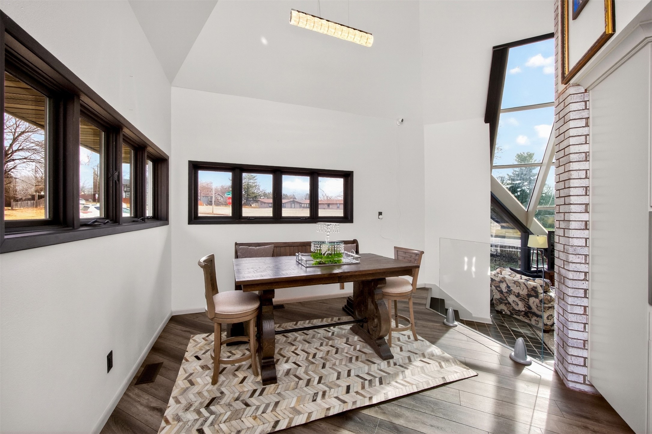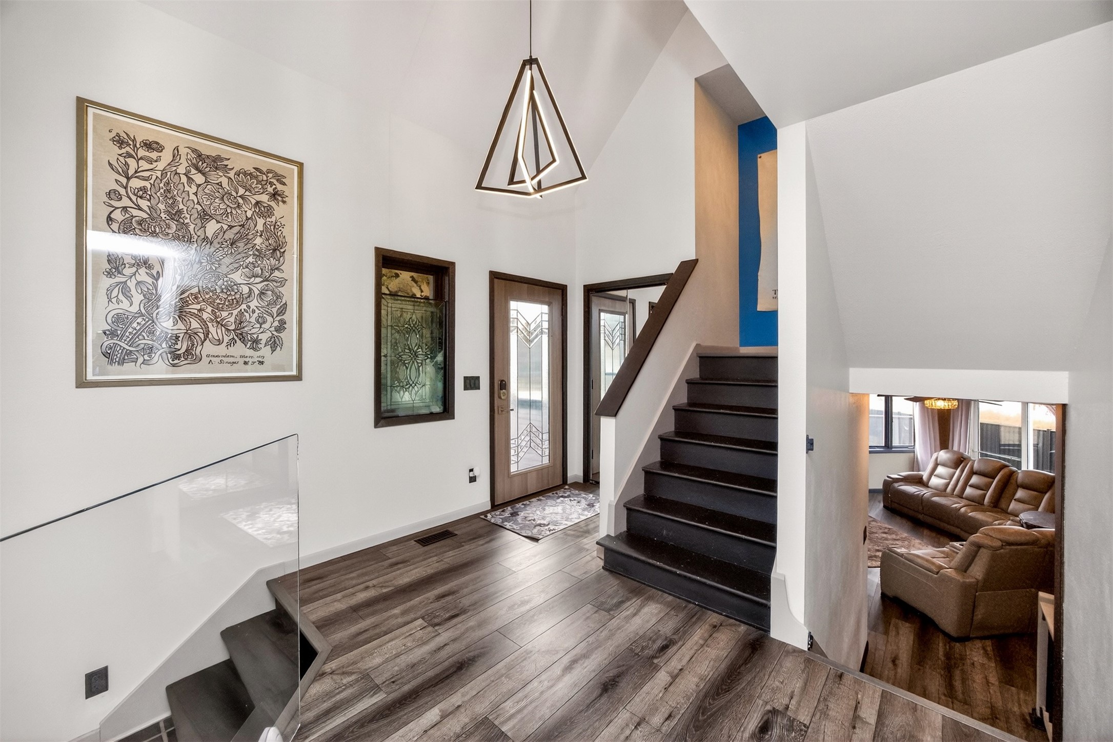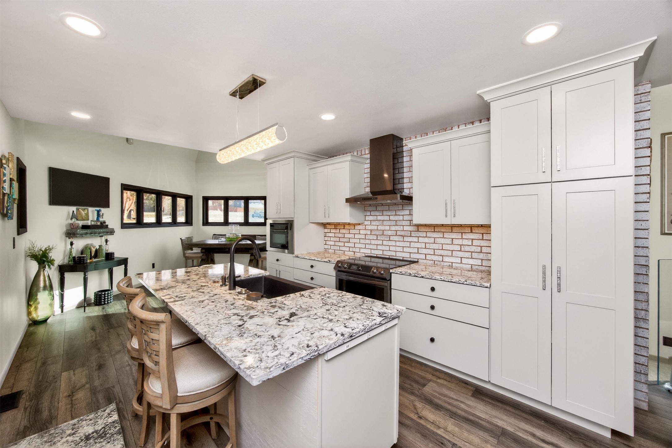 Architecturally distinctive and fully remodeled, this West Des Moines home offers striking design just minutes from Jordan Creek and quick access to I-235/I-80. The dramatic sunken living room showcases a whitewashed brick wall and illuminated glass railings - an eye-catching focal point rarely found at this price point. The kitchen has been thoughtfully opened to create a seamless flow, featuring new cabinetry, Cambria countertops, updated appliances, and direct garage access. A dedicated dining area connects the main living spaces for easy entertaining. Upstairs, the primary suite includes a walk-in closet and beautifully finished 3/4 bath with dual vanity and statement tile shower. Bedrooms two and three function as a secondary suite with their own 3/4 bath, complete with tile shower, built-in storage, and walk-in closet - ideal for guests, multigenerational living, or a private office retreat. The lower level adds a second living area, storage room, and a hidden playroom tucked under the stairs. Additional highlights: 2-car garage with storage, new garage door, extra side parking pad, maintenance-free decks, LVP flooring, textured ceilings, updated lighting/fixtures, and roof and gutters (2023). Prime Ashworth Road location close to shopping, dining, and commuter routes.