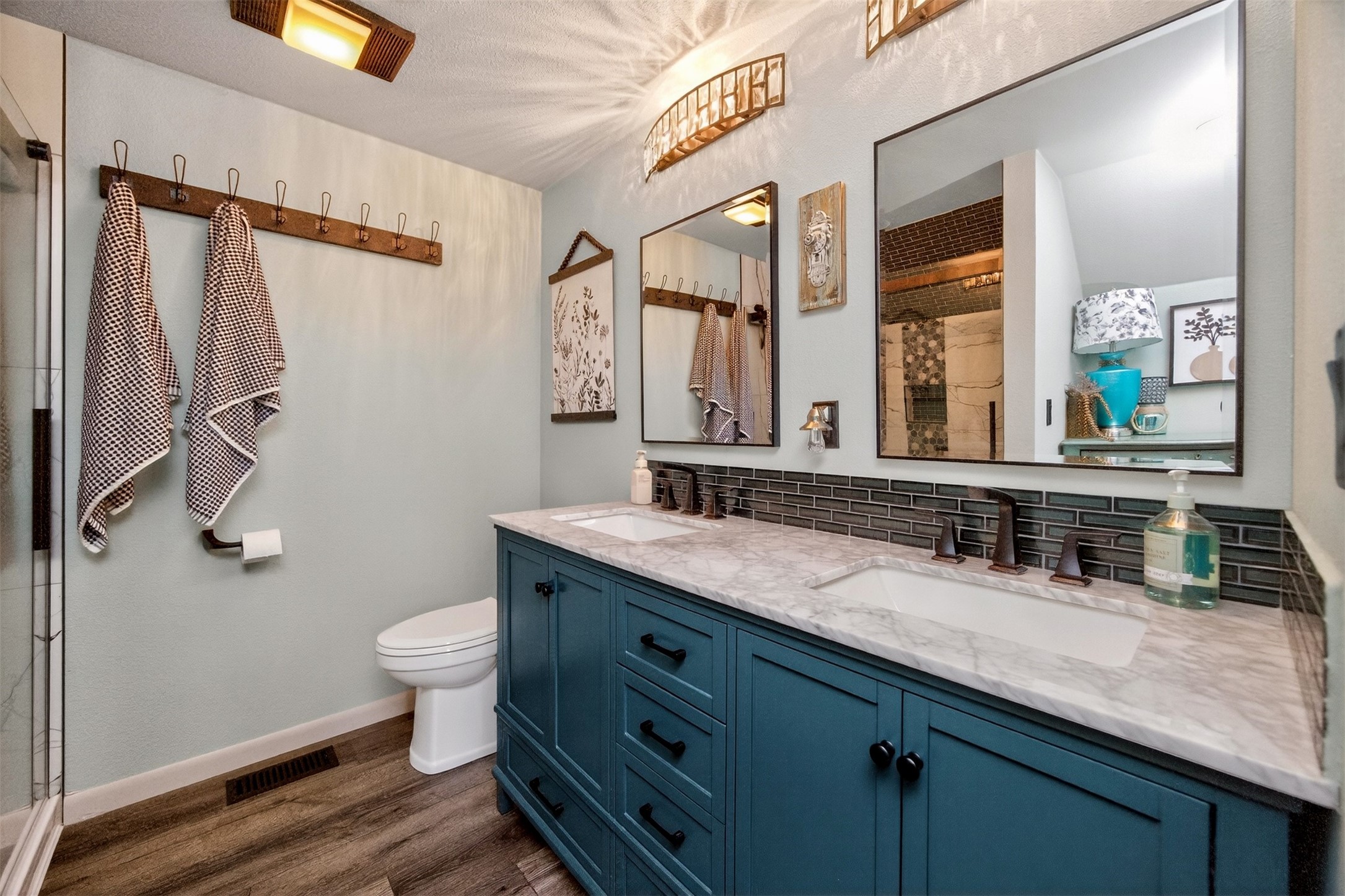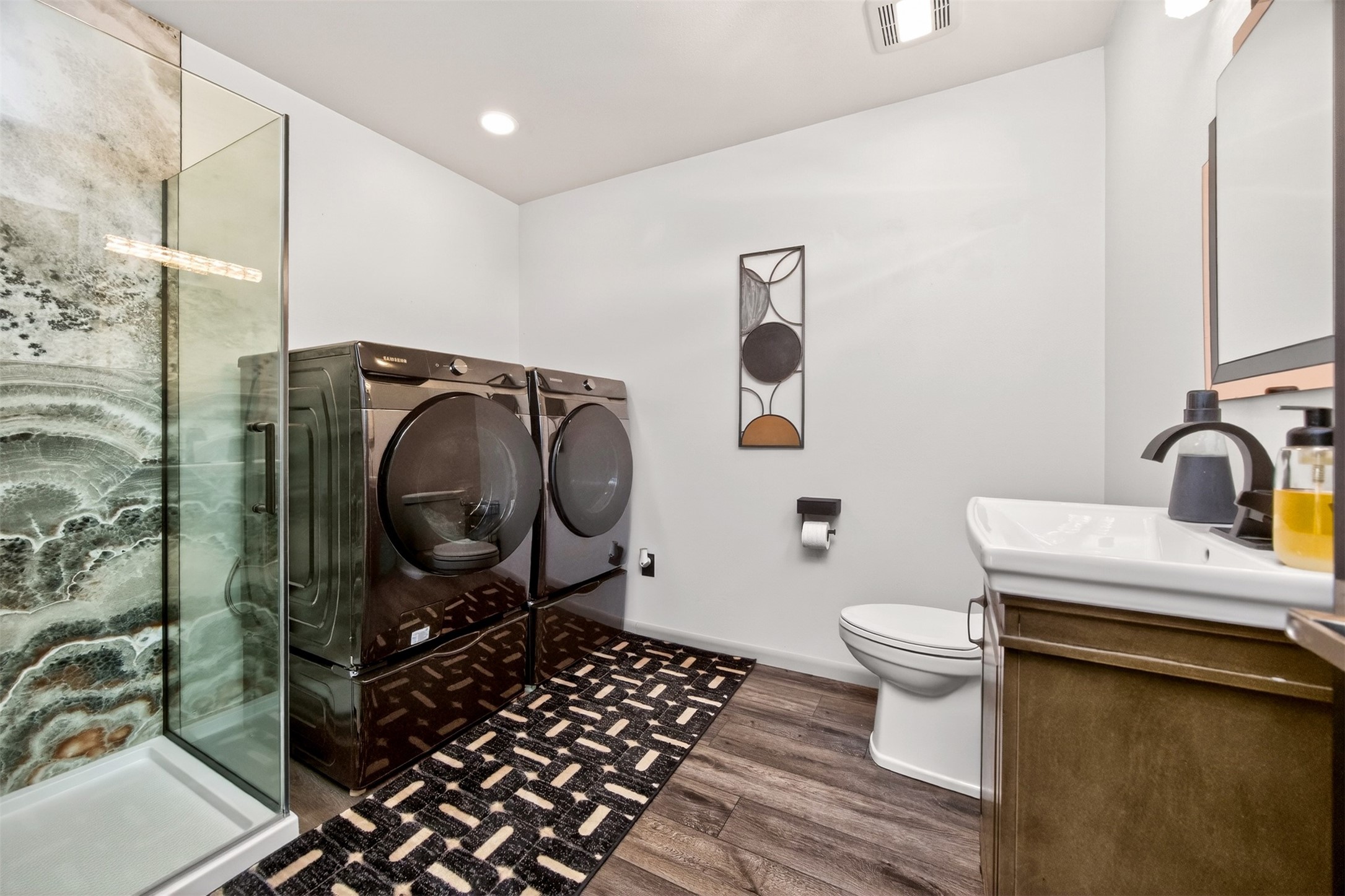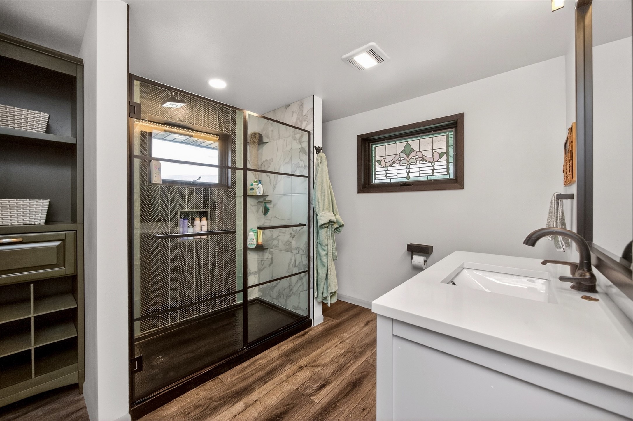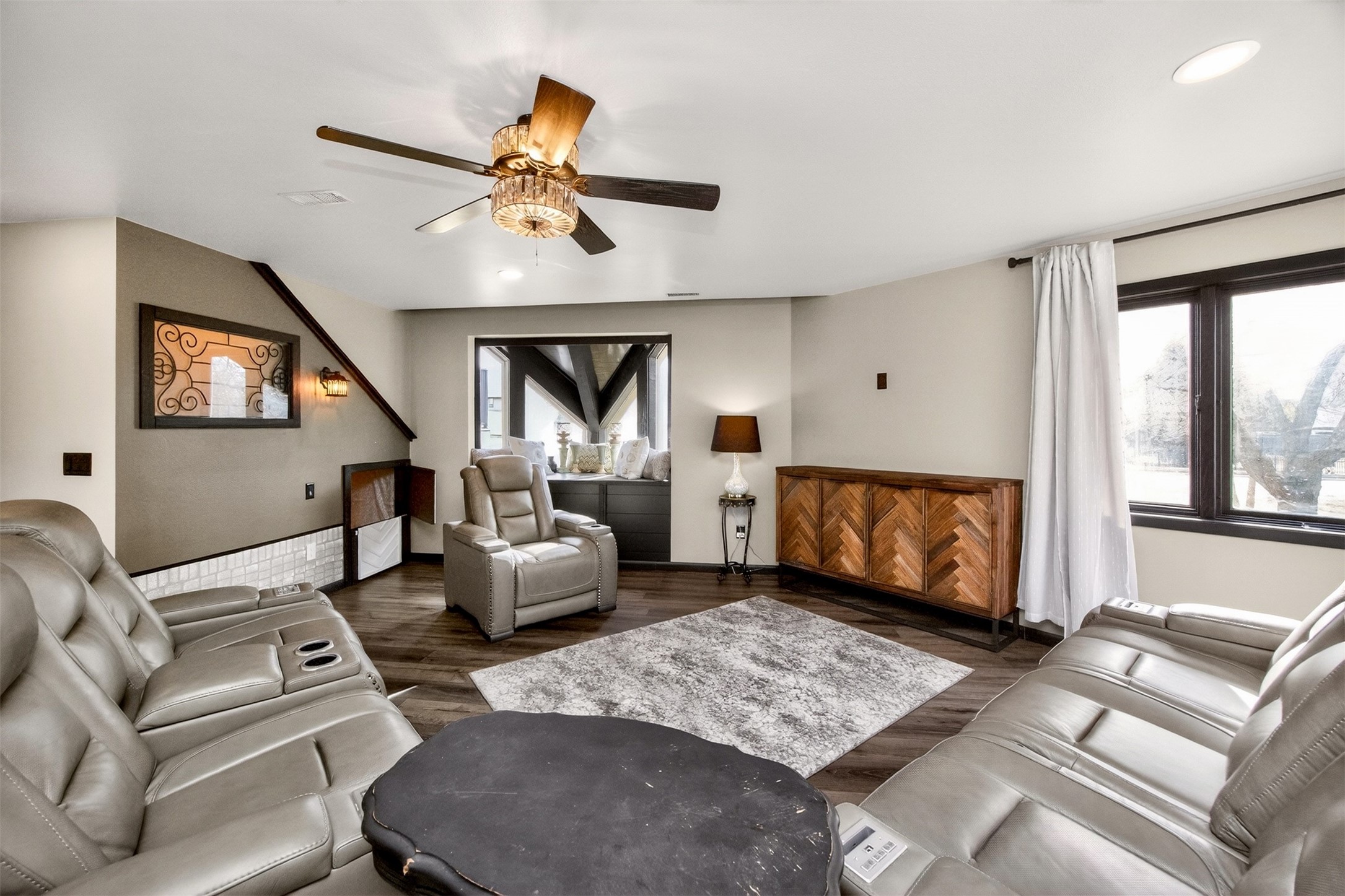 Architecturally distinctive and fully remodeled, this West Des Moines home offers striking design just minutes from Jordan Creek and quick access to I-235/I-80. The dramatic sunken living room showcases a whitewashed brick wall and illuminated glass railings - an eye-catching focal point rarely found at this price point. The kitchen has been thoughtfully opened to create a seamless flow, featuring new cabinetry, Cambria countertops, updated appliances, and direct garage access. A dedicated dining area connects the main living spaces for easy entertaining. Upstairs, the primary suite includes a walk-in closet and beautifully finished 3/4 bath with dual vanity and statement tile shower. Bedrooms two and three function as a secondary suite with their own 3/4 bath, complete with tile shower, built-in storage, and walk-in closet - ideal for guests, multigenerational living, or a private office retreat. The lower level adds a second living area, storage room, and a hidden playroom tucked under the stairs. Additional highlights: 2-car garage with storage, new garage door, extra side parking pad, maintenance-free decks, LVP flooring, textured ceilings, updated lighting/fixtures, and roof and gutters (2023). Prime Ashworth Road location close to shopping, dining, and commuter routes.