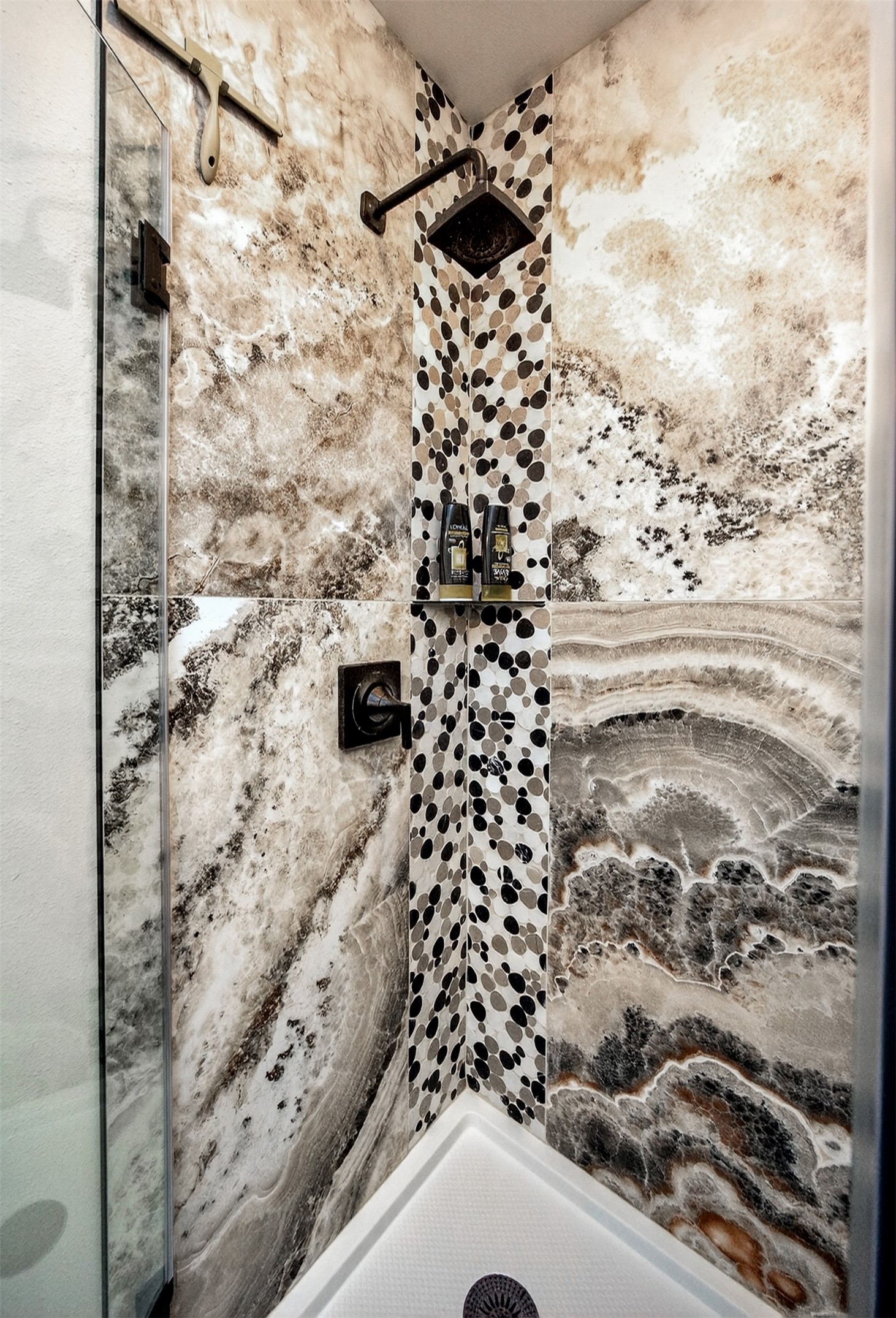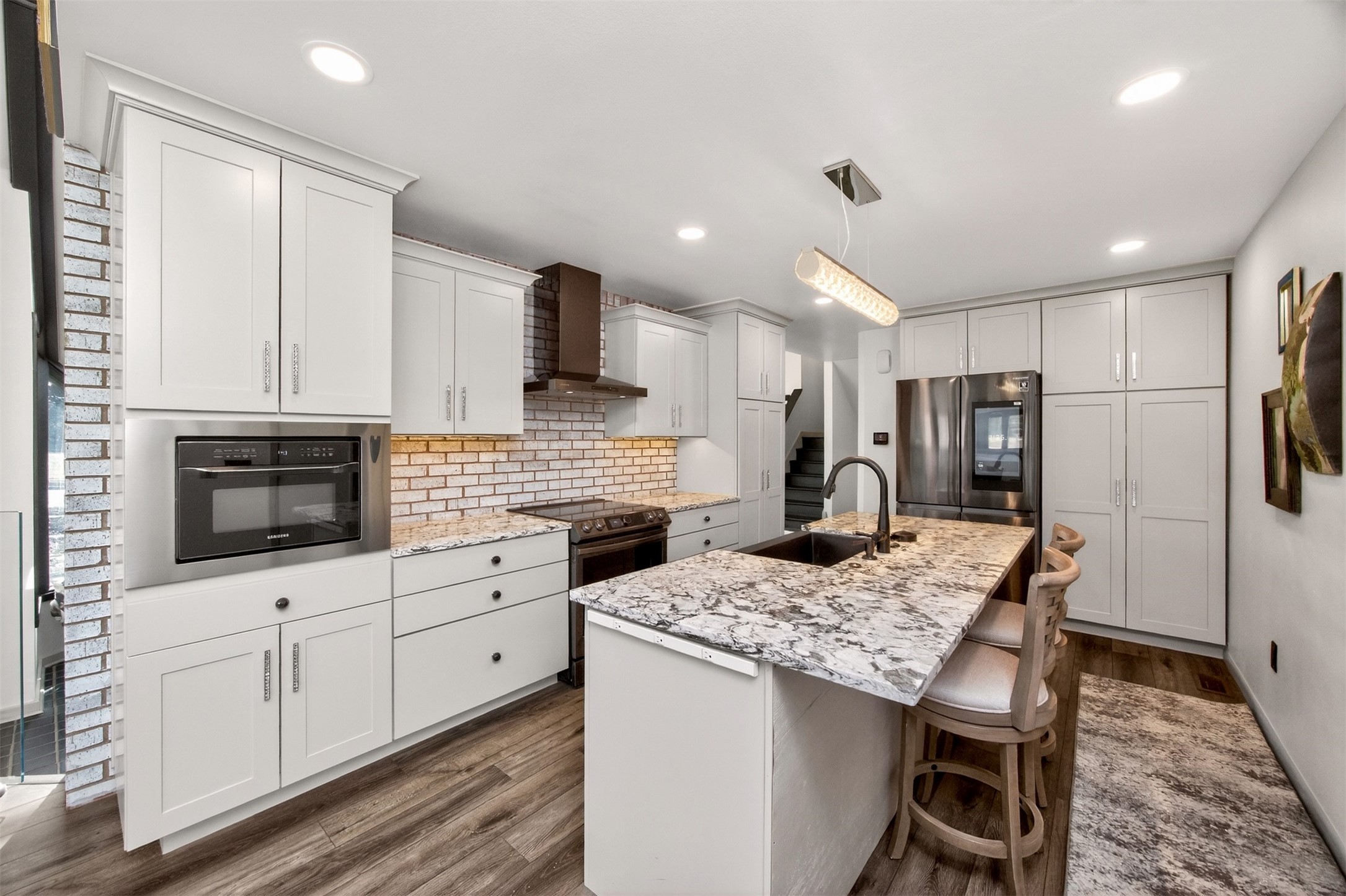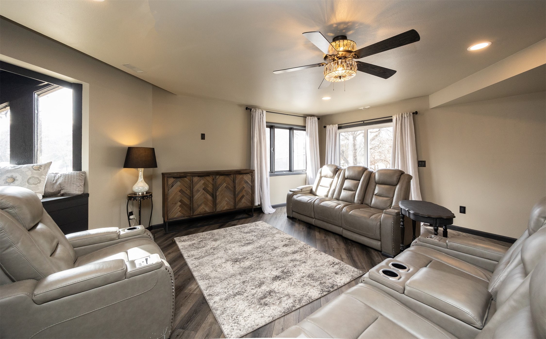 Architecturally distinctive and fully remodeled, this West Des Moines multi-level residence offers striking design just minutes from Jordan Creek and quick access to I-235/I-80. Designed to be unique, the dramatic sunken living room showcases a whitewashed brick wall and illuminated glass railings - an eye-catching focal point rarely found at this price point. The kitchen has been thoughtfully opened to create a seamless flow, featuring new cabinetry, Cambria countertops, updated appliances, and direct garage access. A dedicated dining area connects the main living spaces for easy entertaining. Upstairs, the primary suite includes a walk-in closet and beautifully finished 3/4 bath with dual vanity and statement tile shower. Bedrooms two and three function as a secondary suite with their own 3/4 bath, complete with tile shower, built-in storage, and walk-in closet - ideal for guests, multigenerational living, or a private office retreat. The lower level adds a second living area, storage room, and a hidden playroom tucked under the stairs. Additional highlights: 2-car garage with storage, new garage door, extra side parking pad, maintenance-free decks, LVP flooring, textured ceilings, updated lighting/fixtures, and roof and gutters (2023). Prime Ashworth Road location close to shopping, dining, and commuter routes. Wonderful south exposure for lots of natural light!