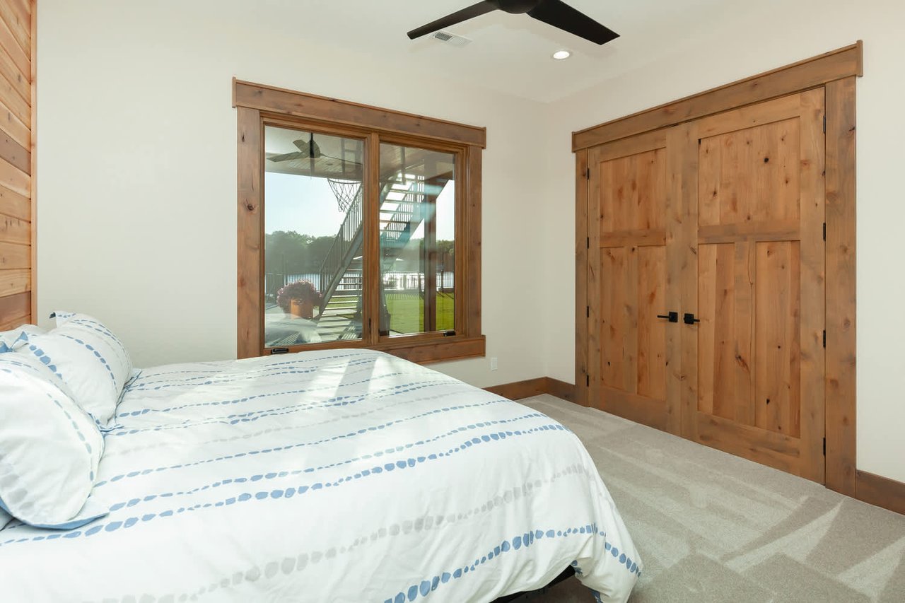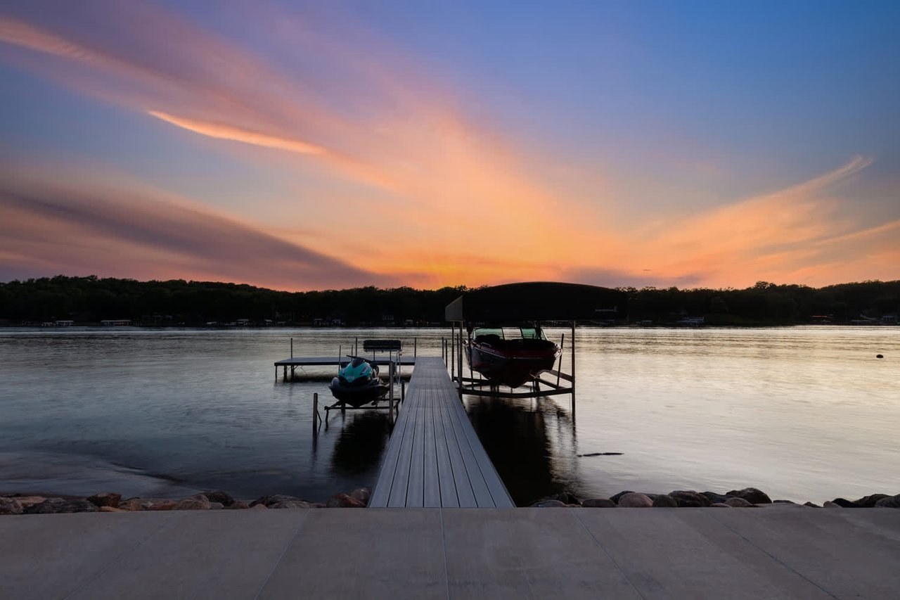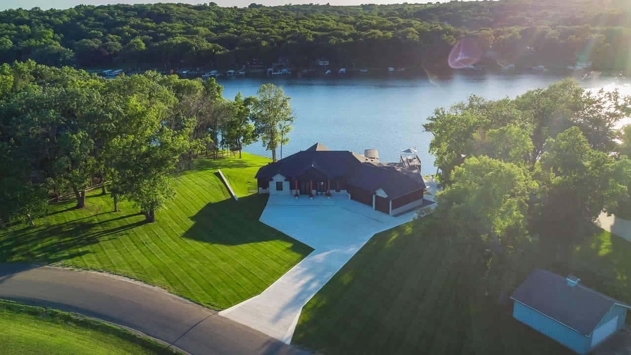 Welcome to your dream lakefront oasis on the serene shores of Lake Panorama! Ultimate luxury + comfort w/ nearly 5,000 sf of finished space feat 6BR + 4.5 baths. Just 15 mins from Guthrie Co Airport, enjoy convenience with a tranquil, resort-like setting. The property boasts an impressive 185' of shoreline, providing unobstructed views of the water. Perfect for entertaining, the home features a 20x40 heated salt-water pool + massive 2,100 sf concrete patio along the lakeshore. The coveted boat house offers ample storage for all your pool + lake toys. Inside, the home exudes cozy lake house vibes with luxurious touches - knotty alder 8' doors/trim and low-maintenance tile flooring. Spacious kitchen features high-end appliances, Miele gas stove w/ pot filler, a walk-in pantry + wet bar w/ bev fridge. Enjoy the covered deck complete w/ motorized, retractable screens, infrared heaters + gas fp. Main floor hosts two suites, each with stunning lake views and private balconies, a main floor office, and laundry. LL is designed for entertainment, feat a wet bar, spacious living area w/ sliders to the outdoor patio/pool, + 4 add'l BR/2 BA. The grilling deck w/ infrared heaters + built-in gas grill is perfect for hosting. The property is equipped with a Sonos sound system, security, Kinetico reverse osmosis system, and a 95-gallon commercial water heater. Located across from the golf course, near Boulder Beach, and just 45 min from the metro area.