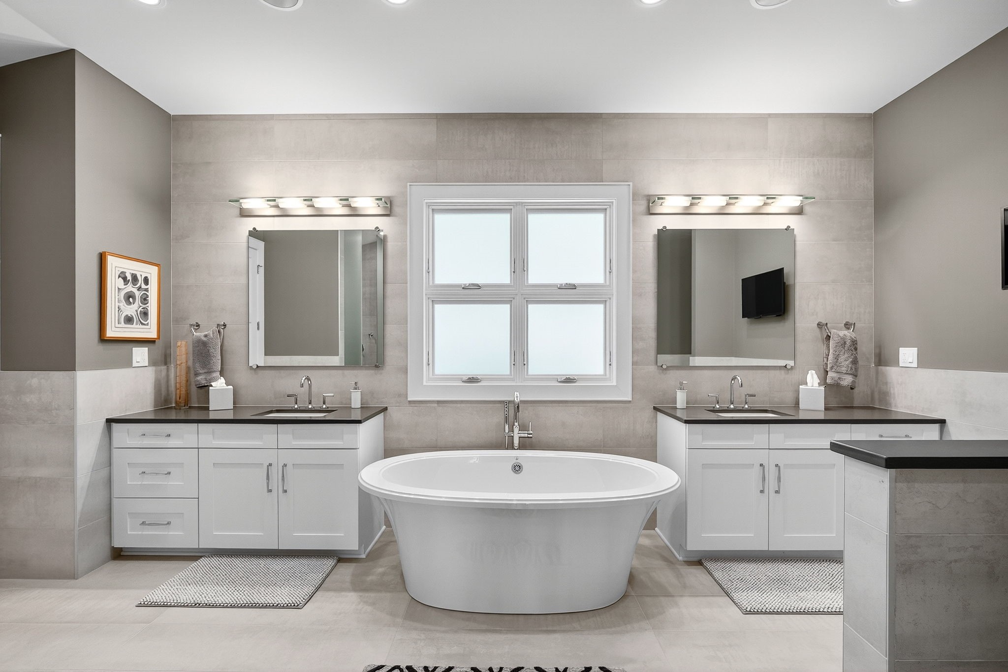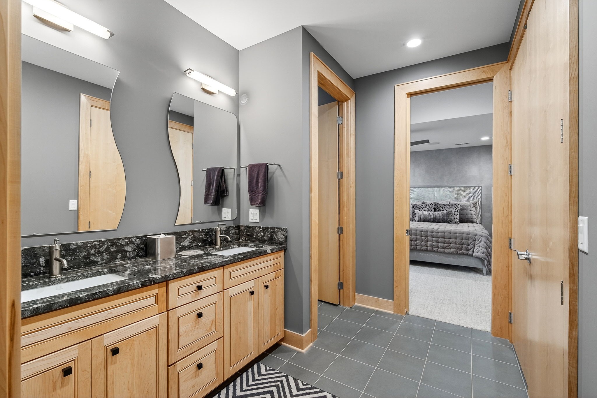 The owner's suite is a private retreat with stunning views, spa-like bath with soaking tub, expansive walk-in shower, dual vanities, in-suite laundry, and a spacious walk-in closet.