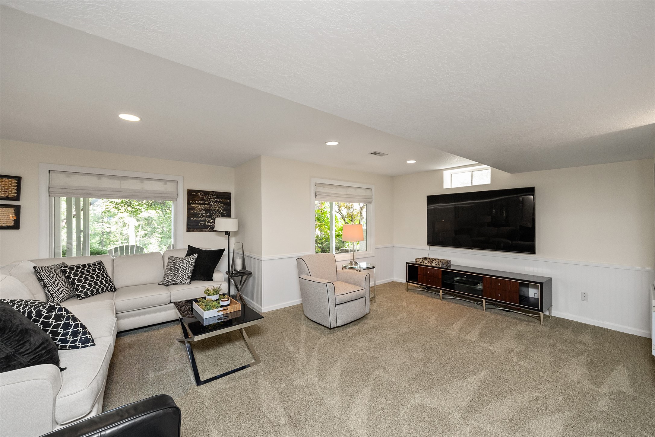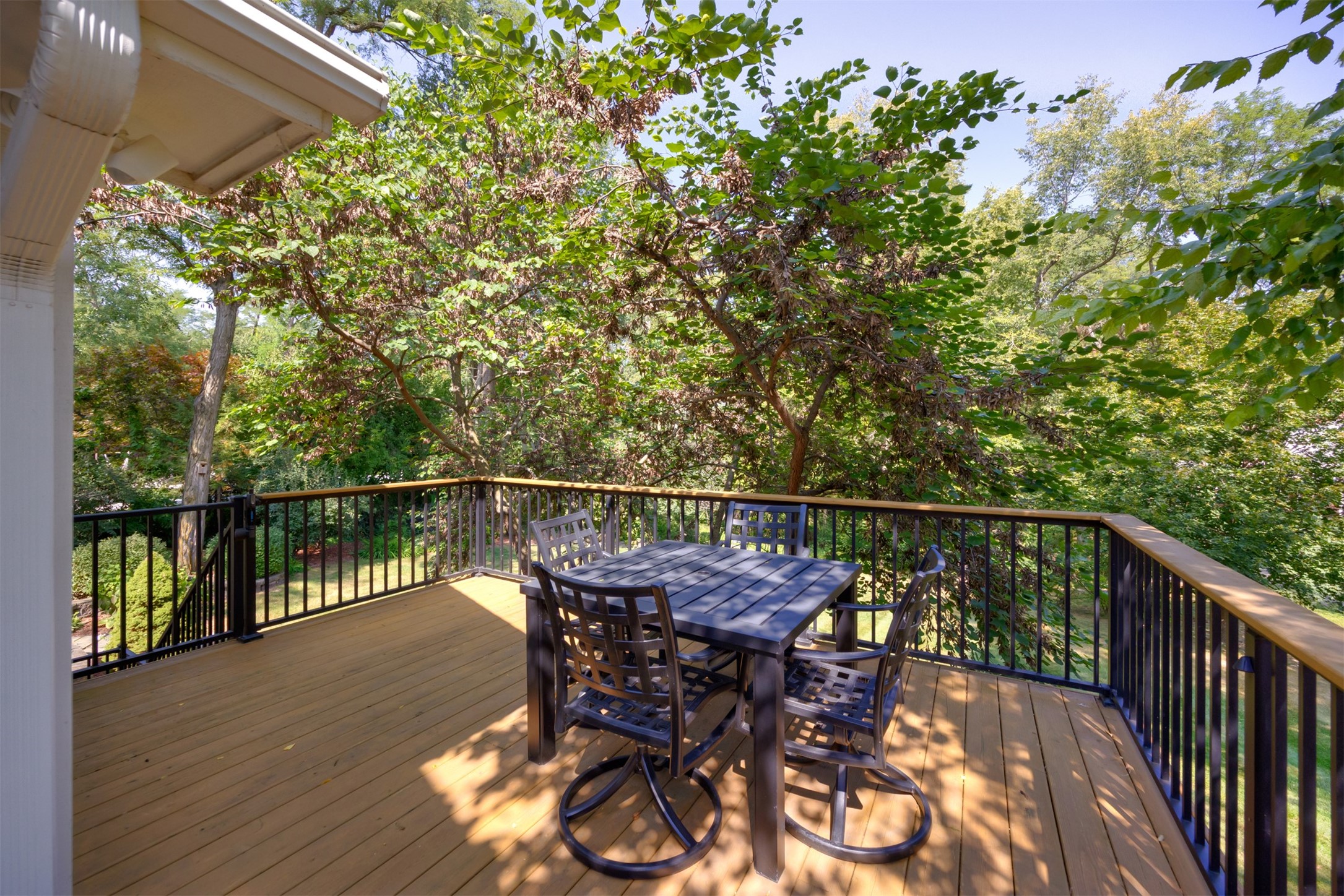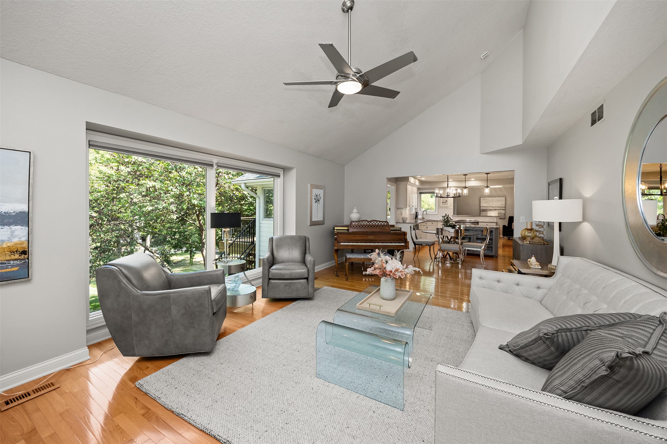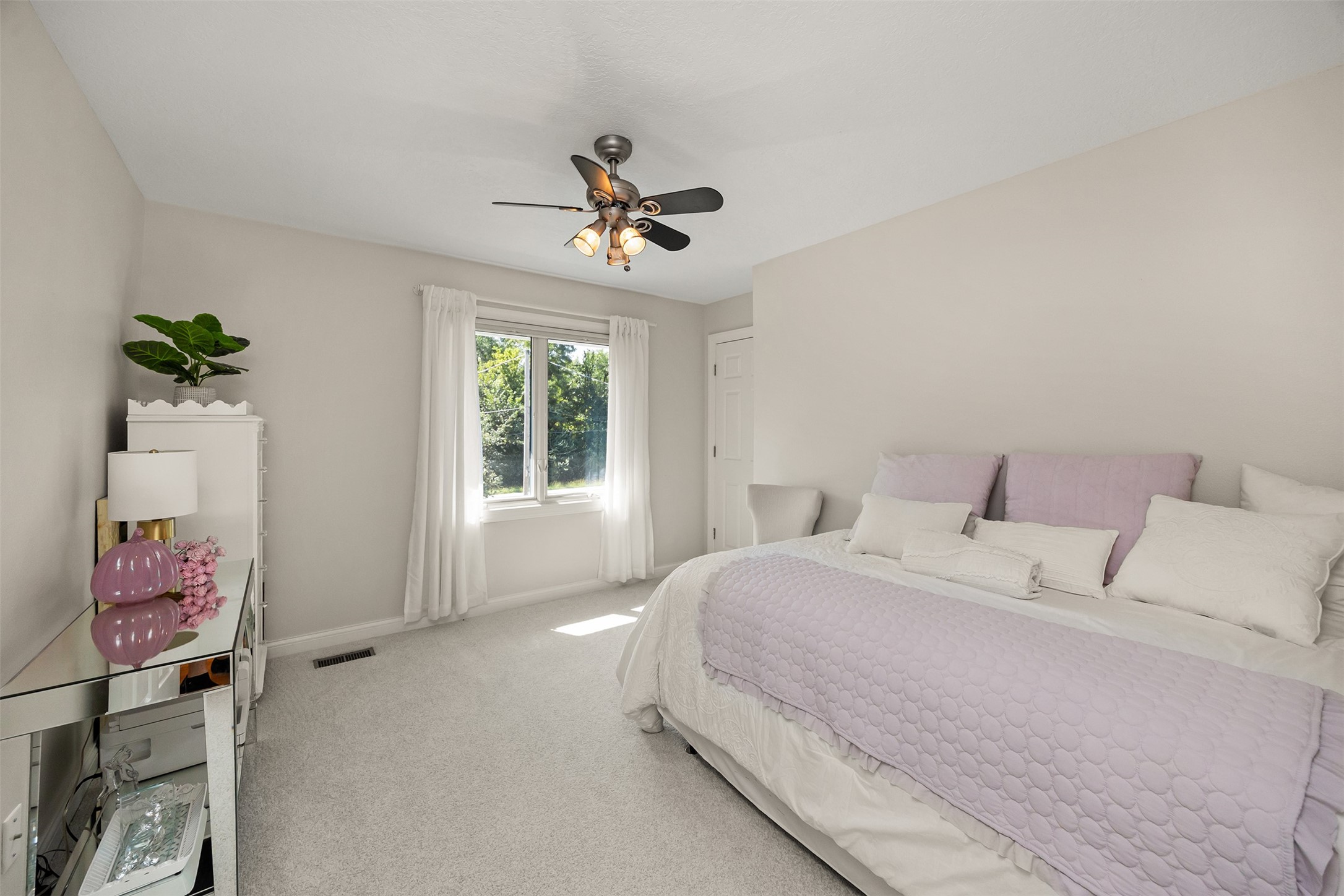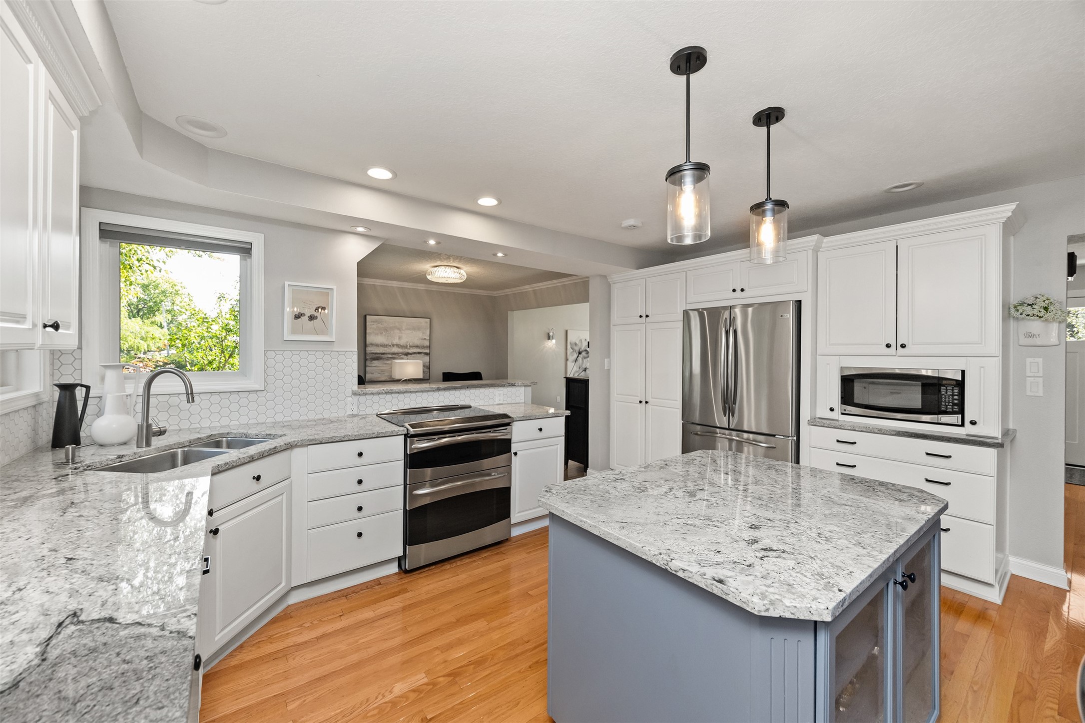 A stunning, fully renovated two-story home tucked away on nearly half an acre in Johnston! Originally built in 1991, every detail inside & out has been updated to create a move-in ready retreat surrounded by mature trees, lush landscaping, uplighting, and a backyard designed for entertaining with a firepit, patio + hot tub. Inside, hardwood floors flow throughout the main level where you'll find a stylish half bath, dining/flex room, and a seller-favorite, the "bourbon room." The kitchen features granite countertops, updated cabinetry, tile backsplash, and an adjoining sunroom and eat-in area. The vaulted living room impresses w/ floor-to-ceiling picture windows, built-ins, and cozy gas fireplace. Upstairs, the expansive primary suite includes hardwood floors, a sitting area, built-ins for added storage, a large walk-in closet, and a spa-inspired bath w/ soaking tub + tiled shower. Three add'l bedrooms, full bath + laundry complete the upper level. The finished walkout lower level adds even more living space with a third fireplace, custom built-ins, a cedar closet (perfect for storage or future sauna), and a daylight area that could serve as a 5th bedroom. Practical updates incl newer HVAC, roof, and windows. The oversized garage w/ epoxy floors offers ample storage and room for a locker system. Set in a private location near trails, recreation, and Saylorville Lake, this property blends thoughtful design, modern updates, and a serene setting--an ideal place to call home.