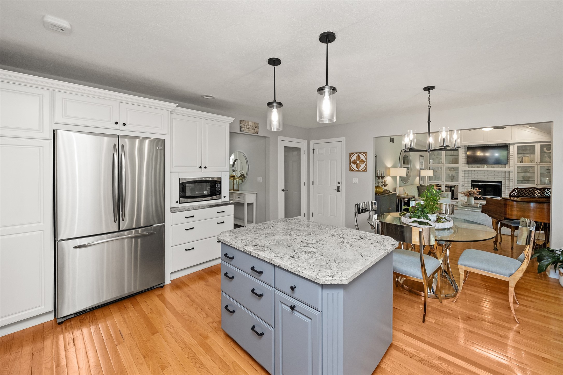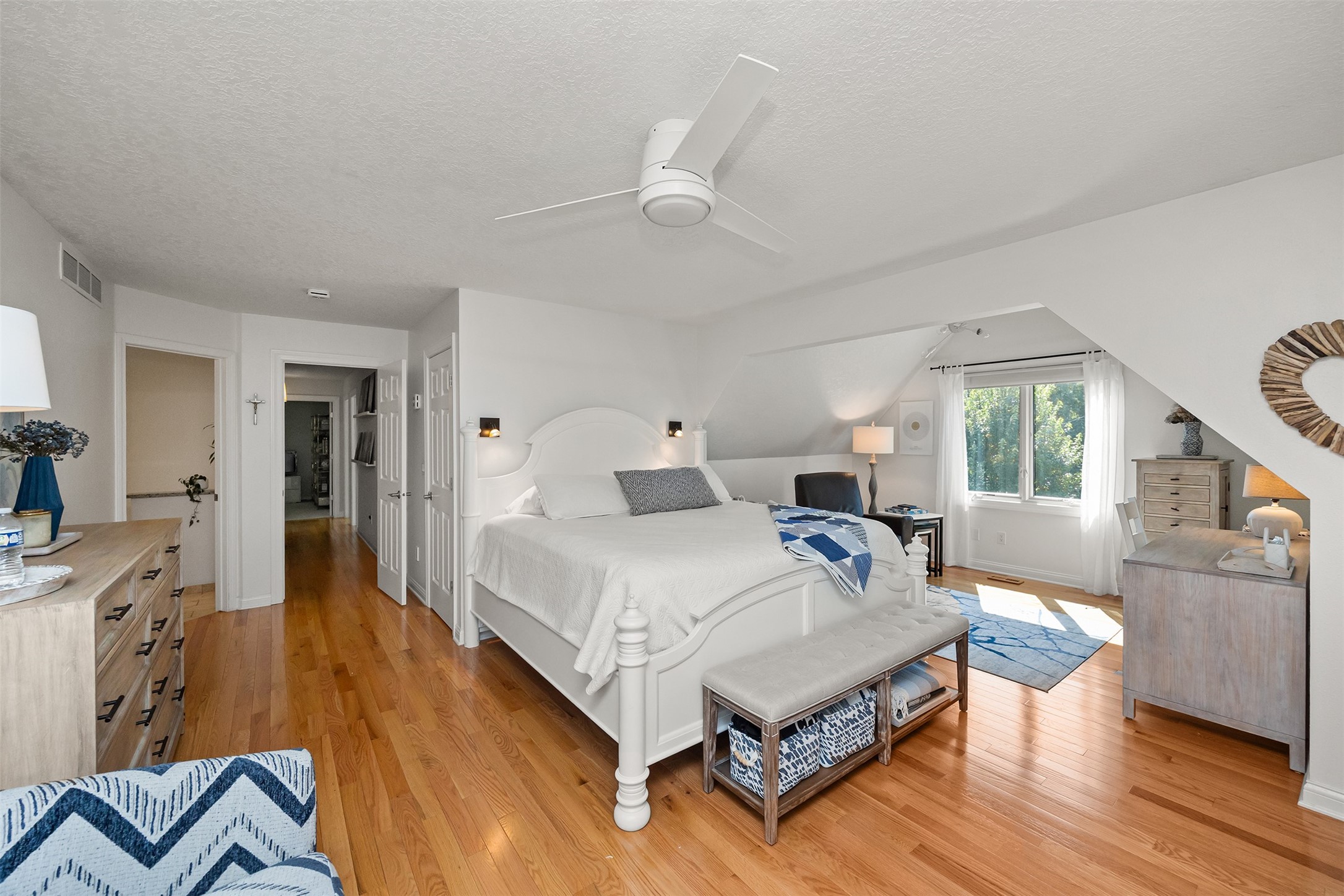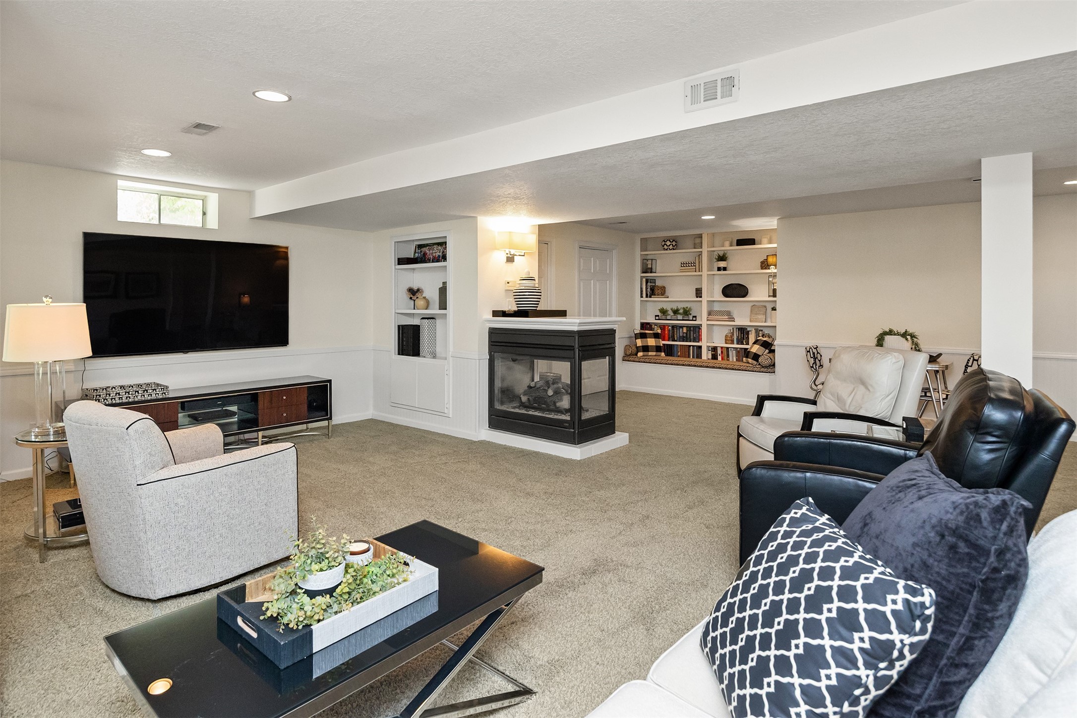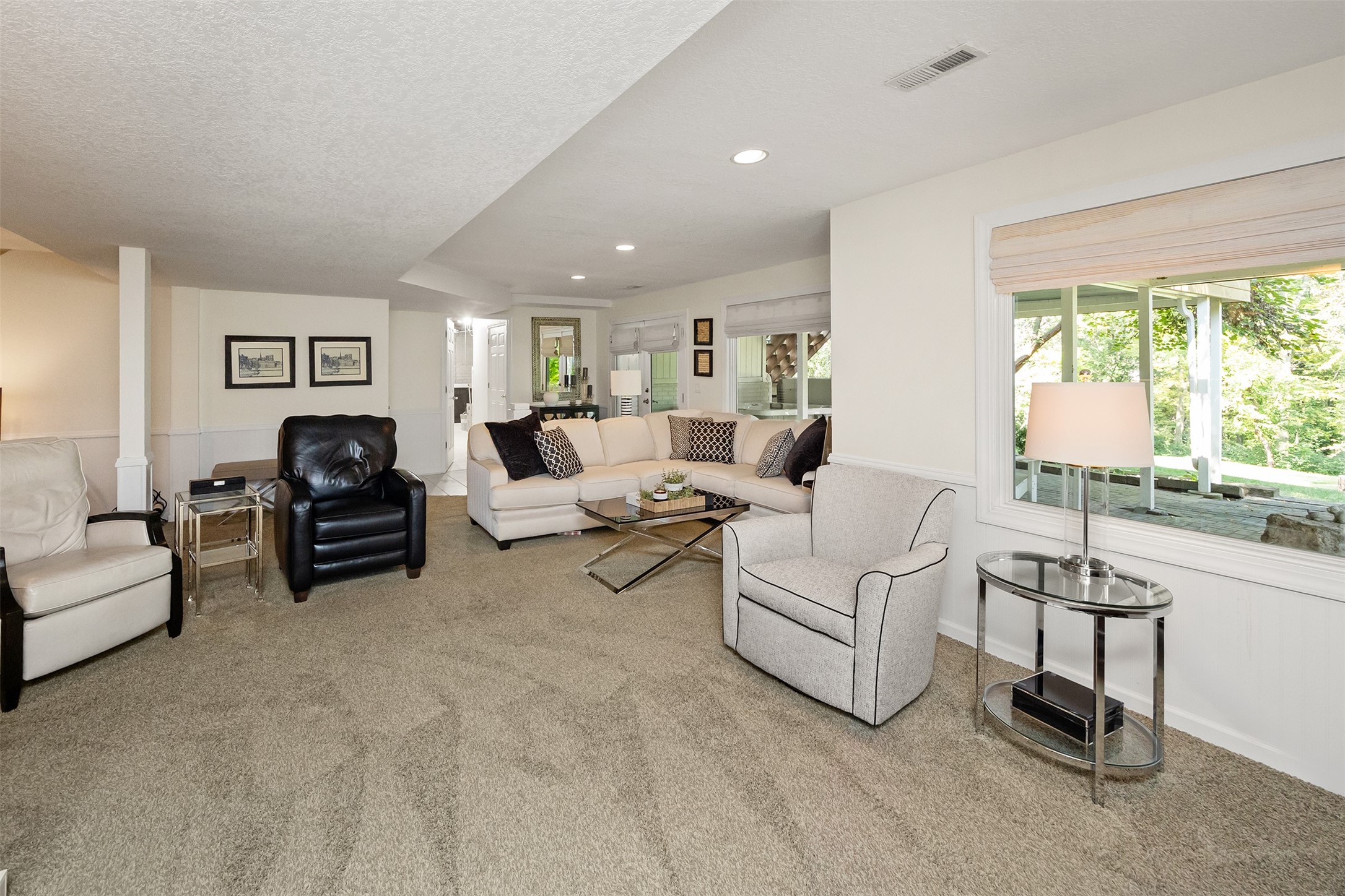 A stunning, fully renovated two-story home tucked away on nearly half an acre in Johnston! Originally built in 1991, every detail inside & out has been updated to create a move-in ready retreat surrounded by mature trees, lush landscaping, uplighting, and a backyard designed for entertaining with a firepit, patio + hot tub. Inside, hardwood floors flow throughout the main level where you'll find a stylish half bath, dining/flex room, and a seller-favorite, the "bourbon room." The kitchen features granite countertops, updated cabinetry, tile backsplash, and an adjoining sunroom and eat-in area. The vaulted living room impresses w/ floor-to-ceiling picture windows, built-ins, and cozy gas fireplace. Upstairs, the expansive primary suite includes hardwood floors, a sitting area, built-ins for added storage, a large walk-in closet, and a spa-inspired bath w/ soaking tub + tiled shower. Three add'l bedrooms, full bath + laundry complete the upper level. The finished walkout lower level adds even more living space with a third fireplace, custom built-ins, a cedar closet (perfect for storage or future sauna), and a daylight area that could serve as a 5th bedroom. Practical updates incl newer HVAC, roof, and windows. The oversized garage w/ epoxy floors offers ample storage and room for a locker system. Set in a private location near trails, recreation, and Saylorville Lake, this property blends thoughtful design, modern updates, and a serene setting--an ideal place to call home.