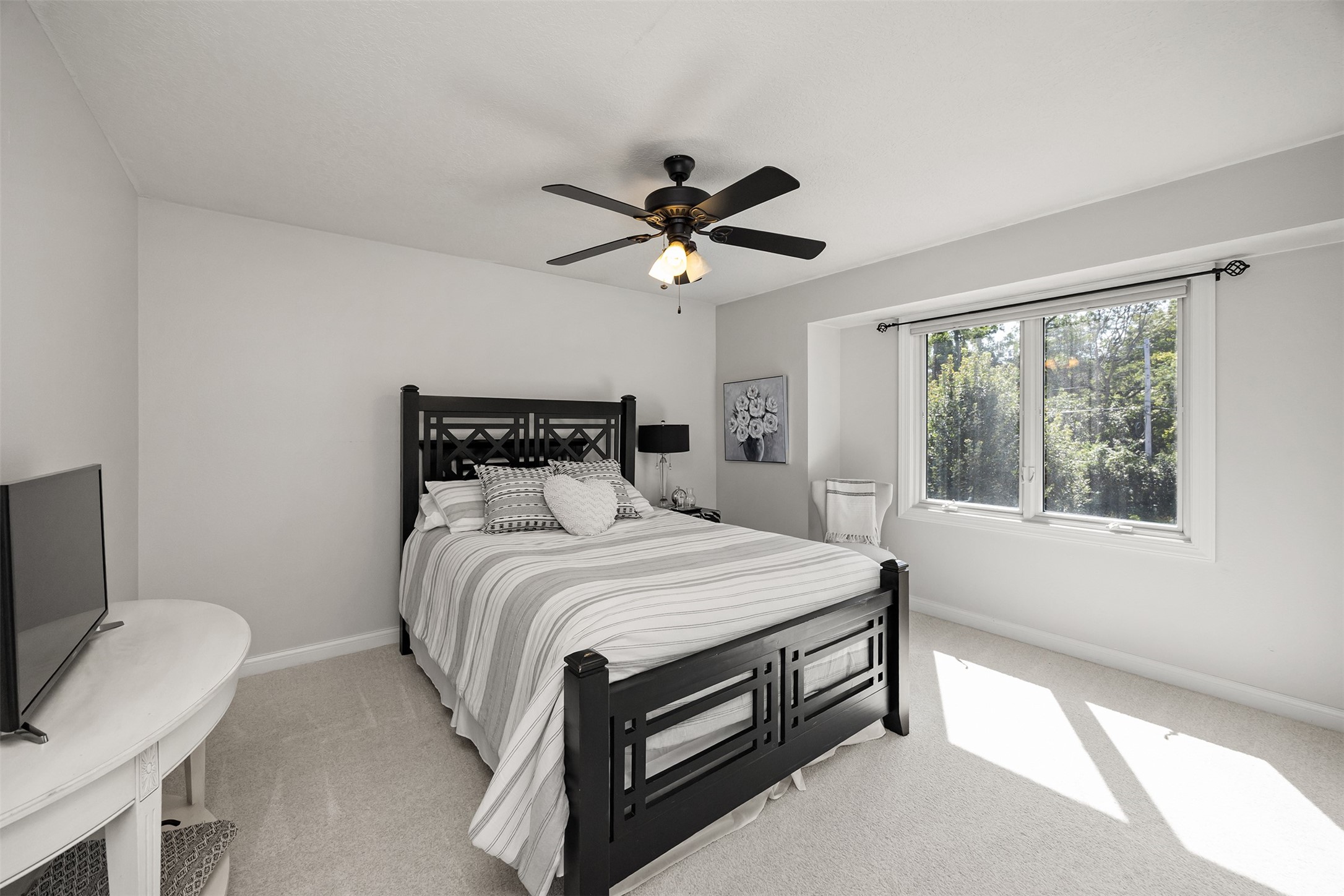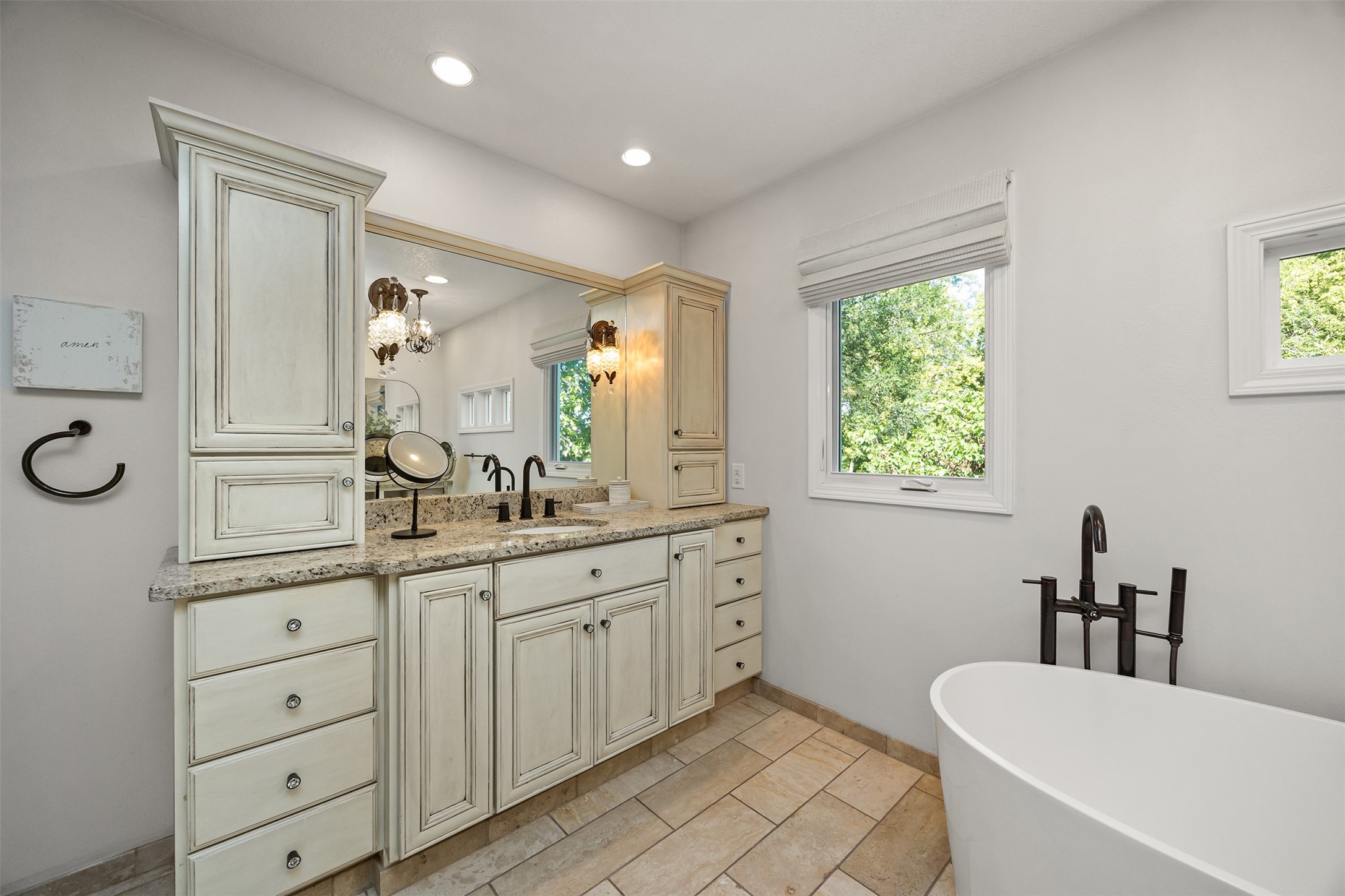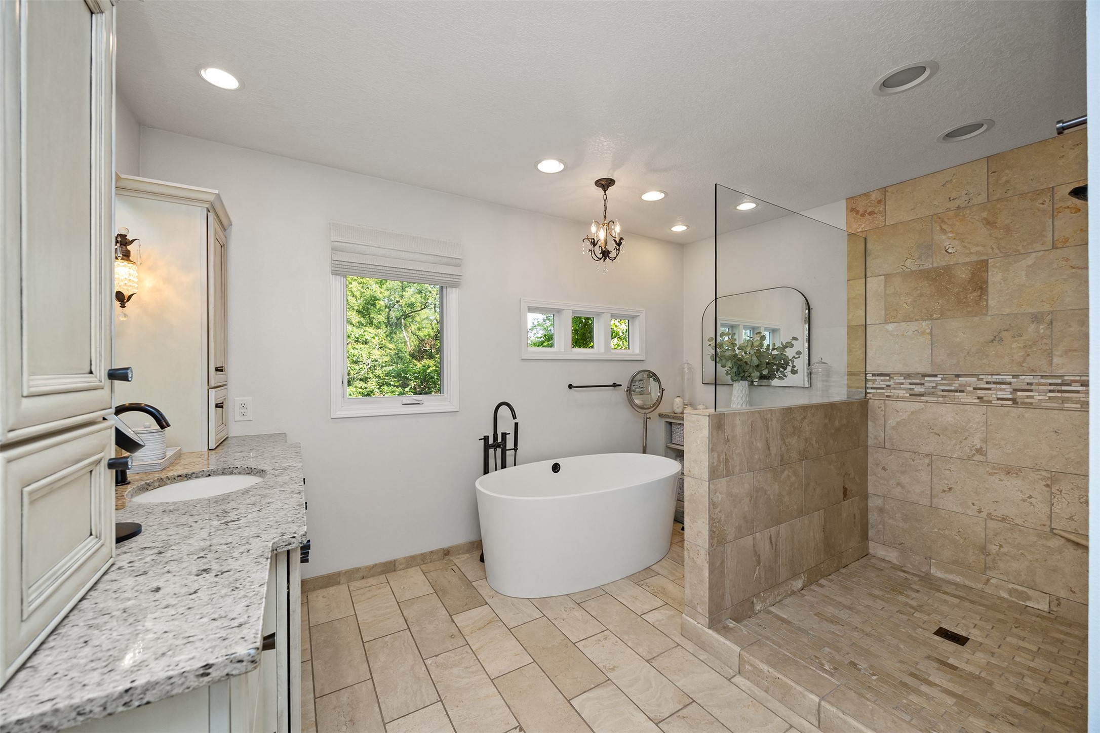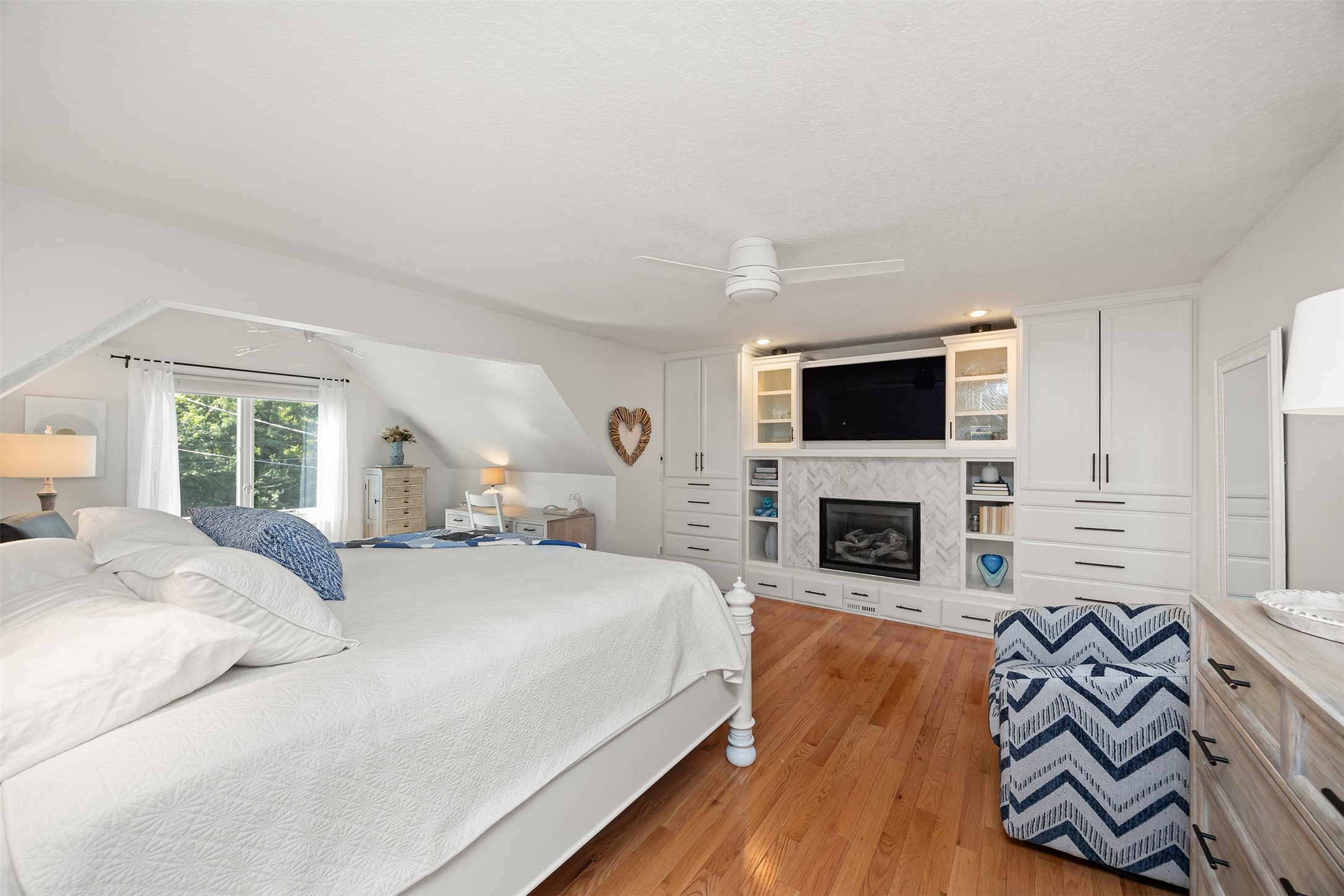 A stunning, fully renovated two-story home tucked away on nearly half an acre in Johnston! Originally built in 1991, every detail inside & out has been updated to create a move-in ready retreat surrounded by mature trees, lush landscaping, uplighting, and a backyard designed for entertaining with a firepit, patio + hot tub. Inside, hardwood floors flow throughout the main level where you'll find a stylish half bath, dining/flex room, and a seller-favorite, the "bourbon room." The kitchen features granite countertops, updated cabinetry, tile backsplash, and an adjoining sunroom and eat-in area. The vaulted living room impresses w/ floor-to-ceiling picture windows, built-ins, and cozy gas fireplace. Upstairs, the expansive primary suite includes hardwood floors, a sitting area, built-ins for added storage, a large walk-in closet, and a spa-inspired bath w/ soaking tub + tiled shower. Three add'l bedrooms, full bath + laundry complete the upper level. The finished walkout lower level adds even more living space with a third fireplace, custom built-ins, a cedar closet (perfect for storage or future sauna), and a daylight area that could serve as a 5th bedroom. Practical updates incl newer HVAC, roof, and windows. The oversized garage w/ epoxy floors offers ample storage and room for a locker system. Set in a private location near trails, recreation, and Saylorville Lake, this property blends thoughtful design, modern updates, and a serene setting--an ideal place to call home.