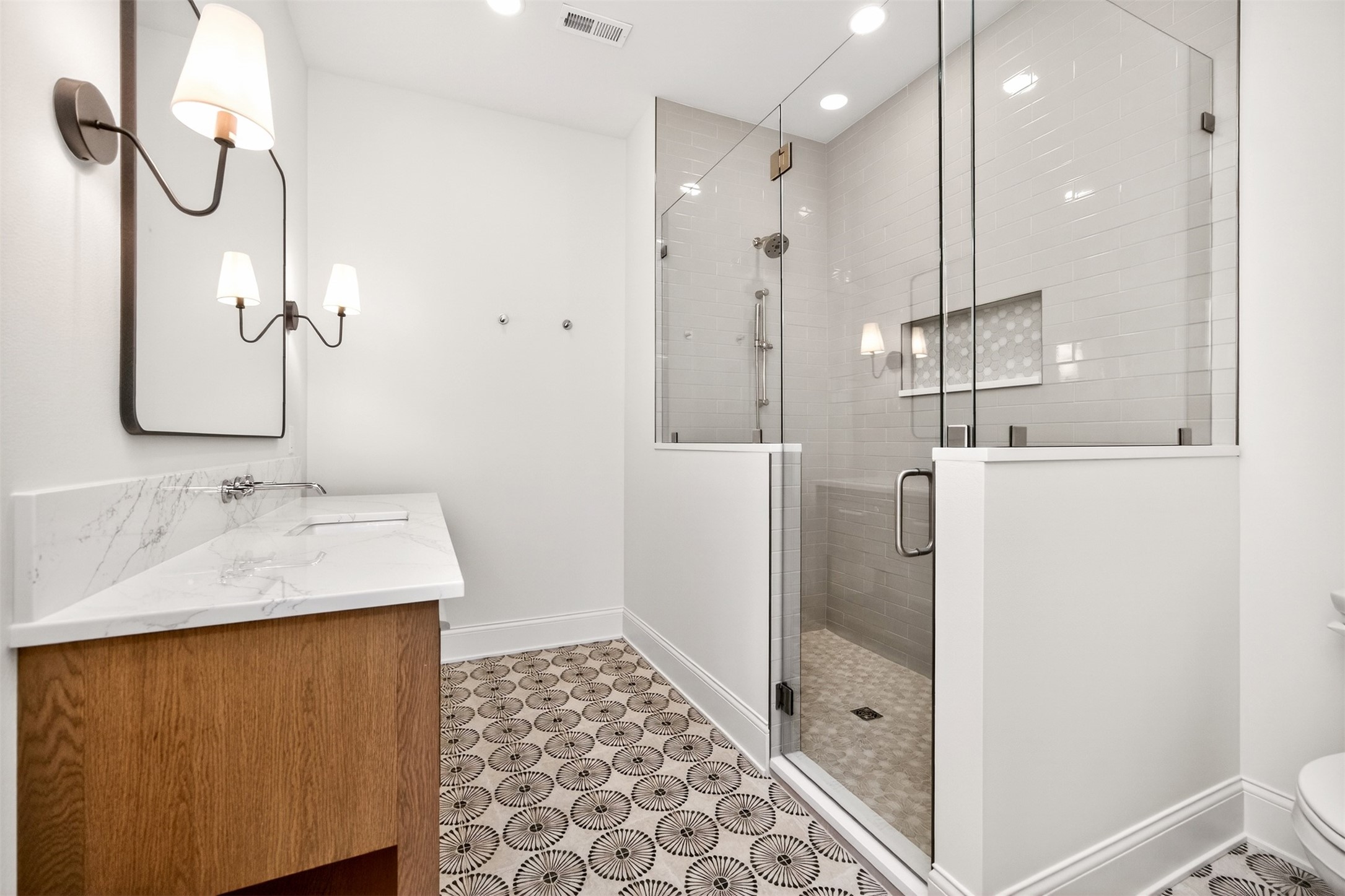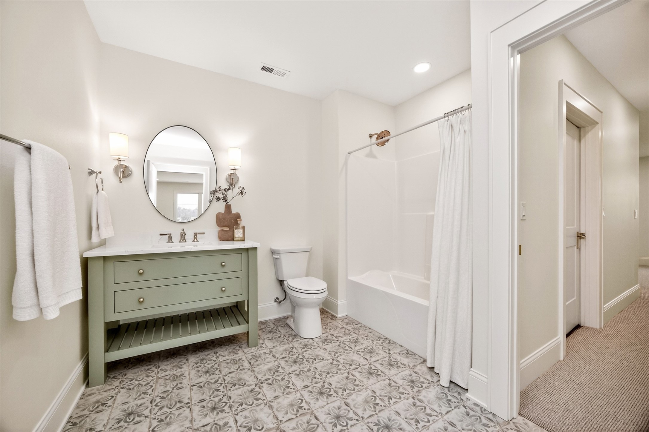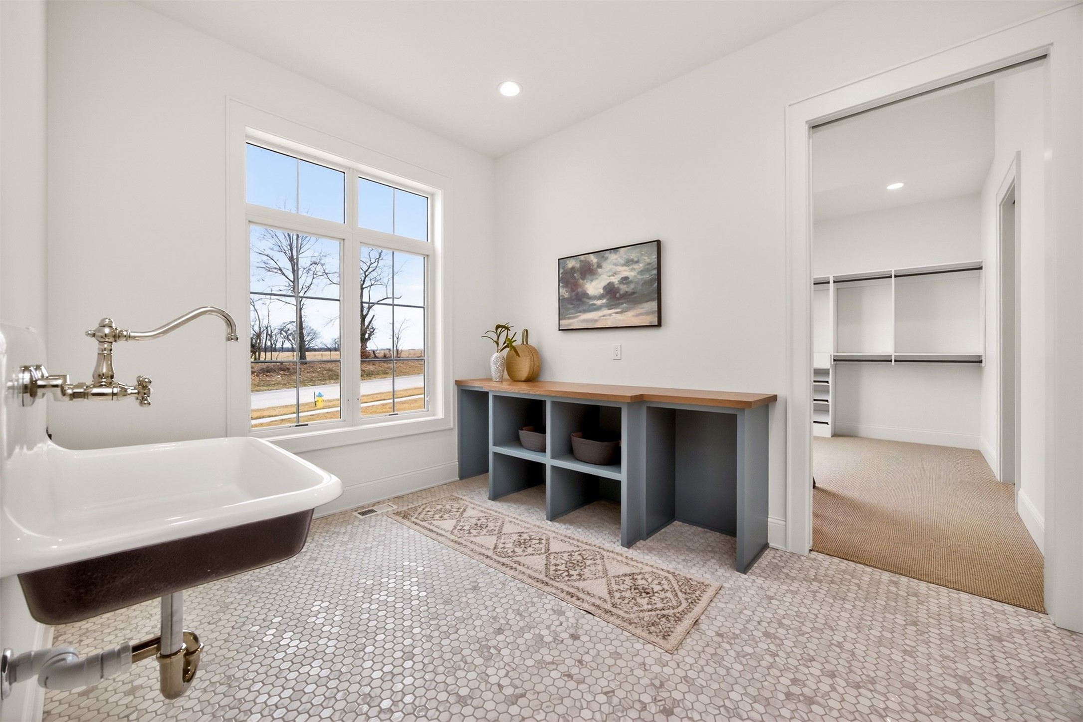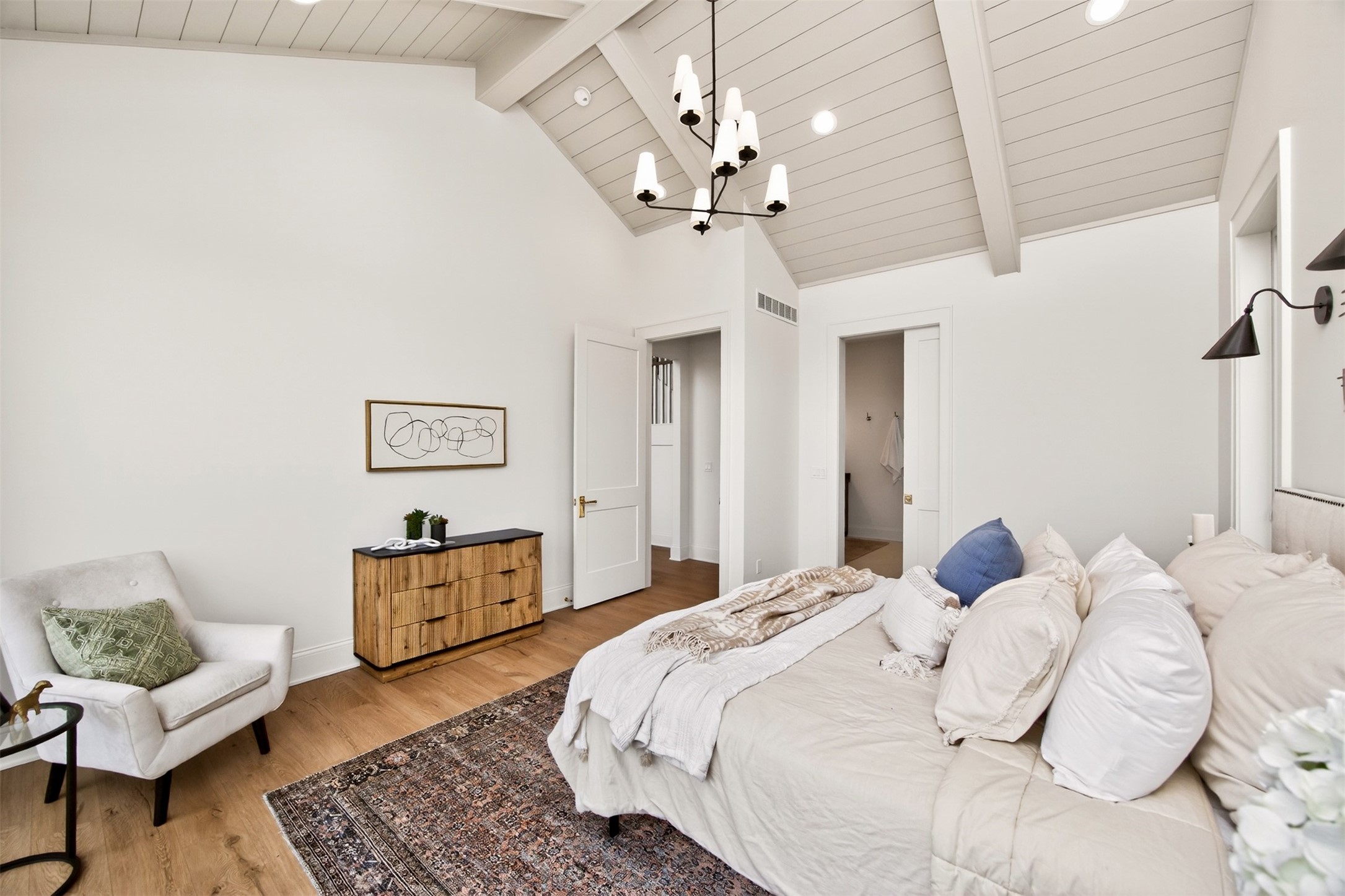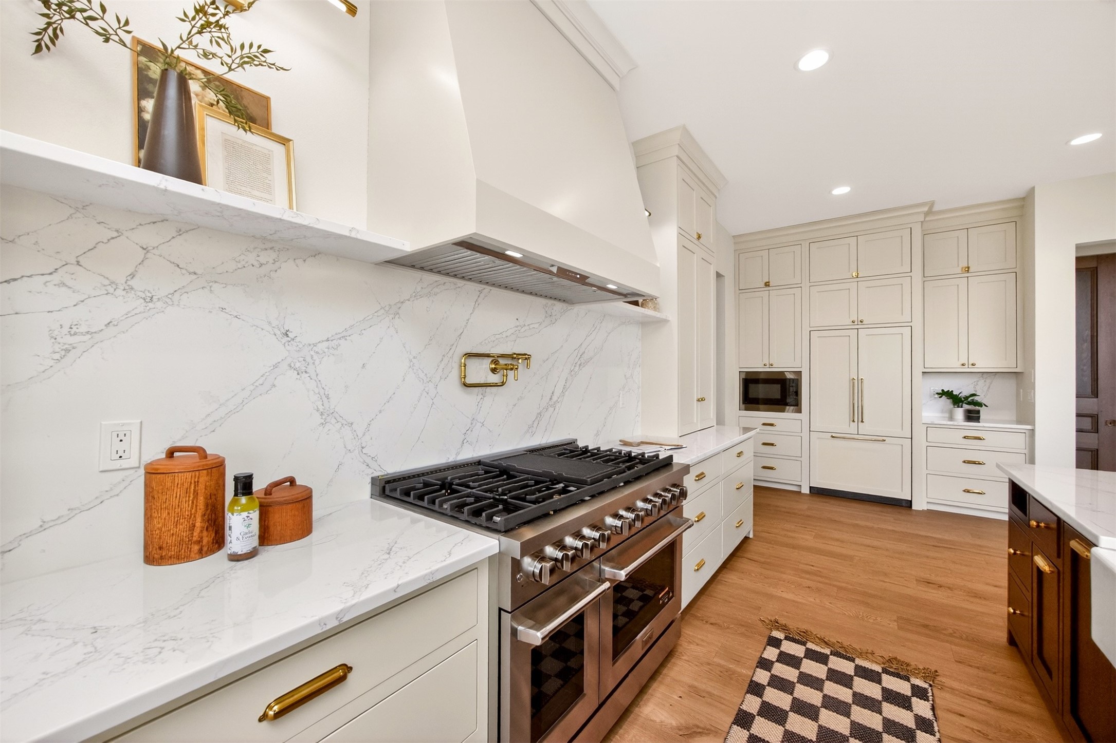 Wake to fairway views and end the day under wide Iowa skies. Perfectly placed on 1.27 acres along the 15th hole at Bos Landen, this coastal-inspired farmhouse offers privacy, architectural character, and the rare freedom of no HOA. A dramatic 27' vaulted great room with exposed trusses, cast stone fireplace, and walls of Pella Impervia windows frames rolling greens and pond views. Restored antique pocket doors add warmth and provenance. The kitchen is built for gathering - quartz surfaces, unlacquered brass fixtures, dual-fuel range with pot filler, premium appliances, and a walk-in pantry with butcher block prep space and grocery pass-through to the garage. Composite decking extends entertaining outdoors, and the yard is already plumbed for a future 20x30 pool. With 5 bedrooms and 4.5 baths (including a private mother-in-law suite) this home lives large. The vaulted primary retreat features integrated lighting controls, while the walkout lower level offers 10' ceilings, 8' sliders, wet bar, and 84" linear fireplace. Dual-zone geo HVAC, EV charging, and tuck-under garage complete this refined retreat. Just minutes from downtown Pella, Lake Red Rock, and the Pella Municipal Airport, this setting offers both everyday convenience and effortless travel access with a quick commute to DSM. Large, thoughtfully designed spaces provide flexibility for work, wellness, and multi-generational living, all while maintaining a refined, cohesive aesthetic throughout.