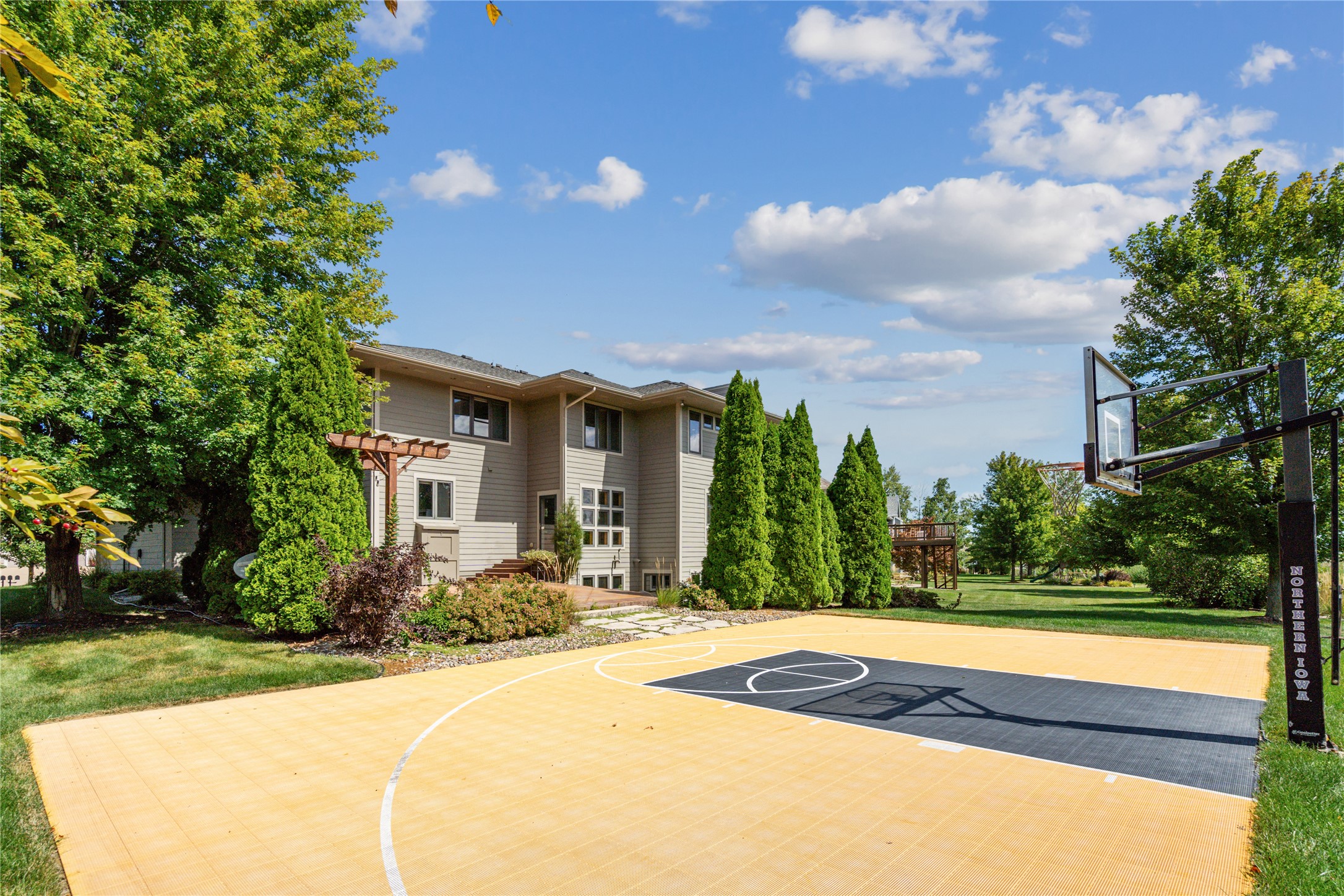 This house isn't just a home, it's a lifestyle! Just 2 minutes from Johnston High School and Pointe Vista Park, this contemporary two-story is packed with features that make everyday life feel like an experience. Step inside to a breathtaking entryway with soaring ceilings and floor-to-ceiling windows, filling the home with natural light and an open, airy feel. The sprawling kitchen with TWO islands is perfect for hosting, cooking, and making memories, while the formal dining room adds a touch of elegance. A main-level office provides the ideal work-from-home setup. Head downstairs to the ultimate hangout space - a wet bar with walkout access, a movie room for epic movie nights, and a dedicated workout room. Step outside to an oversized patio with a hot tub, perfect for relaxing after shooting hoops on your half basketball court. Upstairs, the huge primary suite offers a peaceful retreat, while direct backyard access to the bike trail makes it easy to get outside and explore. This home truly has it all! Tons of space, thoughtful design, and entertainment-ready features. Come see it for yourself!