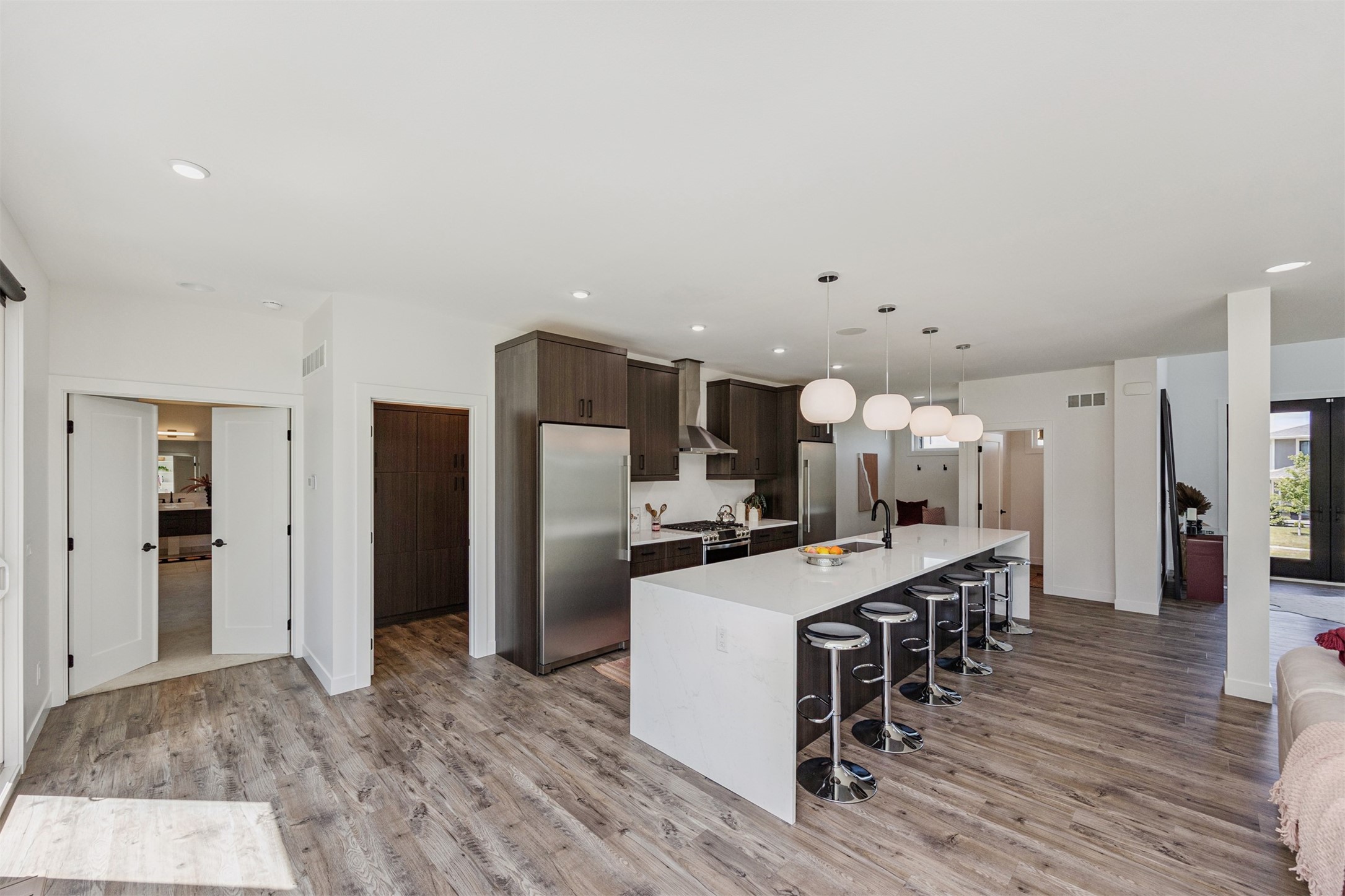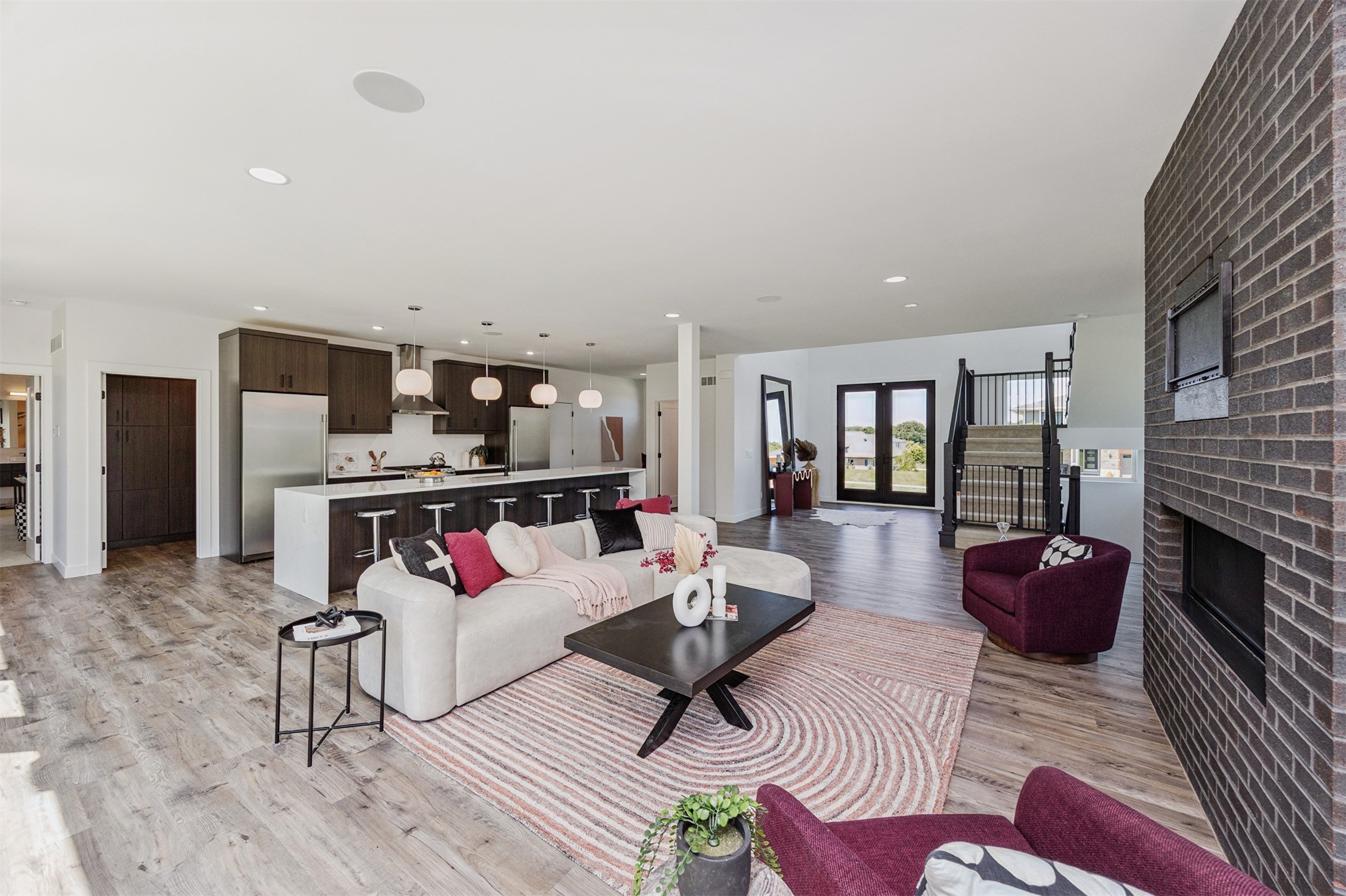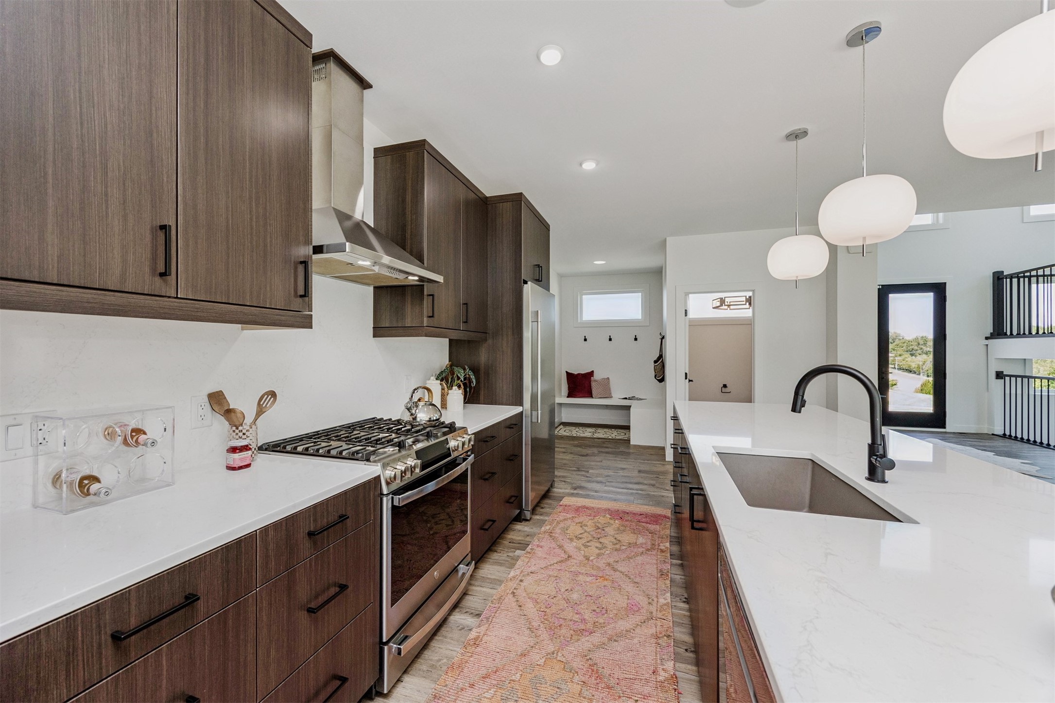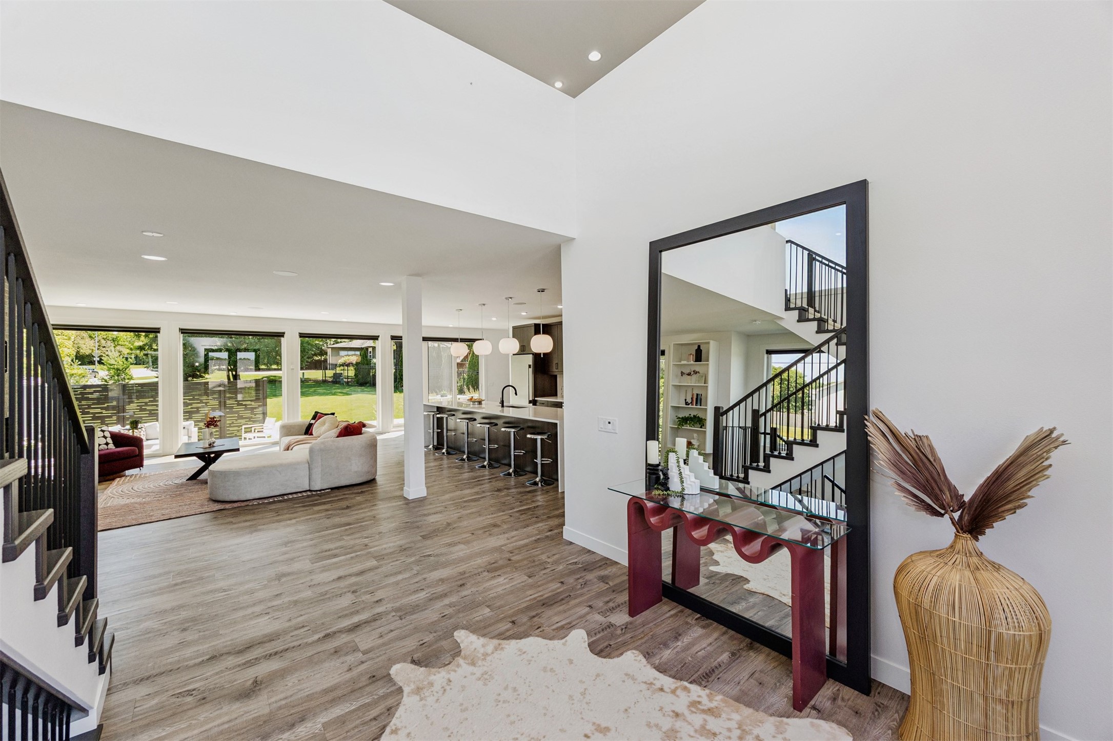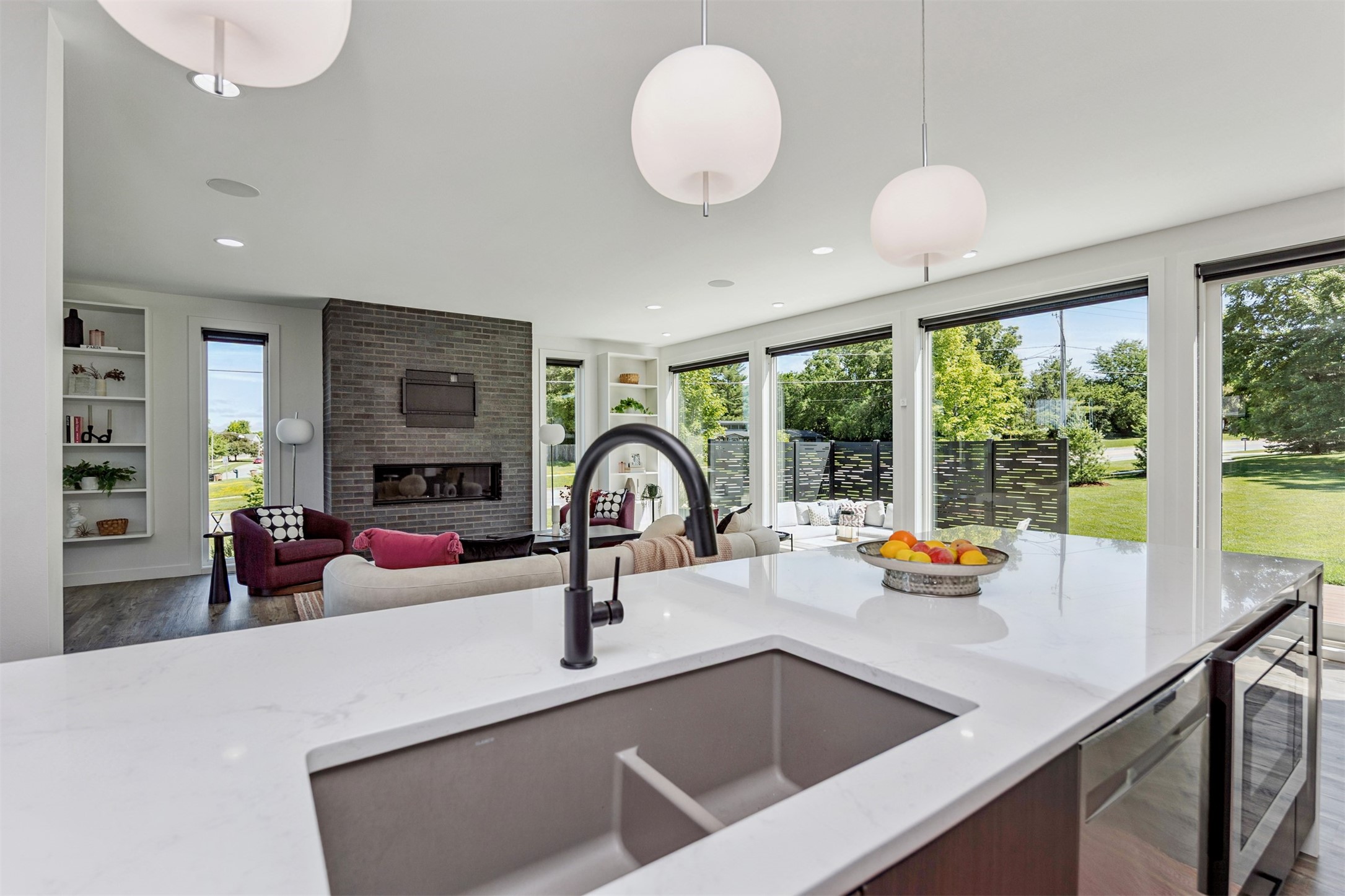 A new ornamental iron fence installed Oct 2025 to enjoy year round! You'll love the thoughtful design, quality craftsmanship, & modern style--this stunning 1.5-story home sits on nearly half an acre in one of the metro's most desirable locations! Step inside to soaring ceilings & oversized Enerlux windows that flood the space w/ natural light. The generous floor-plan is perfect for entertaining feat quartz countertops, a massive 14.5' island, walk-in pantry, ss appliances, an Infinity gas fireplace & Sonos speakers throughout.