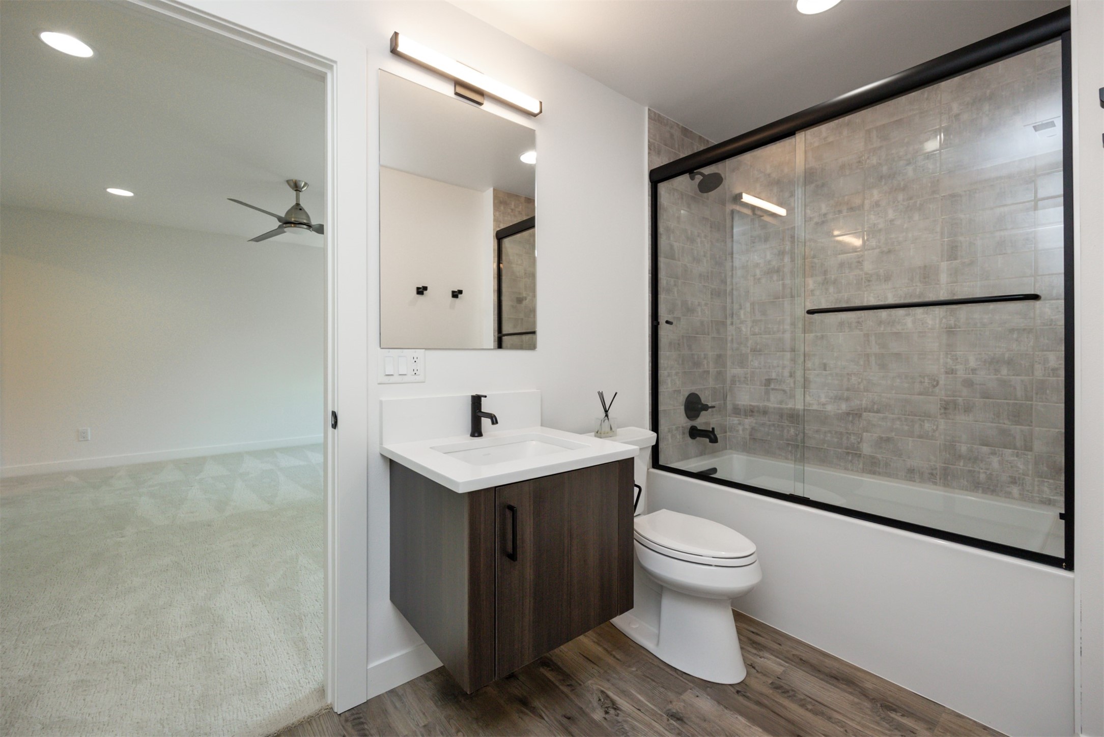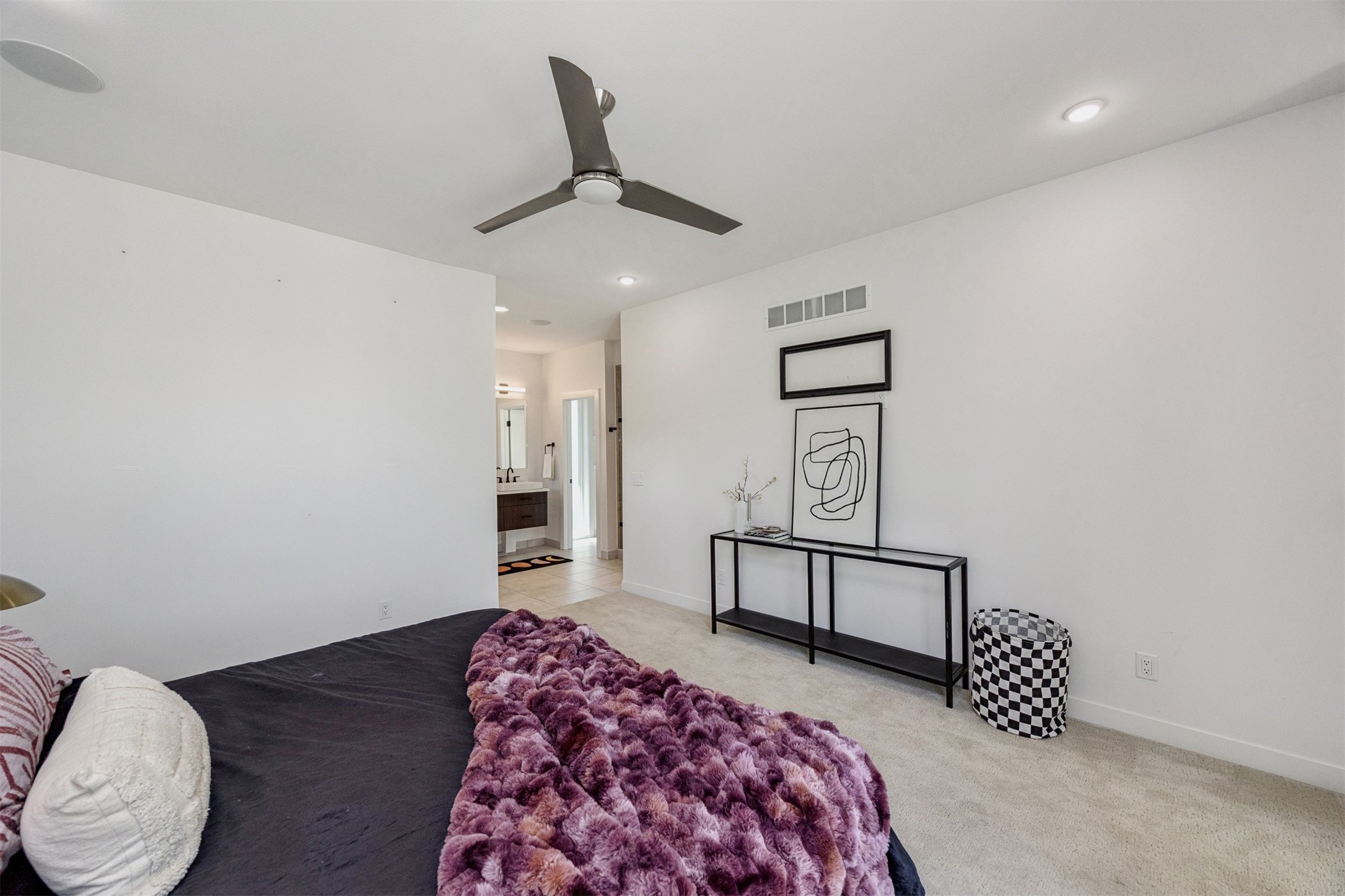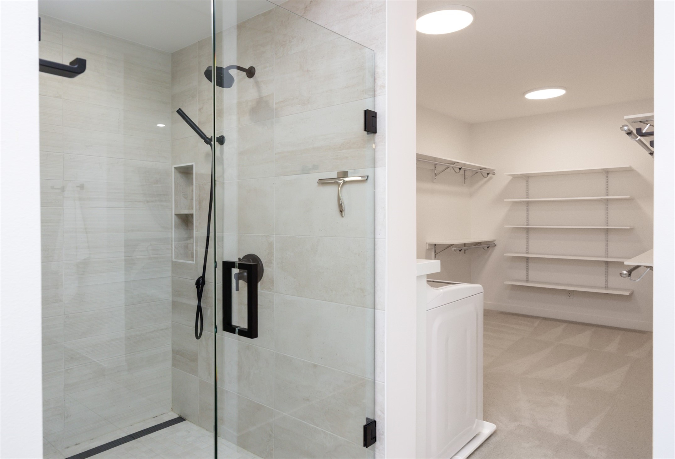 The main-level primary suite is a private retreat w/ a spa-like bath including a soaker tub, tiled shower, dual vanities, a walk-in closet w/ laundry & access to a large patio w/ a privacy screen! Upstairs offers three add'l bdrms w/ walk-in closets--two share a J&J bath w/ private vanities, & a third enjoys its own ensuite. You'll love the loft space perfect for a bonus living area & add'l laundry access for convenience.