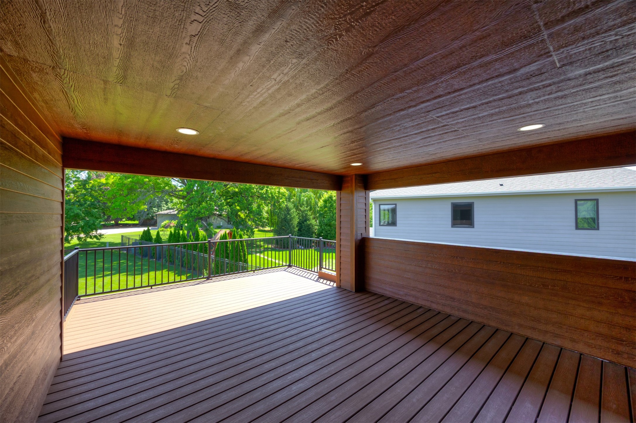 The 19x22 covered deck extends your living space with room to relax or entertain outdoors. The lower level provides nearly 2,700 sq ft ready for future finish w/ 10' ceilings & a built-in safe room w/ a stairway to the oversized 3 car garage plumbed for heat.